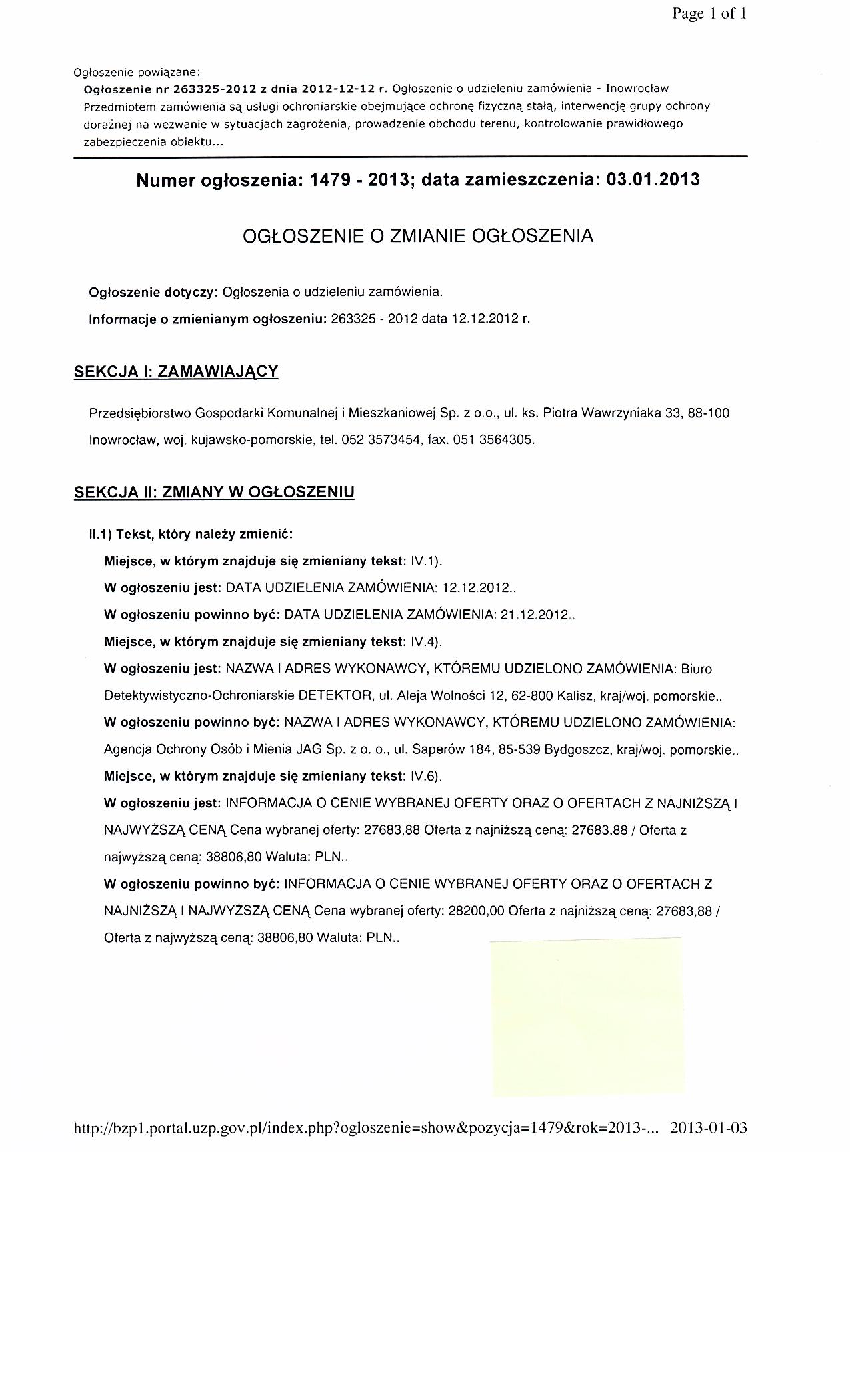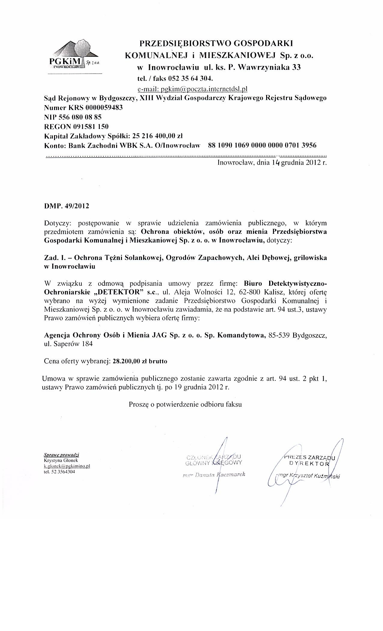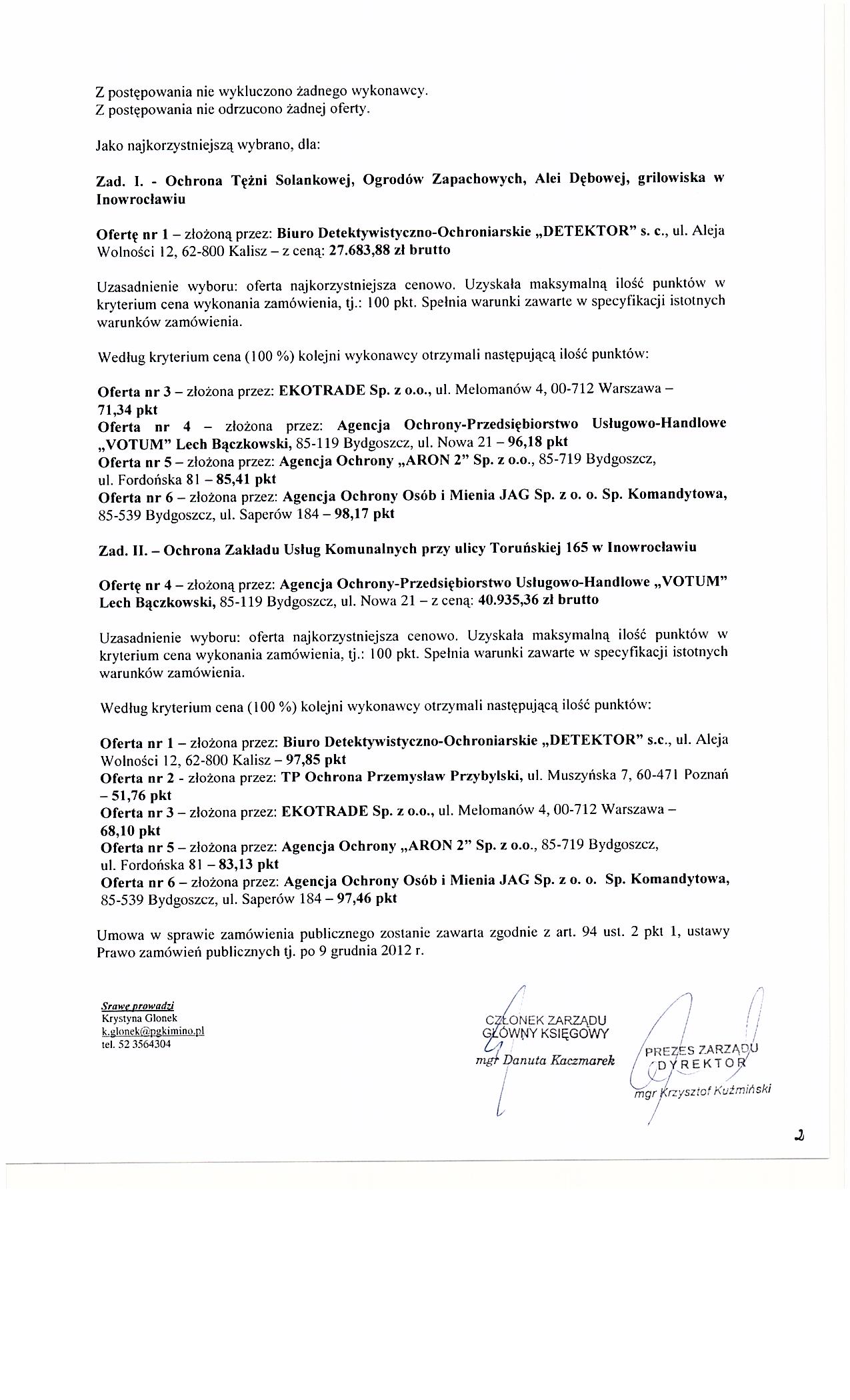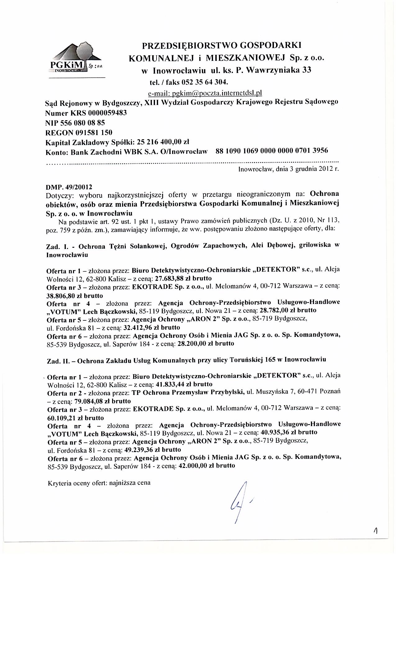 Ochrona obiekt贸w, os贸b oraz mienia Przedsi臋biorstwa Gospodarki Komunalnej i Mieszkaniowej Sp. z o.o. w Inowroc艂awiu