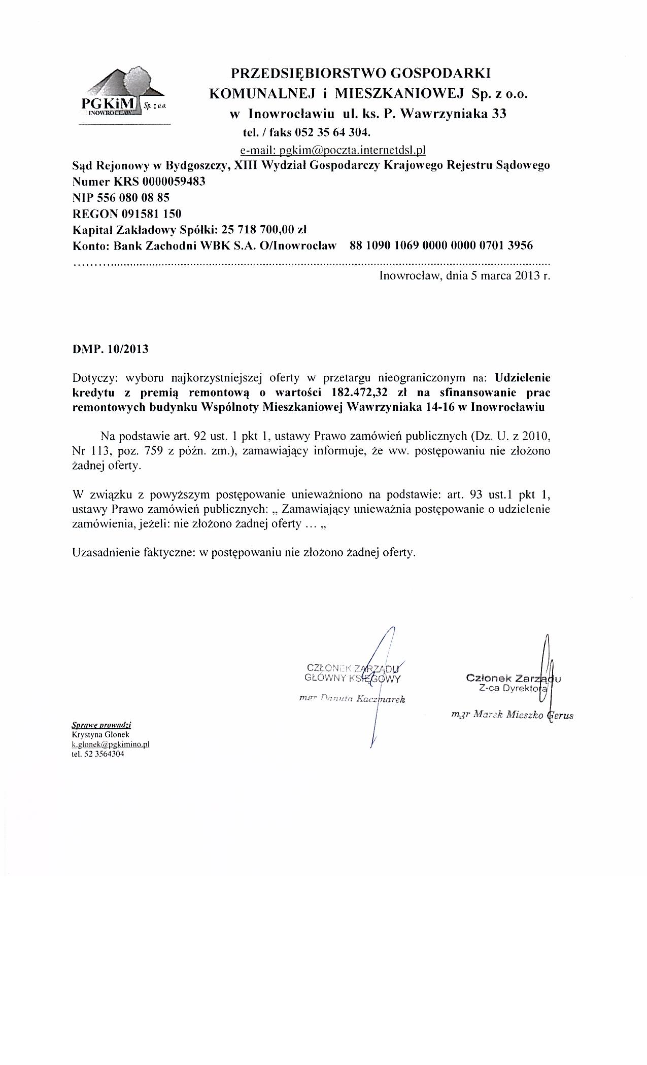 Udzielenie kredytu z premią remontową o wartości 182.472,32 zł na sfinansowanie prac remontowych budynku Wspólnoty Mieszkaniowej Wawrzyniaka 14-16 w Inowrocławiu