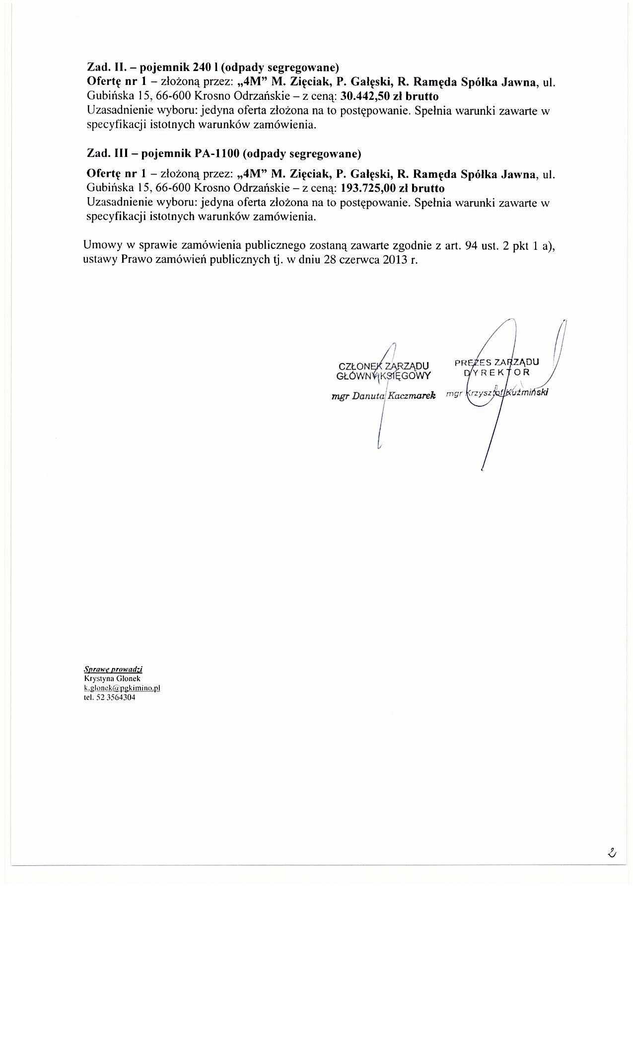 graf. | 244 KB | POBIERZ | Odpowiedzi na zapytania i zmiana terminu dostawy | 2013-06-19 12:45:28 | 475 |