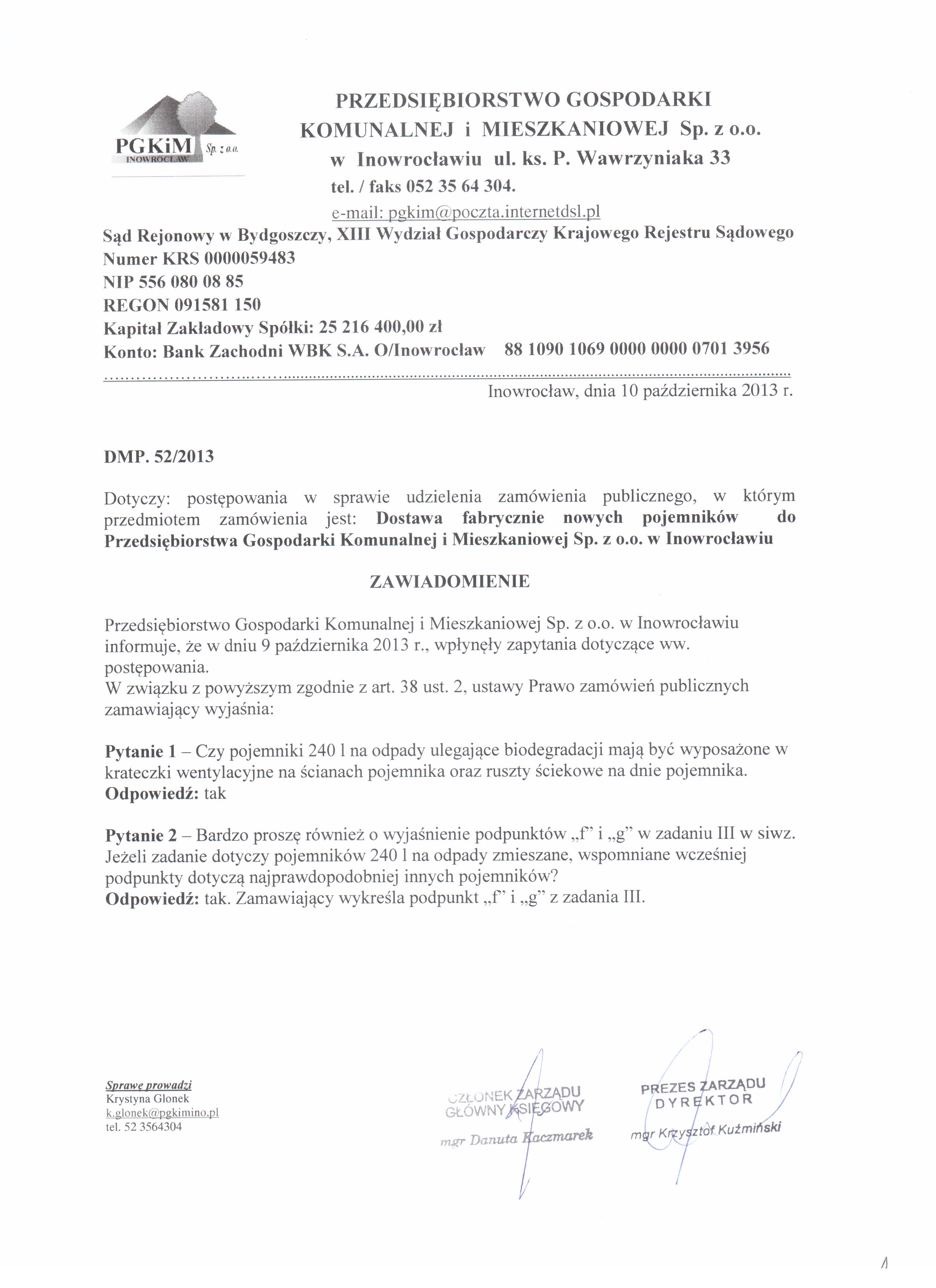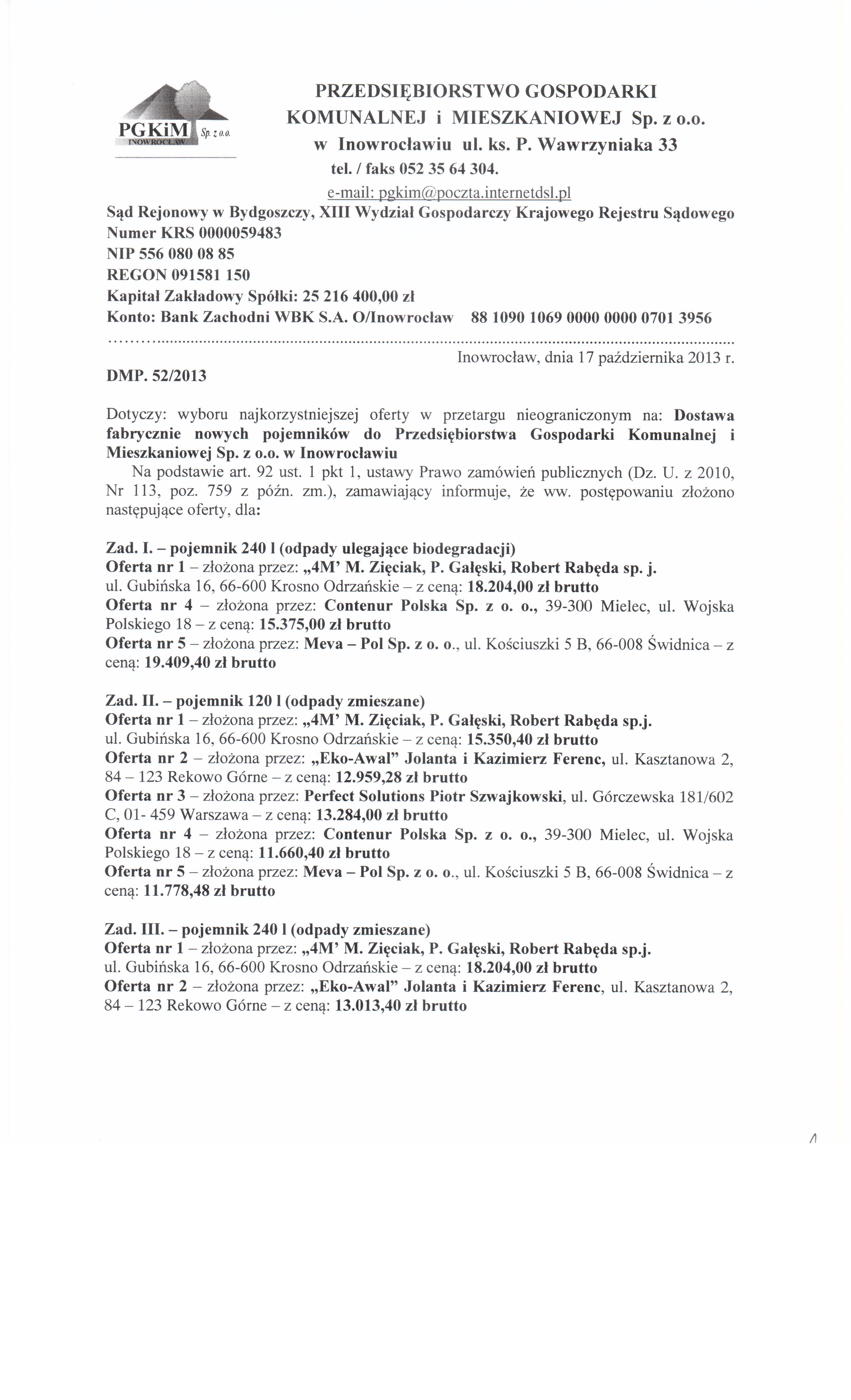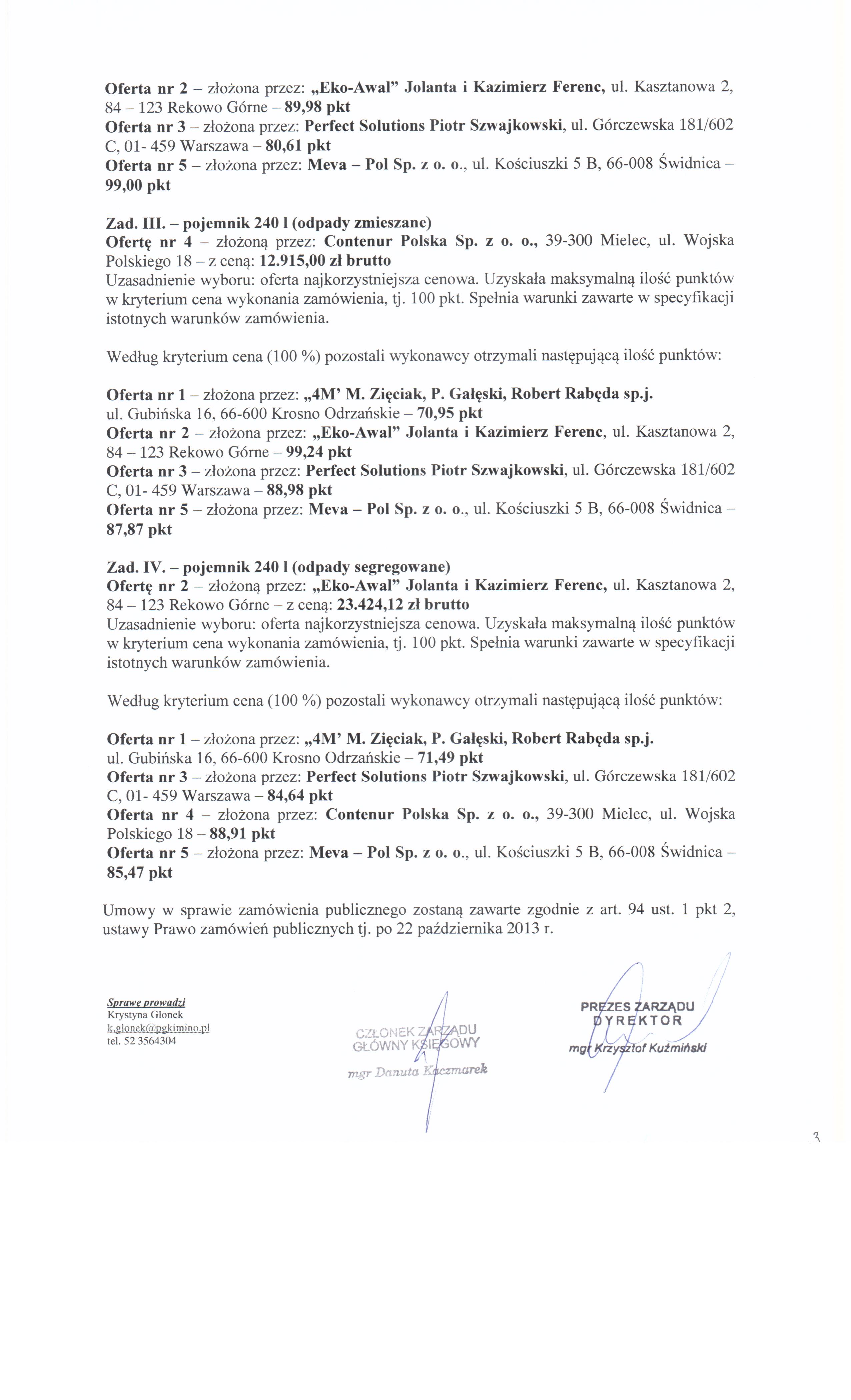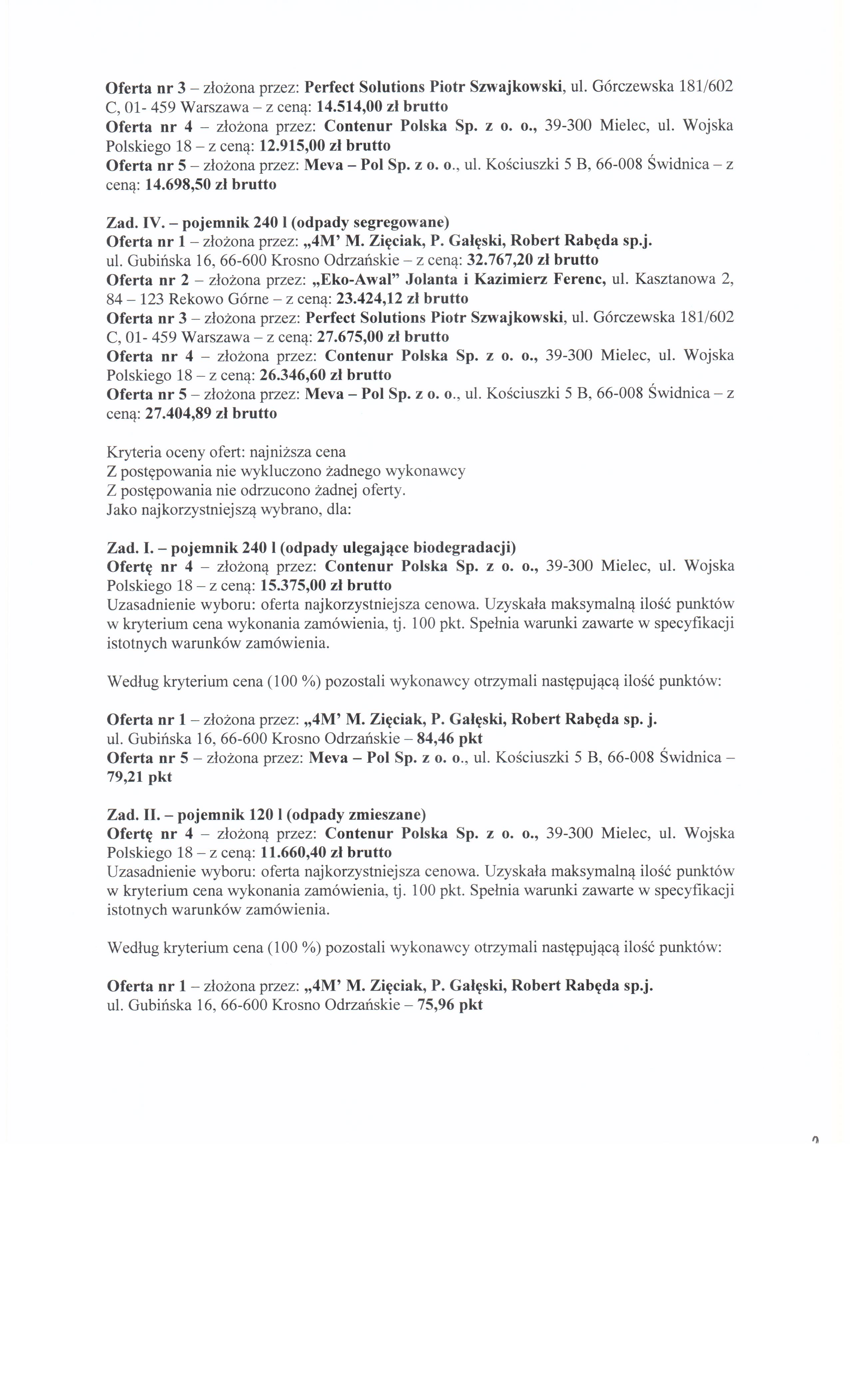 | Typ | Rozmiar | Pobierz | Komentarz | Data dodania | Licznik | ? | 21.4 KB | POBIERZ | Ogłoszenie | 2013-10-02 12:47:41 | 471 | .DOC | 274 KB | POBIERZ | Specyfikacja istotnych warunków zamówienia | 2013-10-02 12:47:53 | 575 | graf. | 538.1 KB | POBIERZ | Odpowiedzi na zapytania | 2013-10-10 12:28:06 | 489 | graf. | 719.3 KB | POBIERZ | Wybór | 2013-10-17 11:03:19 | 447 | graf. | 709.5 KB | POBIERZ | s.2 | 2013-10-17 11:03:27 | 420 | graf. | 703.8 KB | POBIERZ | s.3 | 2013-10-17 11:03:36 | 474 | ? | 18.5 KB | POBIERZ | Ogłoszenie o udzieleniu zamówienia BZP nr 226419-2013 | 2013-10-29 08:53:15 | 465 |