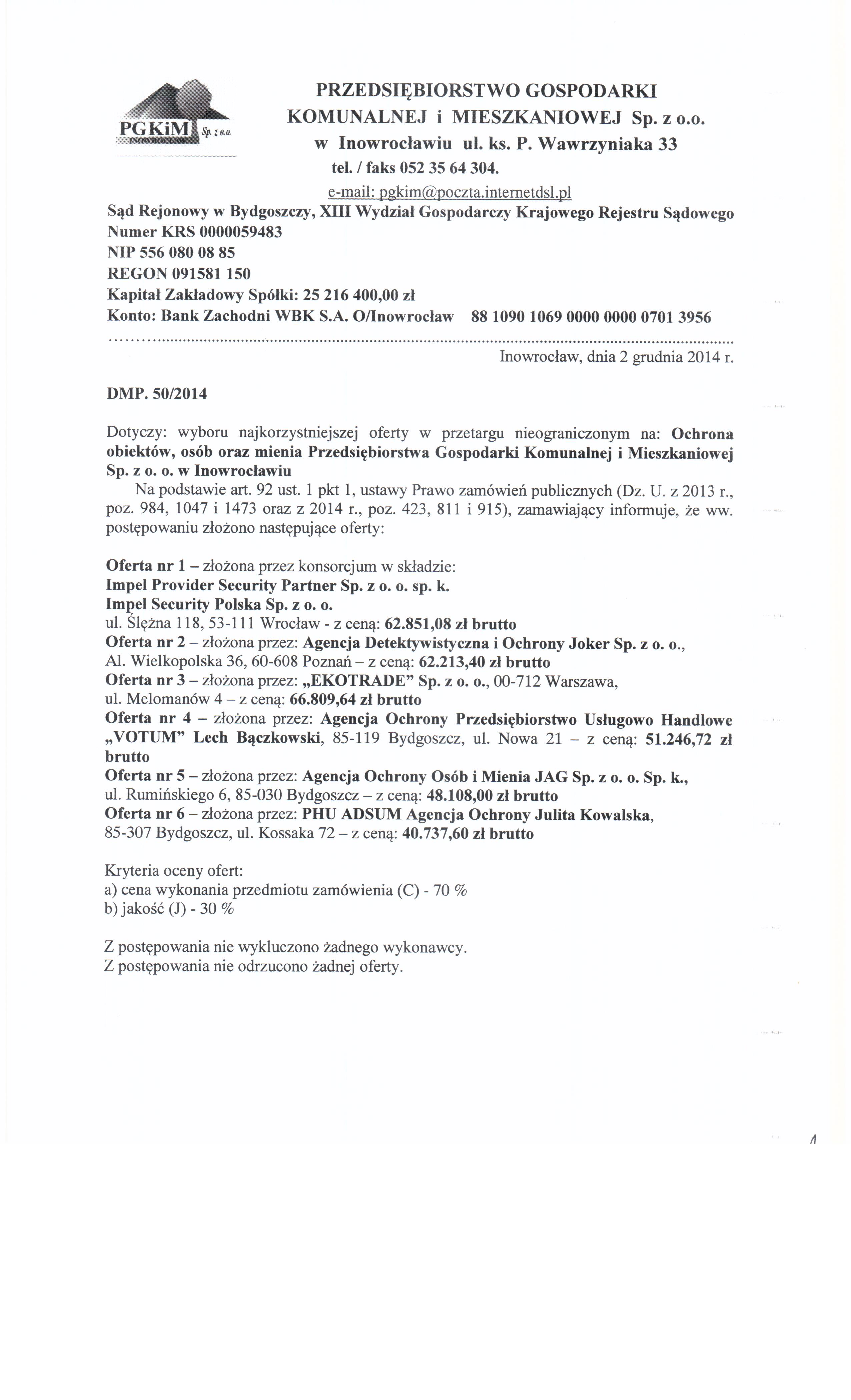 Ochrona obiekt贸w, os贸b oraz mienia Przedsi臋biorstwa Gospodarki Komunalnej i Mieszkaniowej Sp. z o. o. w Inowroc艂awiu