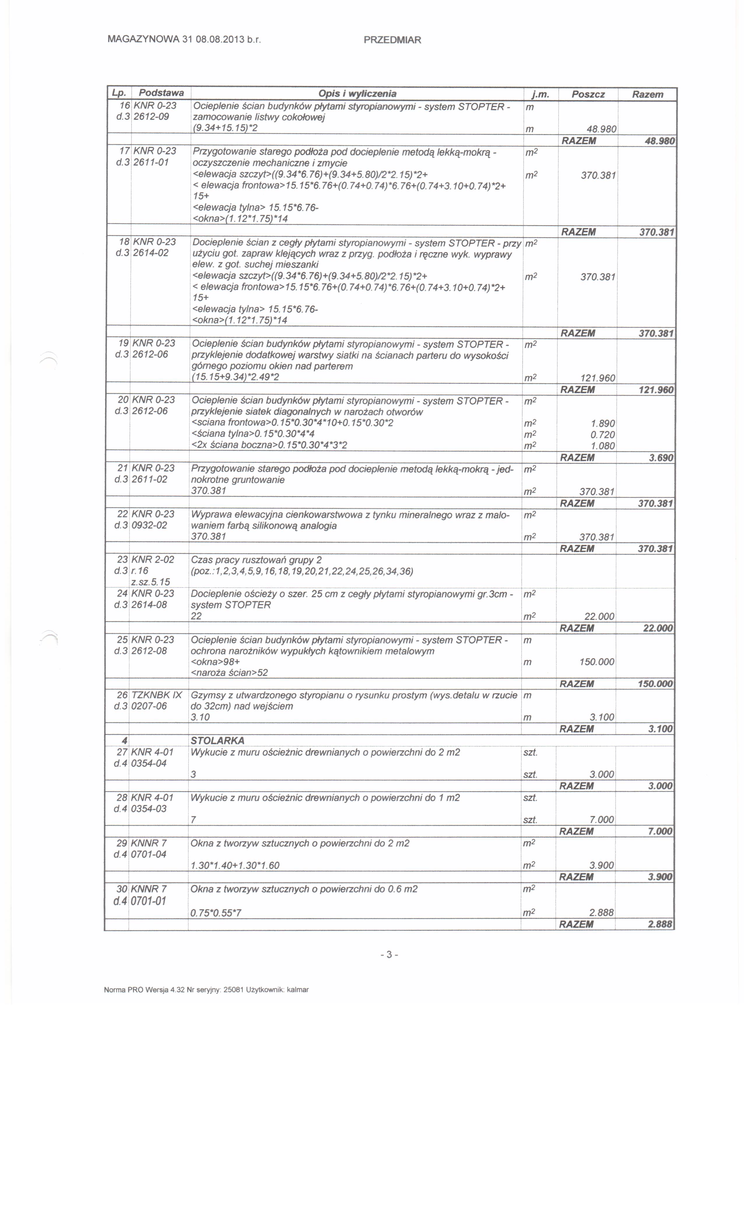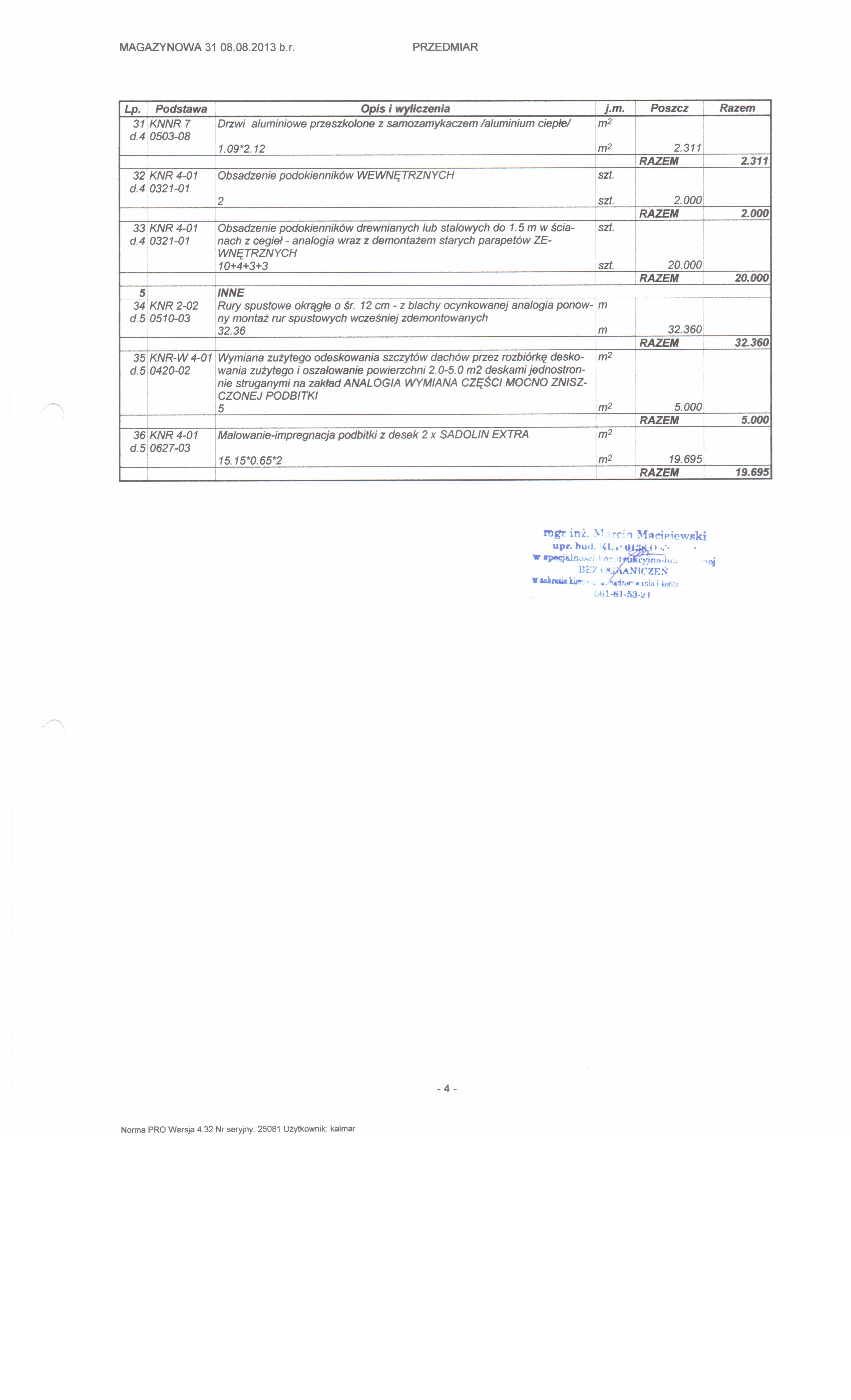 | Typ | Rozmiar | Pobierz | Komentarz | Data dodania | Licznik | ? | 23.3 KB | POBIERZ | Og艂oszenie | 2015-09-17 12:05:22 | 384 | .DOC | 315.5 KB | POBIERZ | Specyfikacja istotnych warunk贸w zam贸wienia | 2015-09-17 12:05:32 | 456 | .PDF | 50.6 KB | POBIERZ | Za艂. nr 8 do siwz - STWiOR | 2015-09-17 12:06:04 | 479 | graf. | 754.7 KB | POBIERZ | Za艂. nr 9 do siwz- przedmiar | 2015-09-17 12:06:22 | 480 | graf. | 751.1 KB | POBIERZ | s.2 | 2015-09-17 12:06:30 | 444 | graf. | 433.1 KB | POBIERZ | s.3 | 2015-09-17 12:06:39 | 472 | .PDF | 121.3 KB | POBIERZ | Za艂. nr 10 do siwz -PB | 2015-09-17 12:06:57 | 737 | .PDF | 195.9 KB | POBIERZ | Rys. 1 | 2015-09-17 12:07:12 | 440 | .PDF | 196.4 KB | POBIERZ | Rys. 2 | 2015-09-17 12:07:22 | 455 | .PDF | 105.9 KB | POBIERZ | Rys. 3 | 2015-09-17 12:07:31 | 437 | .PDF | 107.2 KB | POBIERZ | Rys. 4 | 2015-09-17 12:07:40 | 487 | graf. | 794.1 KB | POBIERZ | Odpowiedzi na zapytania | 2015-09-28 13:33:11 | 387 | graf. | 527.4 KB | POBIERZ | s.2 | 2015-09-28 13:33:23 | 364 | graf. | 460.2 KB | POBIERZ | Dodatkowy przedmiar | 2015-09-28 13:33:41 | 372 | graf. | 647.8 KB | POBIERZ | Wyb贸r | 2015-10-23 14:03:20 | 394 | graf. | 325.2 KB | POBIERZ | s.2 | 2015-10-23 14:03:32 | 356 | ? | 17.1 KB | POBIERZ | Og艂oszenie o udzieleniu zam贸wienia BZP 156835-2015 | 2015-10-28 10:27:56 | 390 |