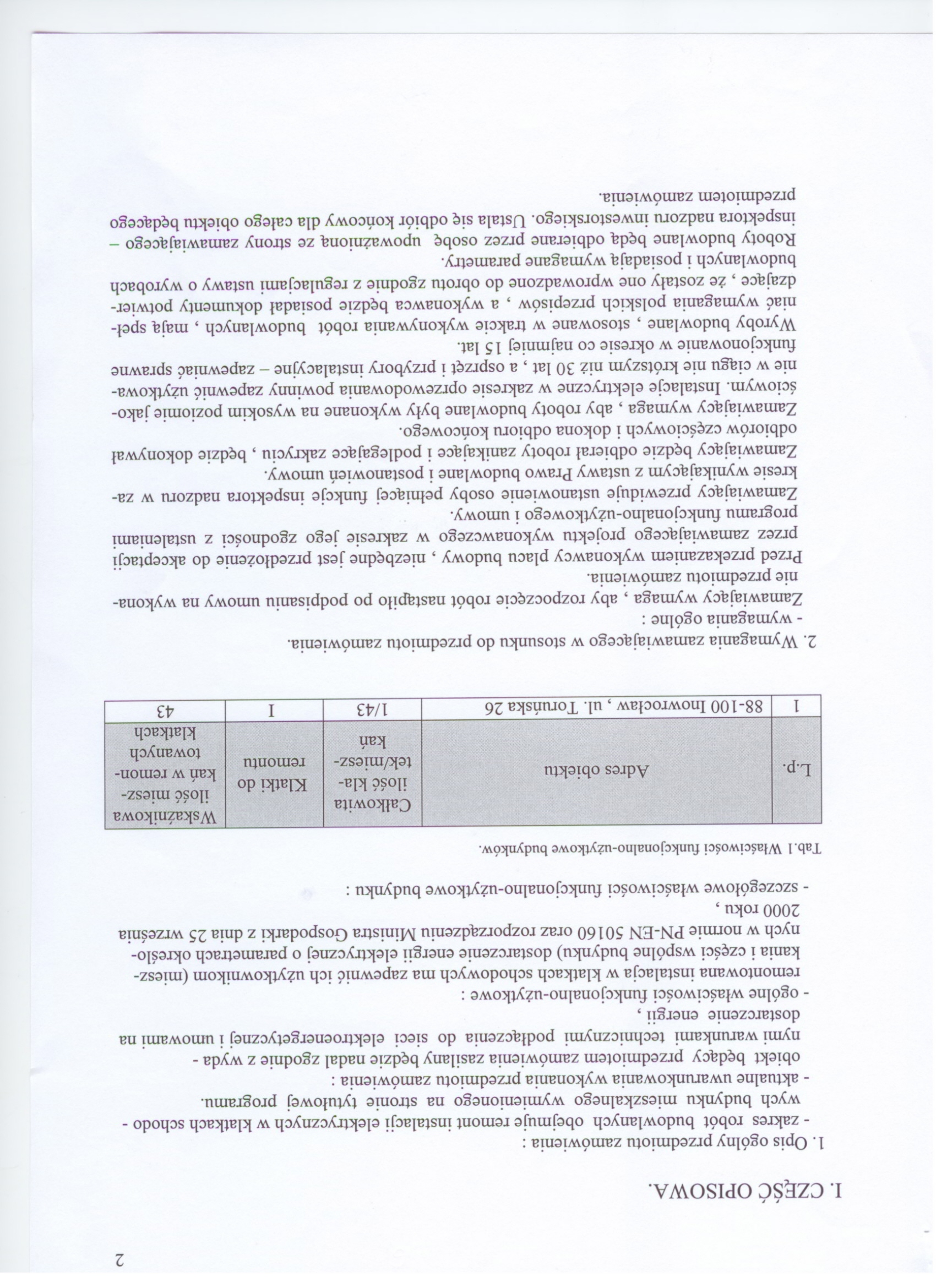 Okre艣lenie przedmiotu zam贸wienia: Tytu艂 post臋powania: „Remont instalacji elektrycznej w klatkach schodowych budynku przy ulicy Toru艅skiej 26 w Inowroc艂awiu”.