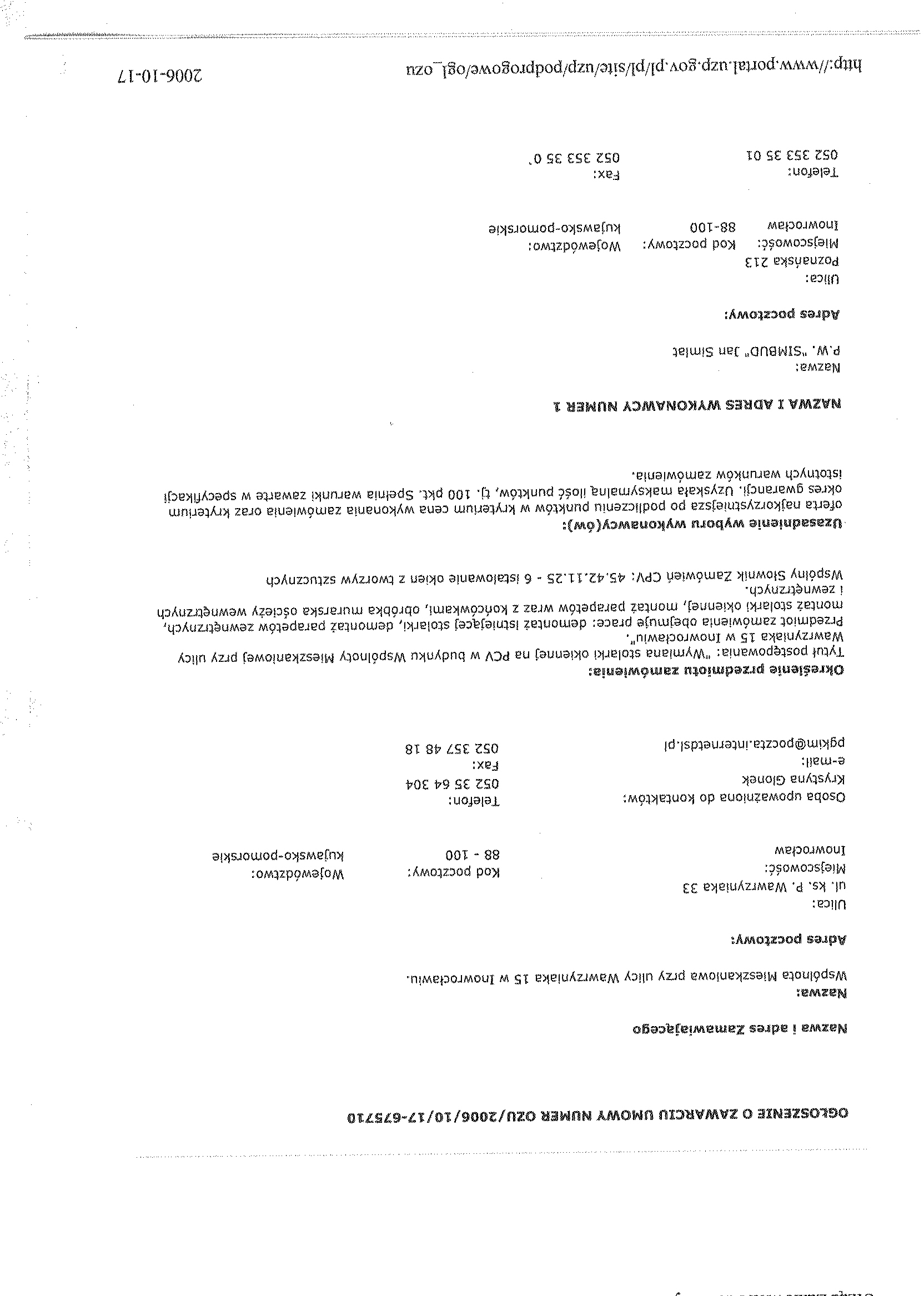 Ulica: ks. Piotra Wawrzyniaka 33 Miejscowo艣膰:聽聽聽聽聽聽聽聽聽聽聽聽聽聽聽Kod pocztowy:聽聽聽聽聽聽聽聽聽聽聽聽聽聽聽 Wojew贸dztwo: Inowroc艂aw聽聽聽聽聽聽聽聽聽聽聽聽聽聽聽聽聽88 – 100聽聽聽聽聽聽聽聽聽聽聽聽聽聽聽聽聽聽聽聽聽聽聽聽聽聽 kujawsko – pomorskie