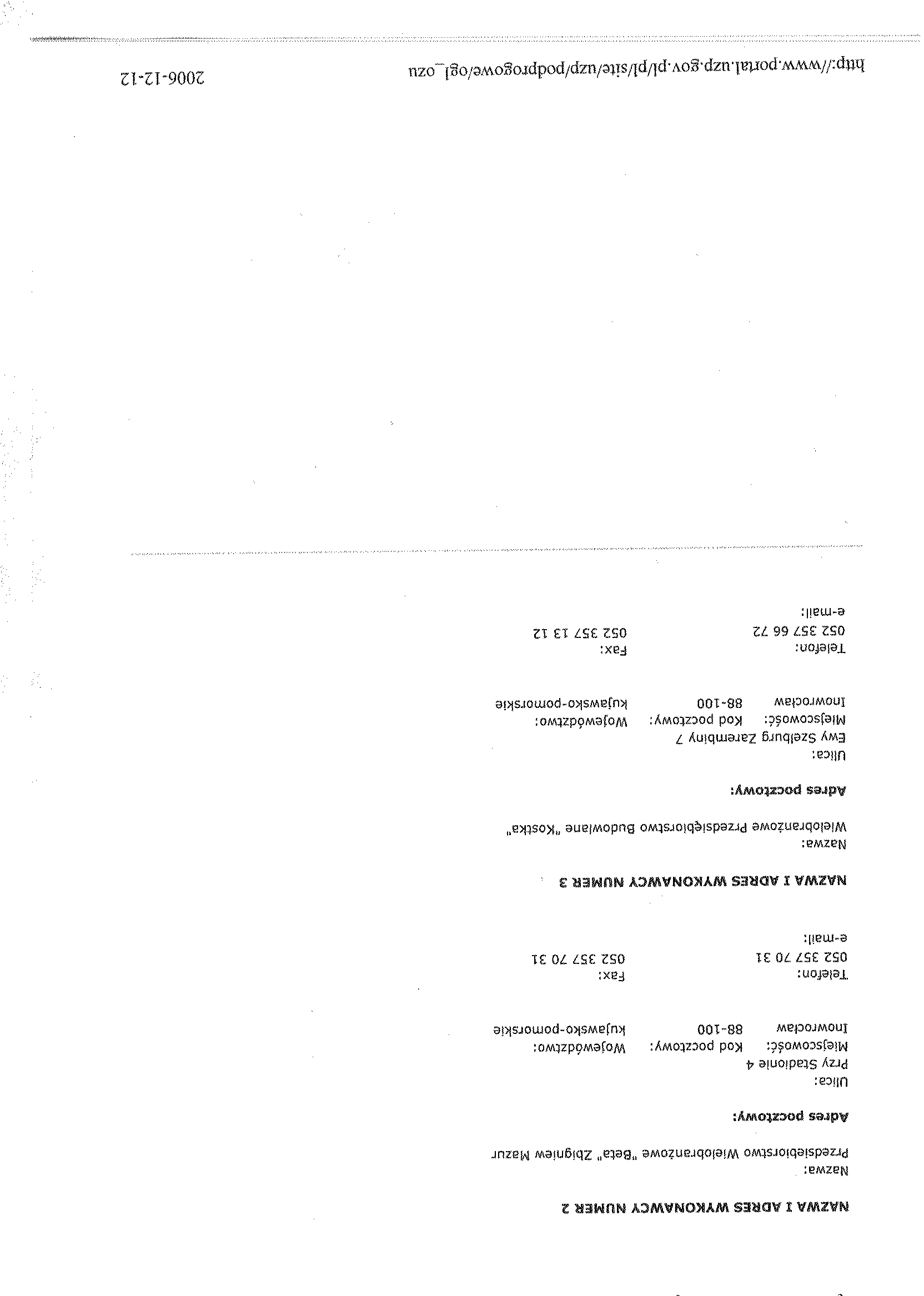 Oferty nale偶y z艂o偶y膰聽w sekretariacie Przedsi臋biorstwa Gospodarki Komunalnej i Mieszkaniowej Sp. z o.o., ul. ks. Piotra Wawrzyniaka 33, 88-100 Inowroc艂aw,聽 do dnia 23 listopada 2006 r. do godz. 9.30.
