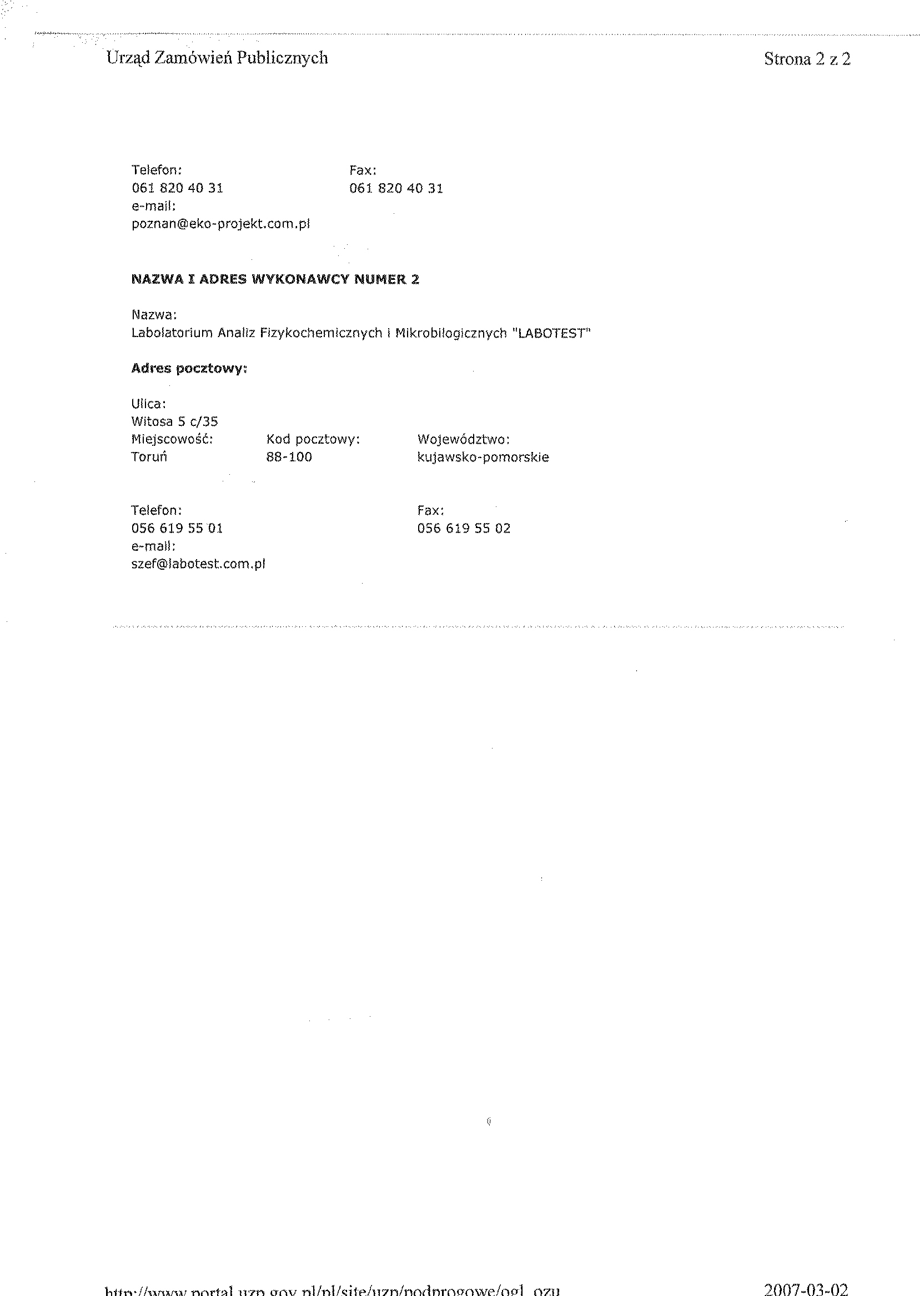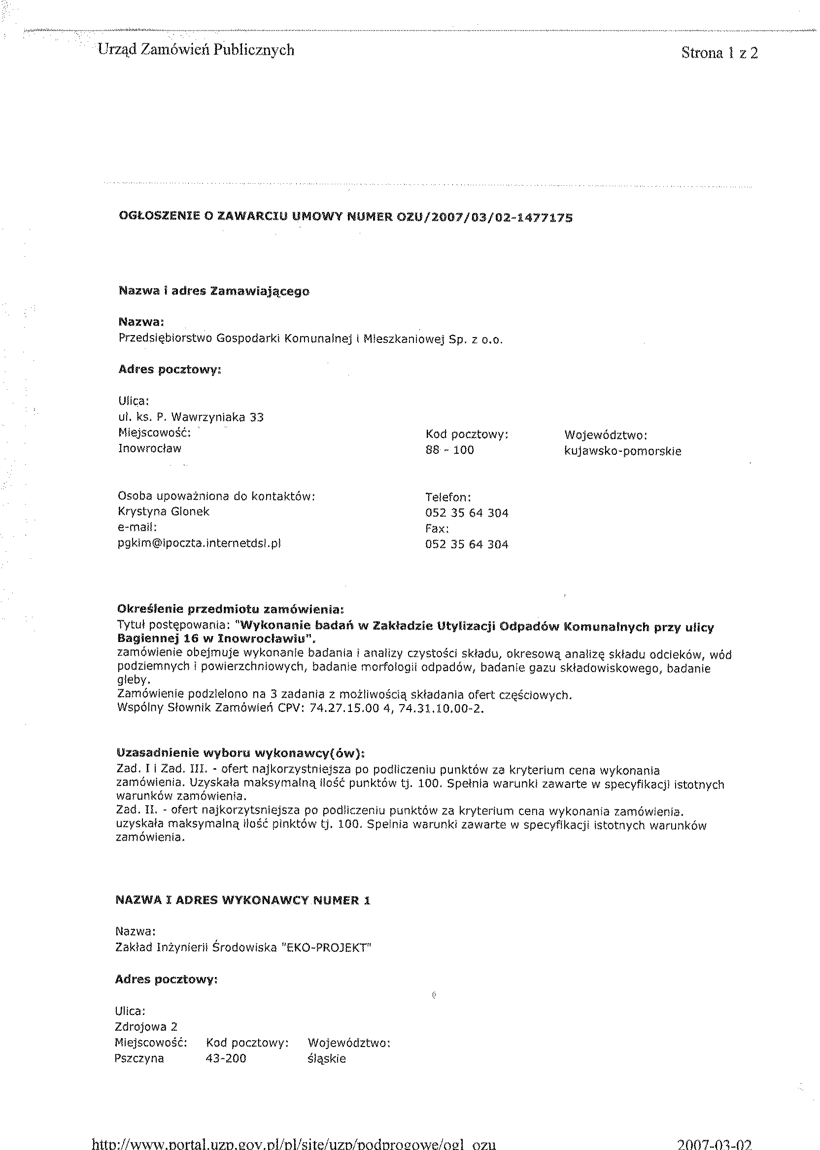 „Wykonanie bada艅 w Zak艂adzie Utylizacji Odpad贸w Komunalnych przy ulicy Bagiennej 16 w Inowroc艂awiu”. 聽