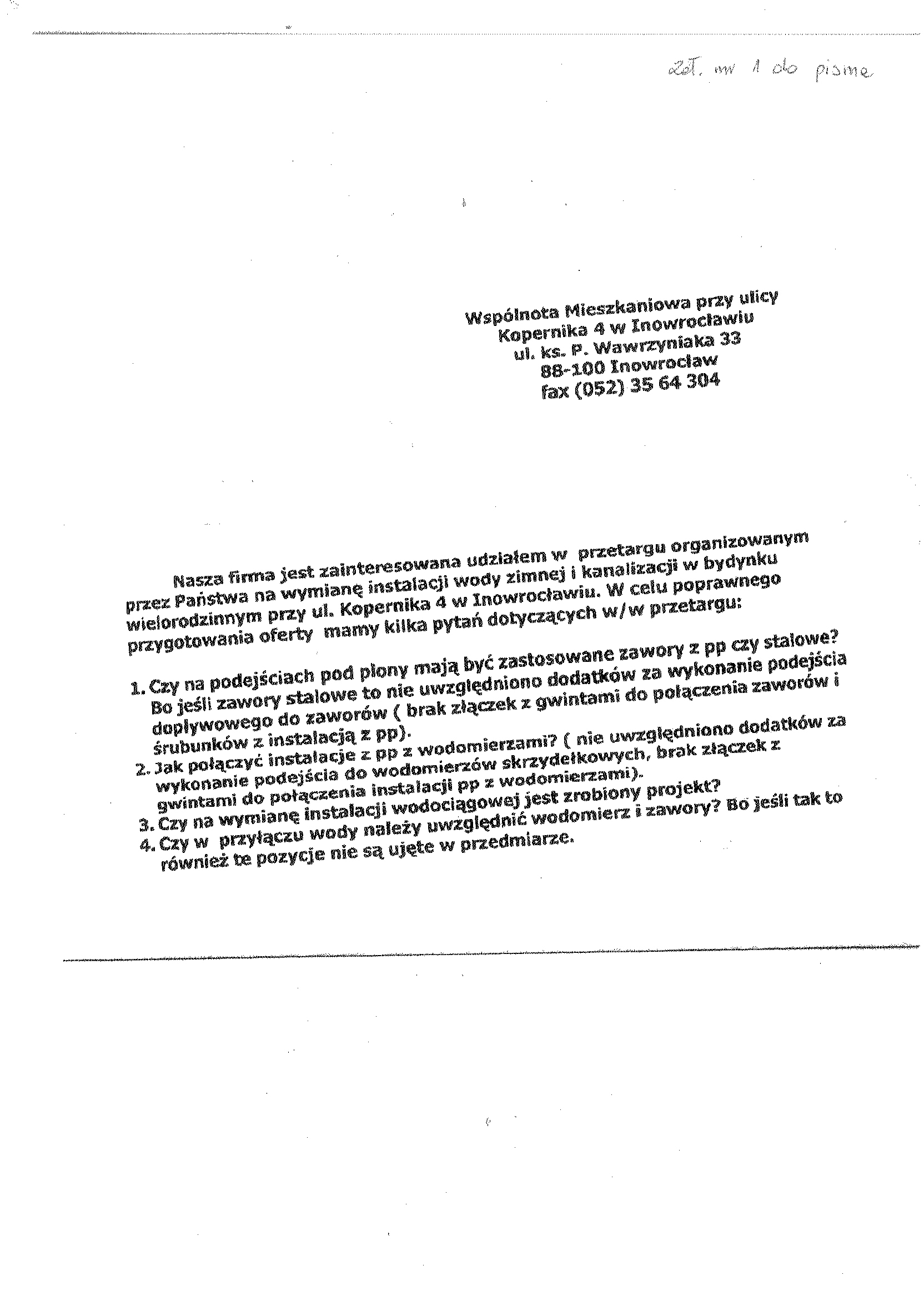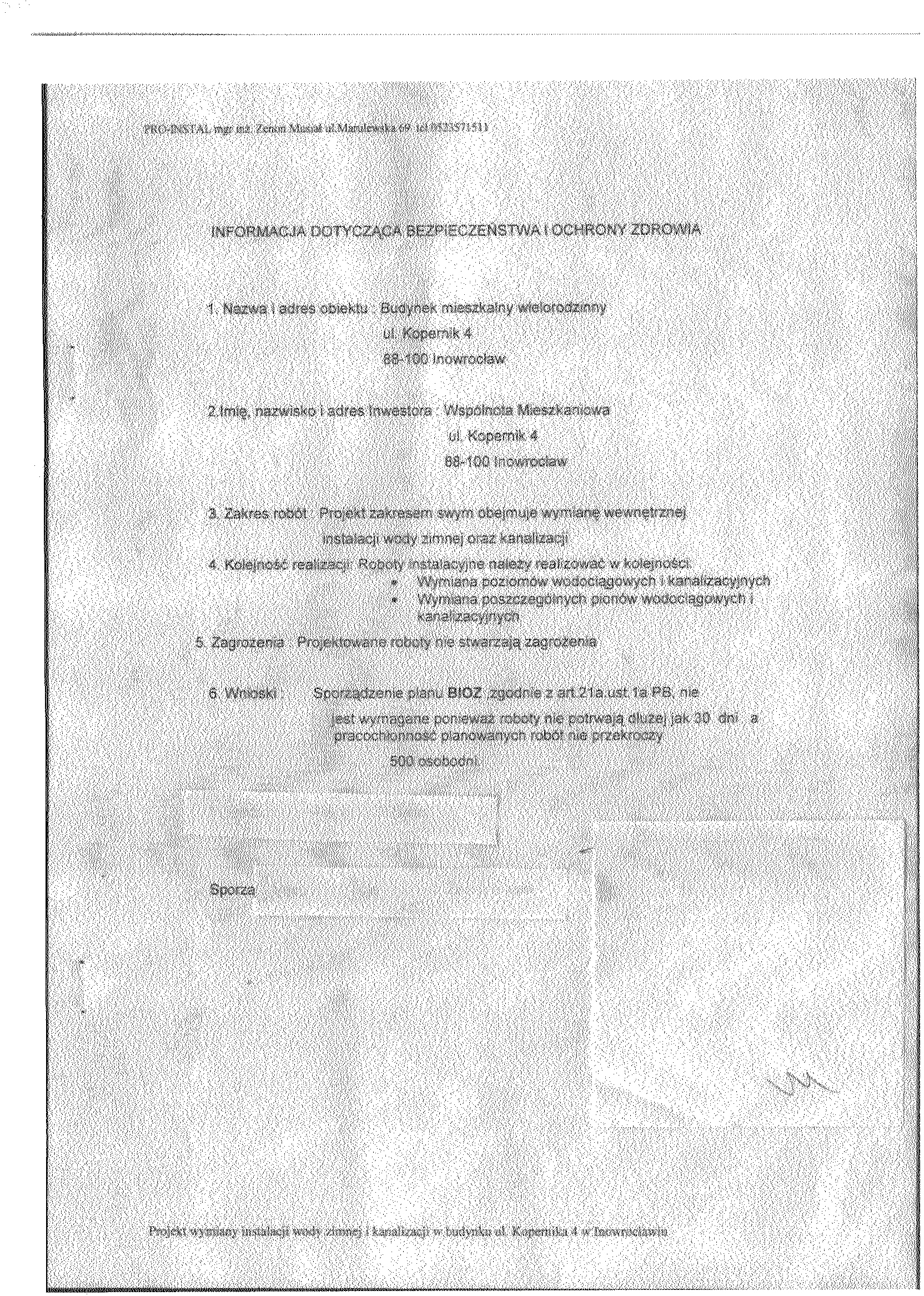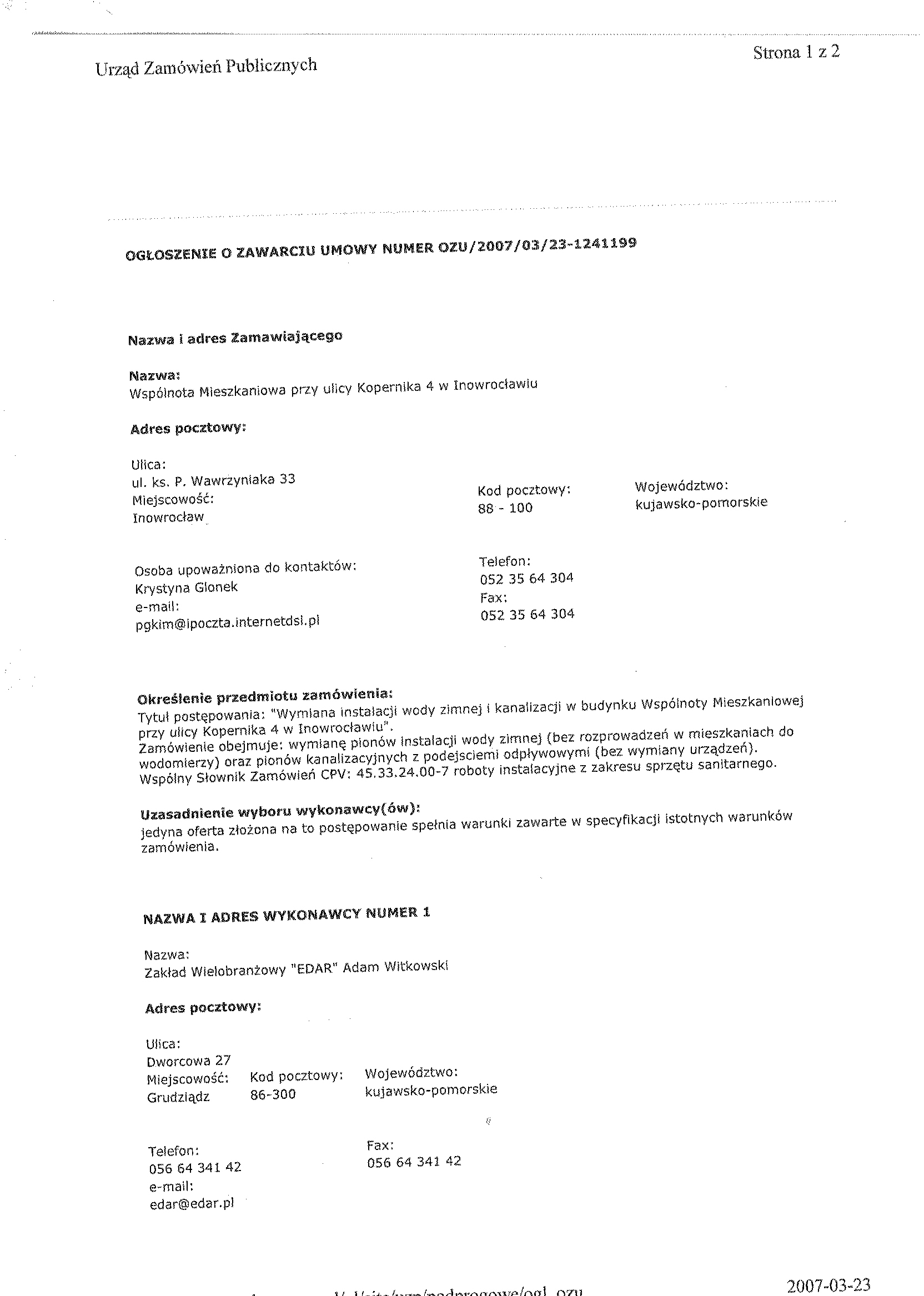 1. Zamawiaj膮cy: Wsp贸lnota Mieszkaniowa przy ulicy Kopernika 4 w Inowroc艂awiu, w imieniu i na rzecz kt贸rej dzia艂a na mocy umowy o administrowanie Przedsi臋biorstwo Gospodarki Komunalnej i Mieszkaniowej Sp. z o.o.