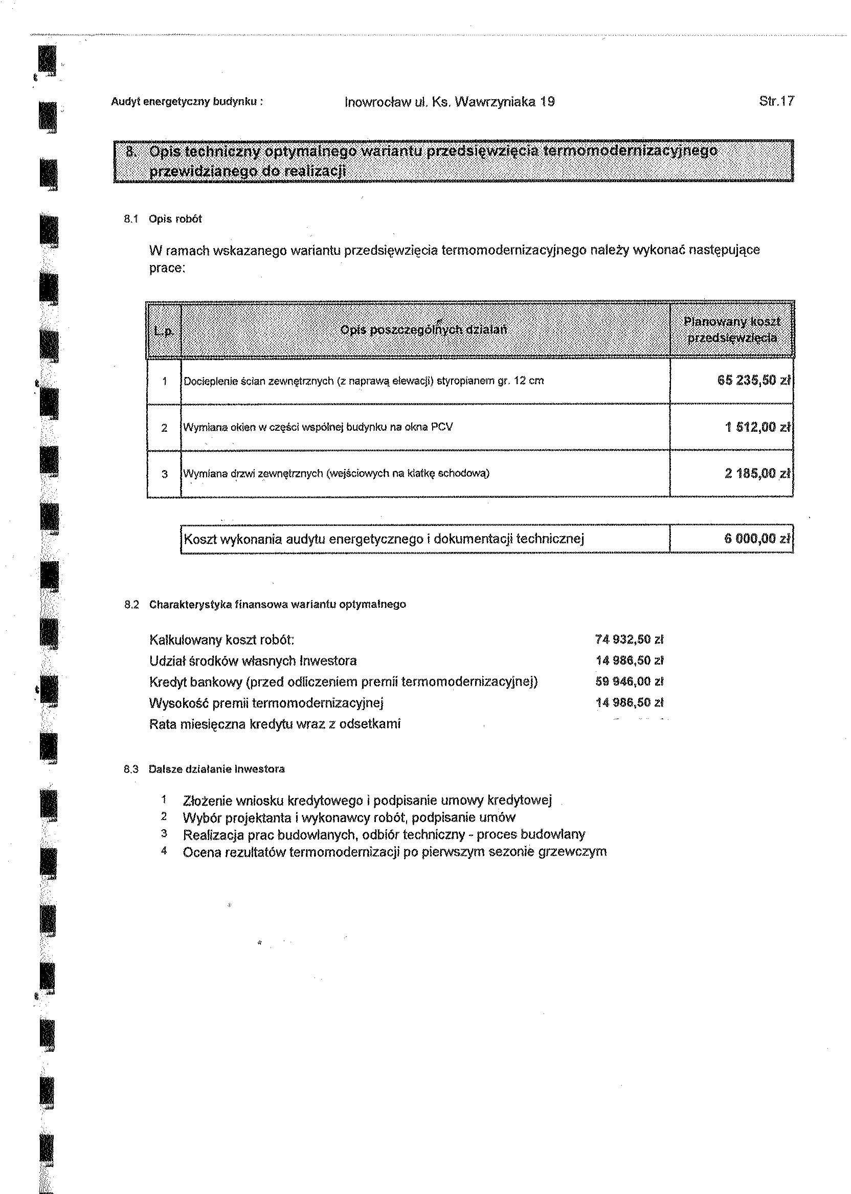 „Udzielenie kredytu inwestycyjnego o warto艣ci 59.946,00 z艂 dla Wsp贸lnot Mieszkaniowej przy ulicy Wawrzyniaka 19 w Inowroc艂awiu”. 聽