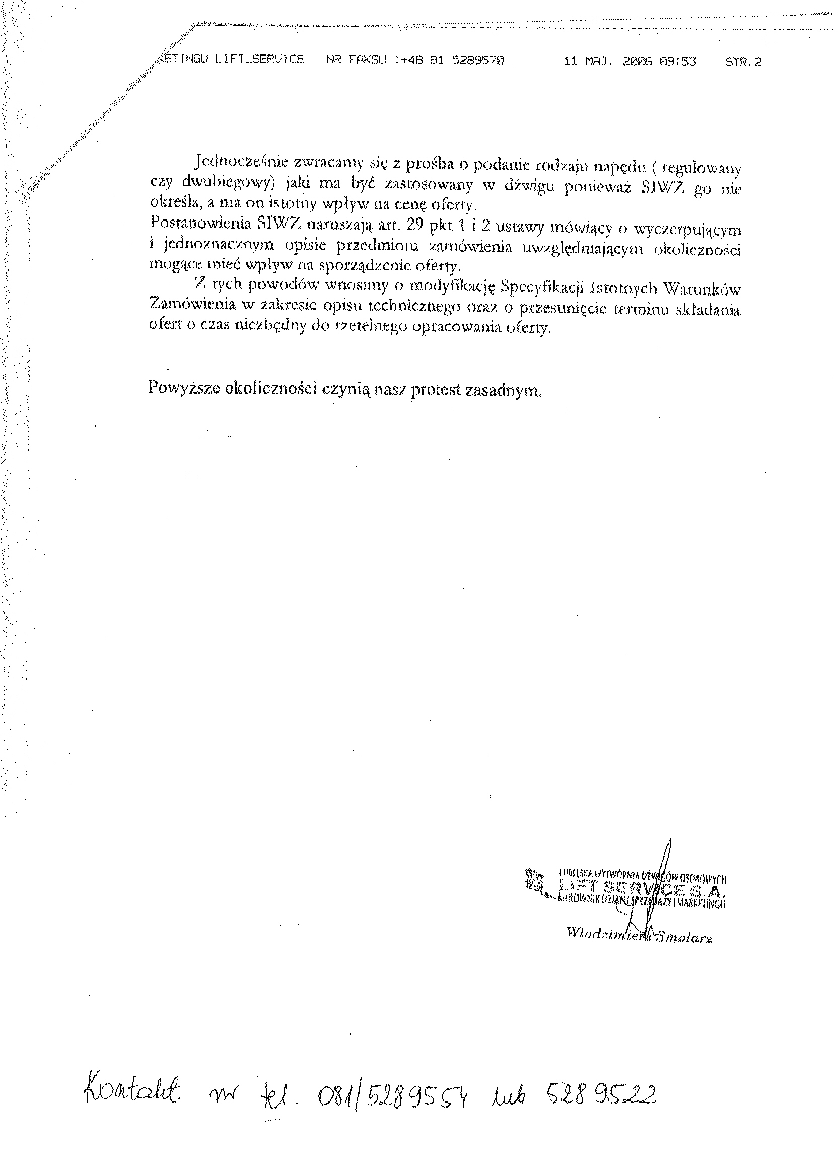16. W celu potwierdzenia, 偶e Dostawca/ Wykonawca posiada uprawnienie do wykonywania okre艣lonej dzia艂alno艣ci lub czynno艣ci oraz nie podlega wykluczeniu na podstawie art. 24 ustawy z dnia 29 stycznia 2004 r. – Prawo zam贸wie艅 publicznych, zamawiaj膮cy 偶膮da nast臋puj膮cych dokument贸w: a) aktualnego odpisu z w艂a艣ciwego rejestru albo aktualnego za艣wiadczenia o wpisie do ewidencji dzia艂alno艣ci gospodarczej, je偶eli odr臋bne przepisy wymagaj膮 wpisu do聽聽 rejestru lub zg艂oszenia do ewidencji dzia艂alno艣ci gospodarczej, wystawionego nie wcze艣niej ni偶 6 miesi臋cy przed up艂ywem terminu sk艂adania ofert, b) o艣wiadczenia dostawcy/wykonawcy, 偶e nie posiada zaleg艂o艣ci podatkowej wobec Naczelnika Urz臋du Skarbowego, c) o艣wiadczenia dostawcy/wykonawcy, 偶e nie posiada zaleg艂o艣ci wobec Zak艂adu Ubezpiecze艅 Spo艂ecznych w op艂acaniu sk艂adek na ubezpieczenie spo艂eczne, zdrowotne oraz Fundusz Pracy. 16.1.W celu potwierdzenia posiadania przez dostawc臋/wykonawc臋 niezb臋dnej wiedzy i do艣wiadczenia oraz os贸b zdolnych do wykonania zam贸wienia, zamawiaj膮cy 偶膮da nast臋puj膮cych dokument贸w: a) wykazu podobnych wykonanych dostaw/us艂ug w okresie ostatnich 3 lat, z聽 podaniem ich warto艣ci, przedmiotu, dat wykonania i zleceniodawcy, za艂. nr 2 do siwz. Do za艂膮cznika nale偶y do艂膮czy膰 dokumenty potwierdzaj膮ce, 偶e dostawy/us艂ugi zosta艂y wykonane nale偶ycie (minimum 2 referencje). 16.2. Polisy lub innego dokumentu stwierdzajacego, 偶e wykonawca jest ubezpieczony w zakresie prowadzonej dzia艂alno艣ci. 16.3. Opis oferowanego d藕wigu. 16.4.Wype艂nione nast臋puj膮ce za艂膮czniki: a) formularz ofertowy dostawcy/wykonawcy (za艂. nr 1 do swiz). b) wykaz podobnych dostaw/ us艂ug (za艂. nr 2 do swiz), c) o艣wiadczenie w trybie art. 24 ustawy Pzp (za艂. nr 3 do siwz), d) o艣wiadczenie w trybie art.22 ust.1 pkt.1-4聽 ustawy聽 Pzp (za艂. nr 4 do siwz). 聽