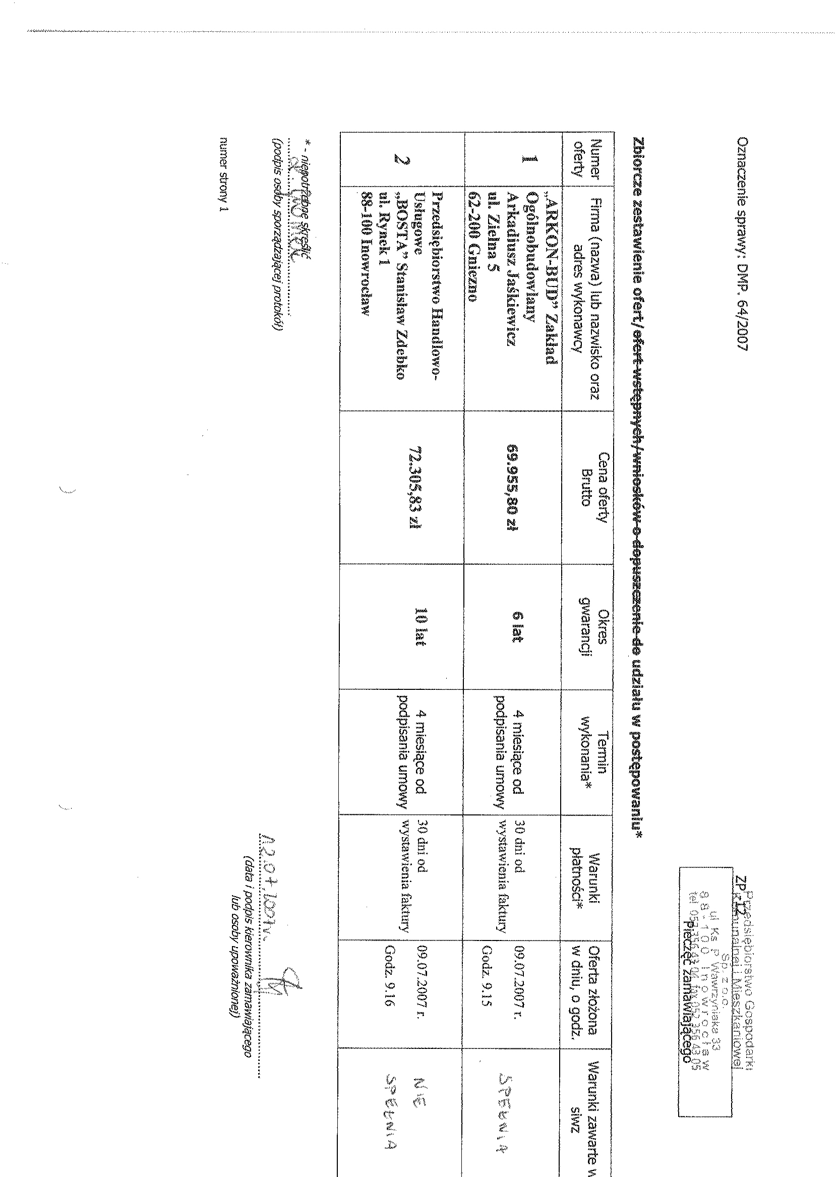 Numer sprawy: DMP. 64/2007聽聽聽聽聽聽聽聽聽聽聽聽聽聽聽聽聽聽聽聽聽聽聽聽聽聽聽聽聽Inowroc艂aw, dnia 15 czerwca 2007 r.聽聽