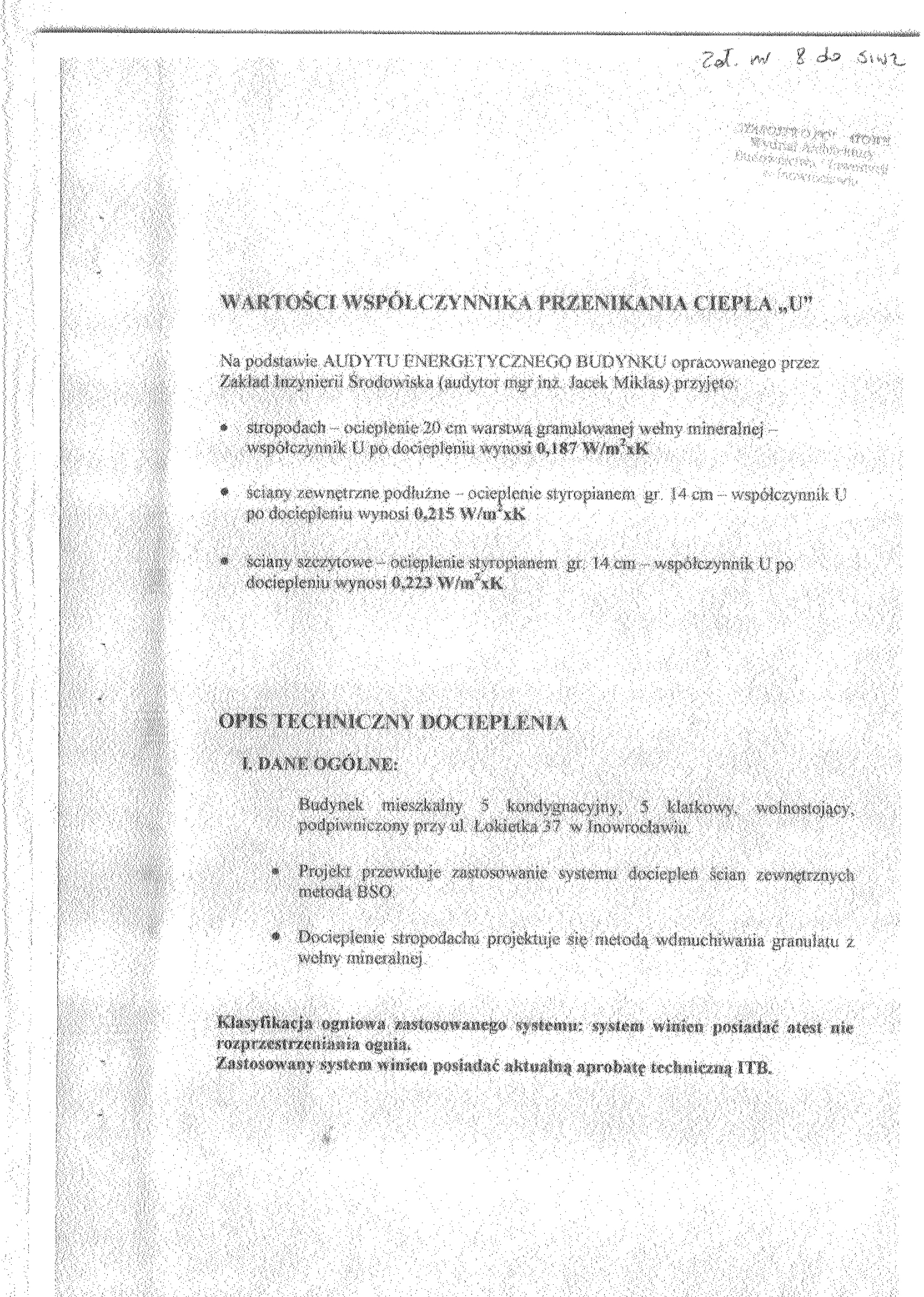 2. Przedmiot zam贸wienia: „Termomodernizacja budynku Wsp贸lnoty Mieszkaniowej przy ulicy 艁okietka 37 w Inowroc艂awiu”.
