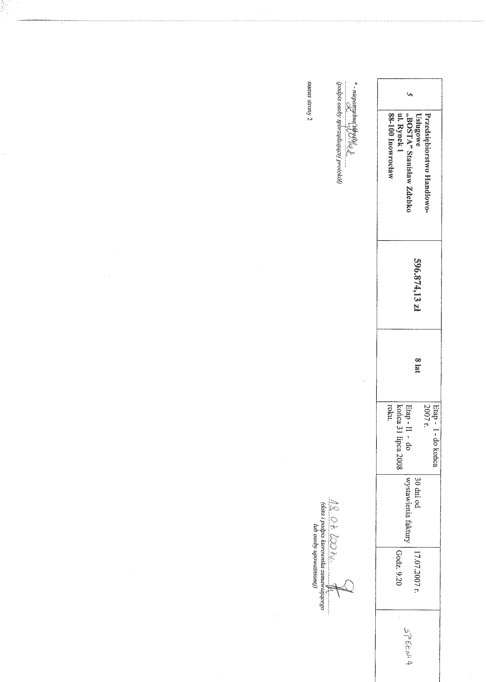 9. Osobami uprawnionymi do kontakt贸w z wykonawcami s膮: 聽聽聽 a) Krystyna Glonek, tel. 052 35 64聽304, 聽聽聽 b) Maria Sarnowska, tel. 052 35 64聽320, 聽聽 聽聽c) Anna Nawrocka, tel. 052 35 64聽325. 10. Przewidywane terminy realizacji zam贸wienia: a) Etap -聽 I - do ko艅ca 2007 r. b) Etap - II聽 -聽 do ko艅ca 31 lipca 2008 roku. 11. Adres strony internetowej, na kt贸rej dost臋pna jest specyfikacja istotnych warunk贸w zam贸wienia: http://pgkim-inowroclaw.samorzady.pl 12. Op艂ata za otrzymanie specyfikacji istotnych warunk贸w zam贸wienia b臋dzie pokrywa膰 jedynie koszty jej druku oraz聽 przekazania. 13.Wykonawca zainteresowany post臋powaniem powinien z艂o偶y膰 wniosek u zamawiaj膮cego z podaniem wszystkich danych firmy -聽 niezb臋dnych do przekazywania zmian i zapyta艅 dotycz膮cych powy偶szego post臋powania. 14. O udzielenie zam贸wienia mog膮 ubiega膰 si臋 wy艂膮cznie Wykonawcy, kt贸rzy: 1) posiadaj膮 uprawnienia do wykonywania okre艣lonej dzia艂alno艣ci lub czynno艣ci, je偶eli ustawy nak艂adaj膮 obowi膮zek posiadania takich uprawnie艅, 2) posiadaj膮 niezb臋dn膮 wiedz臋 i do艣wiadczenie oraz potencja艂 techniczny, a tak偶e dysponuj膮 osobami zdolnymi do wykonania zam贸wienia, 3) znajduj膮 si臋 w sytuacji ekonomicznej i finansowej zapewniaj膮cej wykonanie zam贸wienia, 4) nie podlegaj膮 wykluczeniu z post臋powania o udzielenie zam贸wienia. 聽