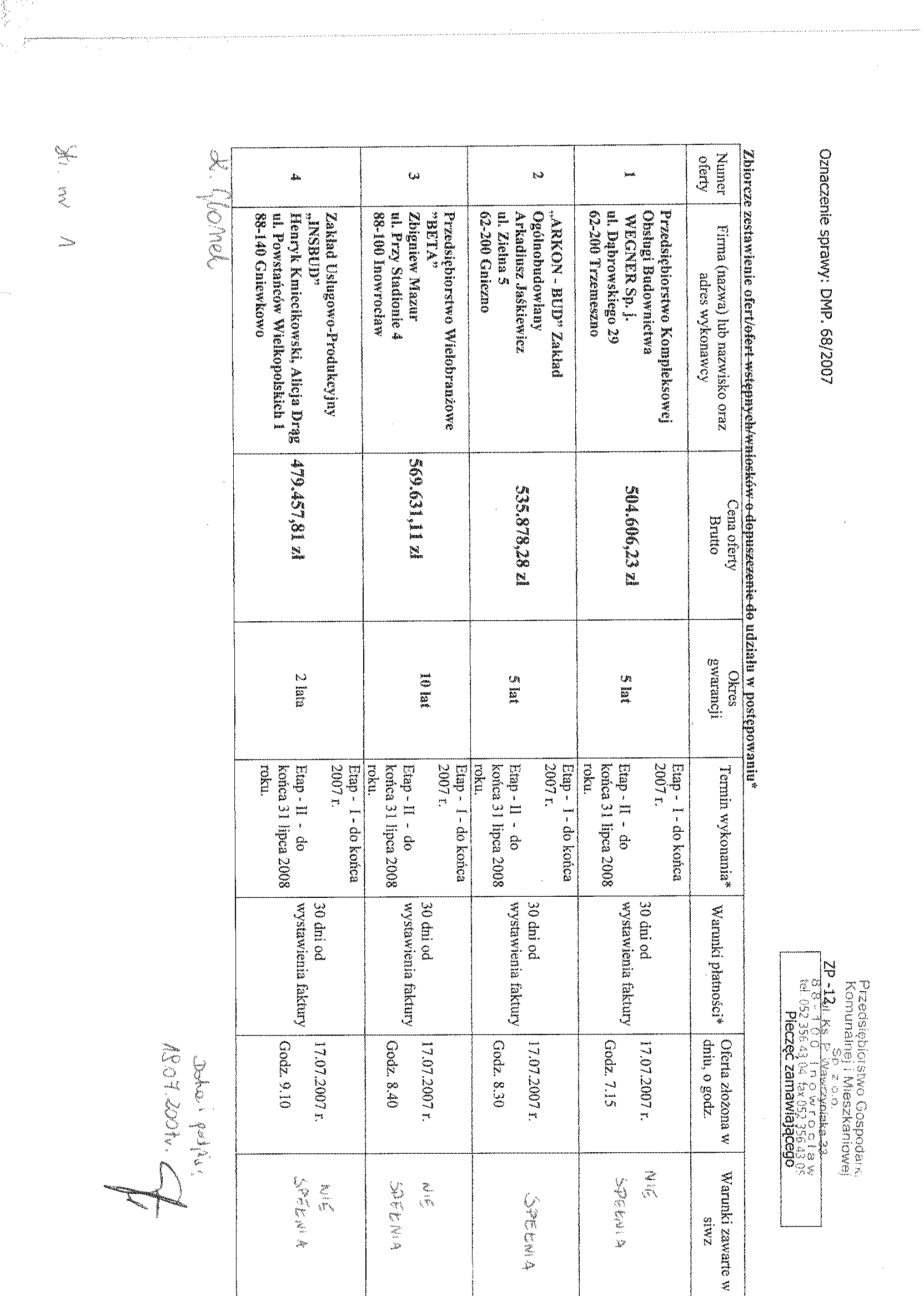 Numer sprawy: DMP. 68/2007聽聽聽聽聽聽聽聽聽聽聽聽聽聽聽聽聽聽聽聽聽聽聽聽聽聽聽聽聽聽Inowroc艂aw, dnia 25 czerwca 2007 r.聽聽 聽