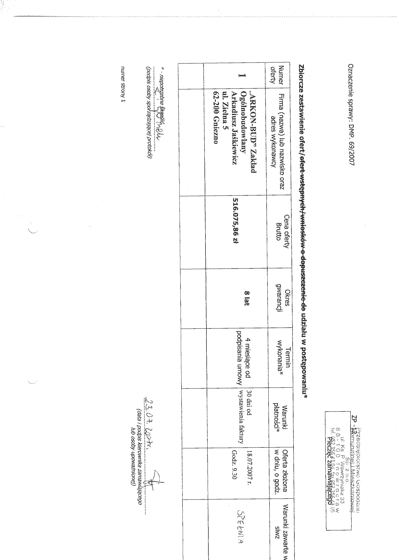 Numer sprawy: DMP. 69/2007聽聽聽聽聽聽聽聽聽聽聽聽聽聽聽聽聽聽聽聽聽聽聽聽聽聽聽聽聽聽聽聽聽Inowroc艂aw, dnia 26 czerwca 2007 r.聽聽