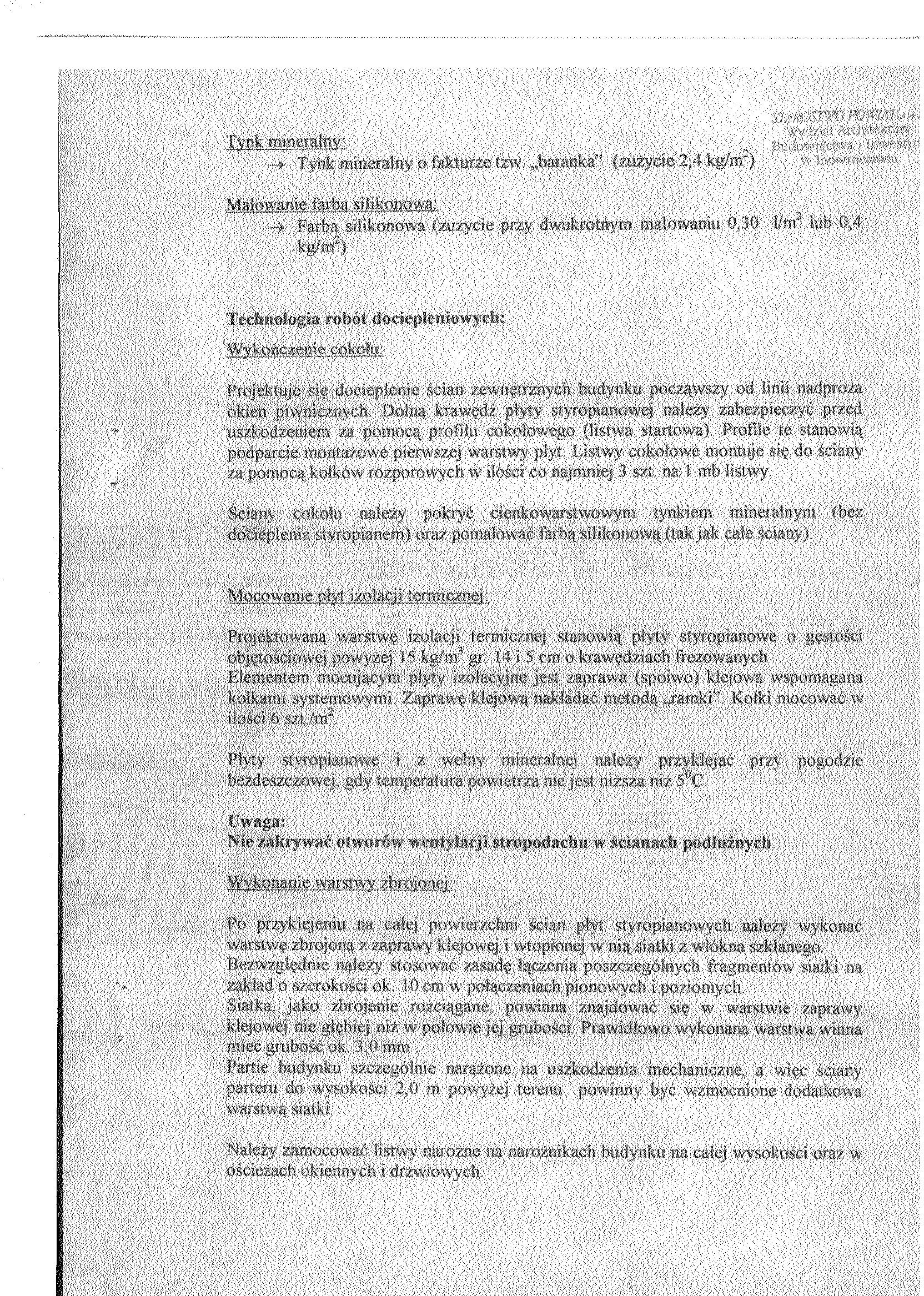 Zam贸wienie obejmuje: obejmuje: docieplenie i kolorystyka 艣cian zewn臋trznych, wymiana obr贸bek blacharskich i rynien, dociepelenie stropodachu, remont wej艣膰 do budynku wraz z wymian膮 drzwi zewn臋trznych, wymiana okien piwnic na PCV.