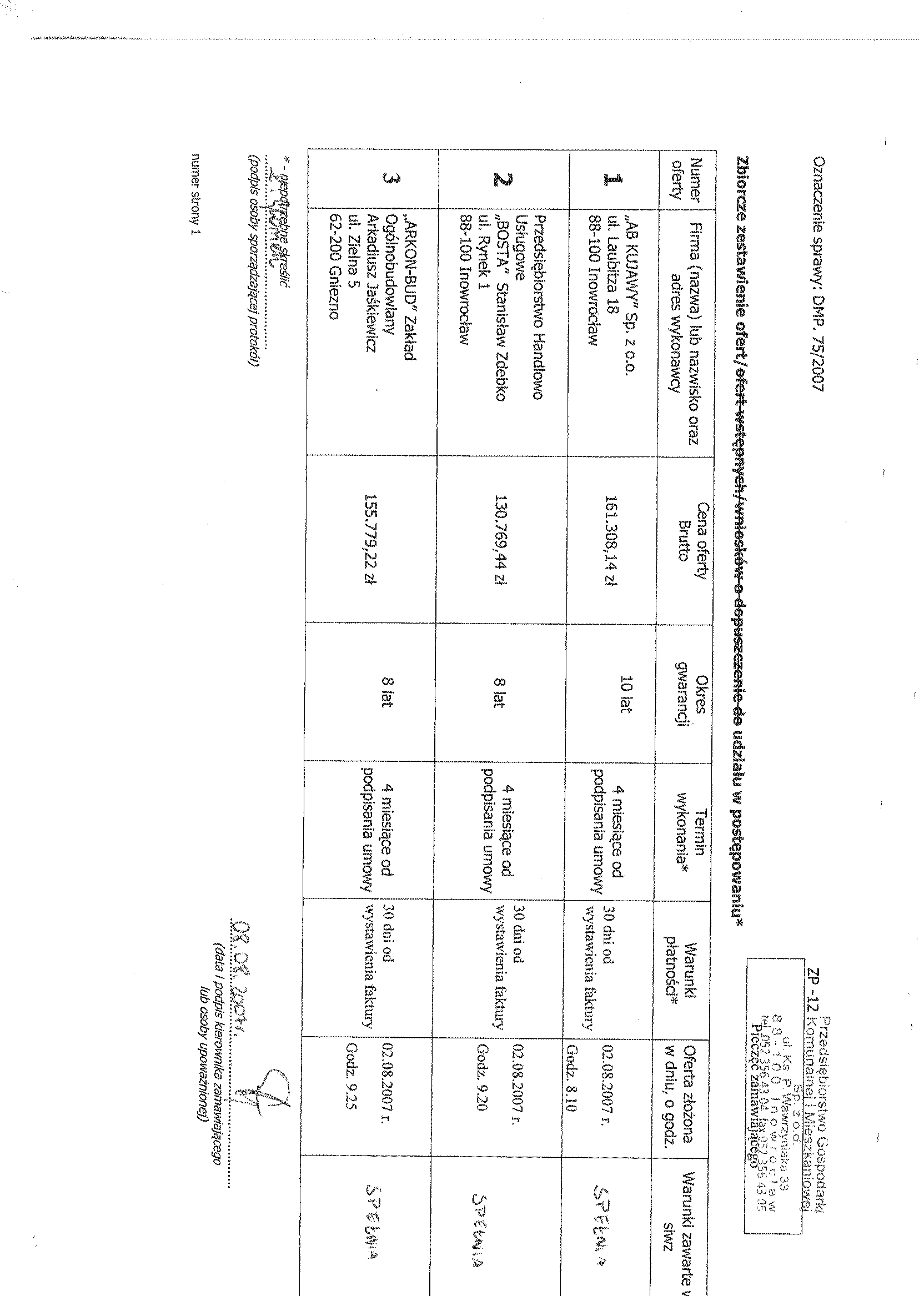 Numer sprawy: DMP. 75/2007聽聽聽聽聽聽聽聽聽聽聽聽聽聽聽聽聽聽聽聽聽聽聽聽聽聽聽聽聽聽聽聽聽聽聽Inowroc艂aw, dnia 11 lipca 聽2007 r.聽聽