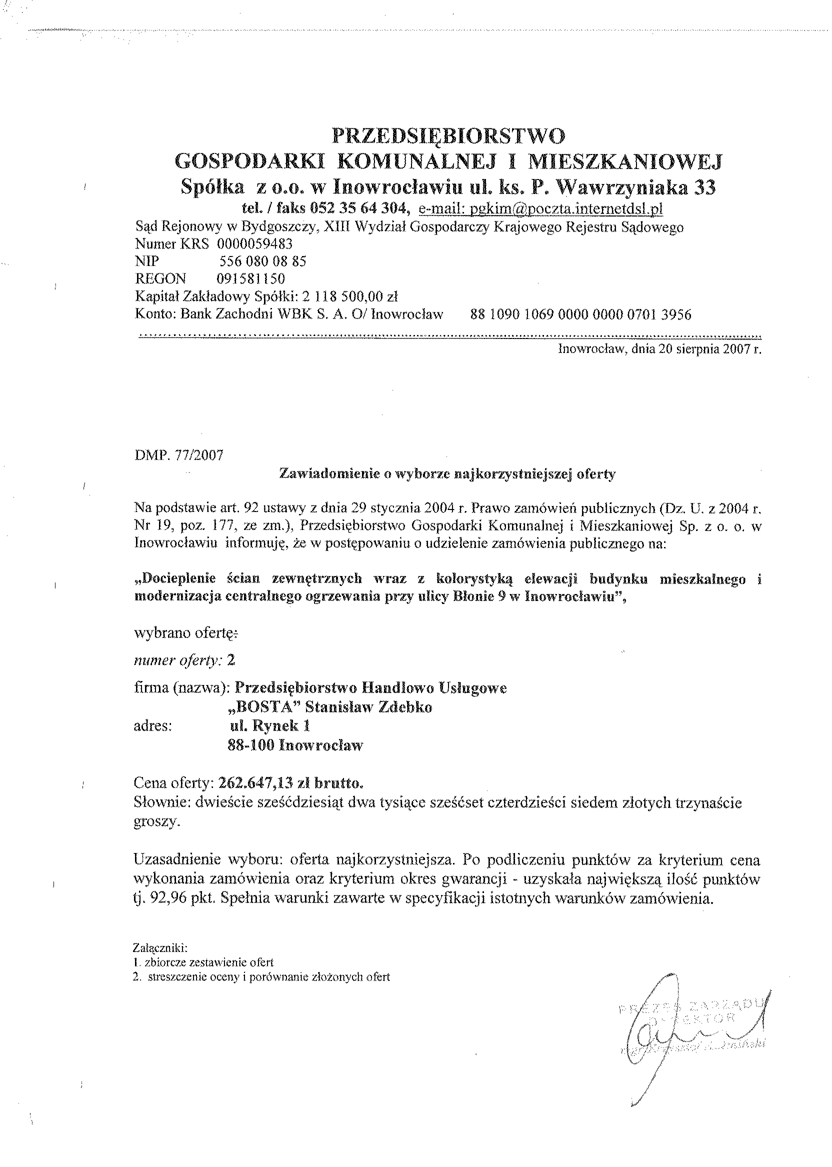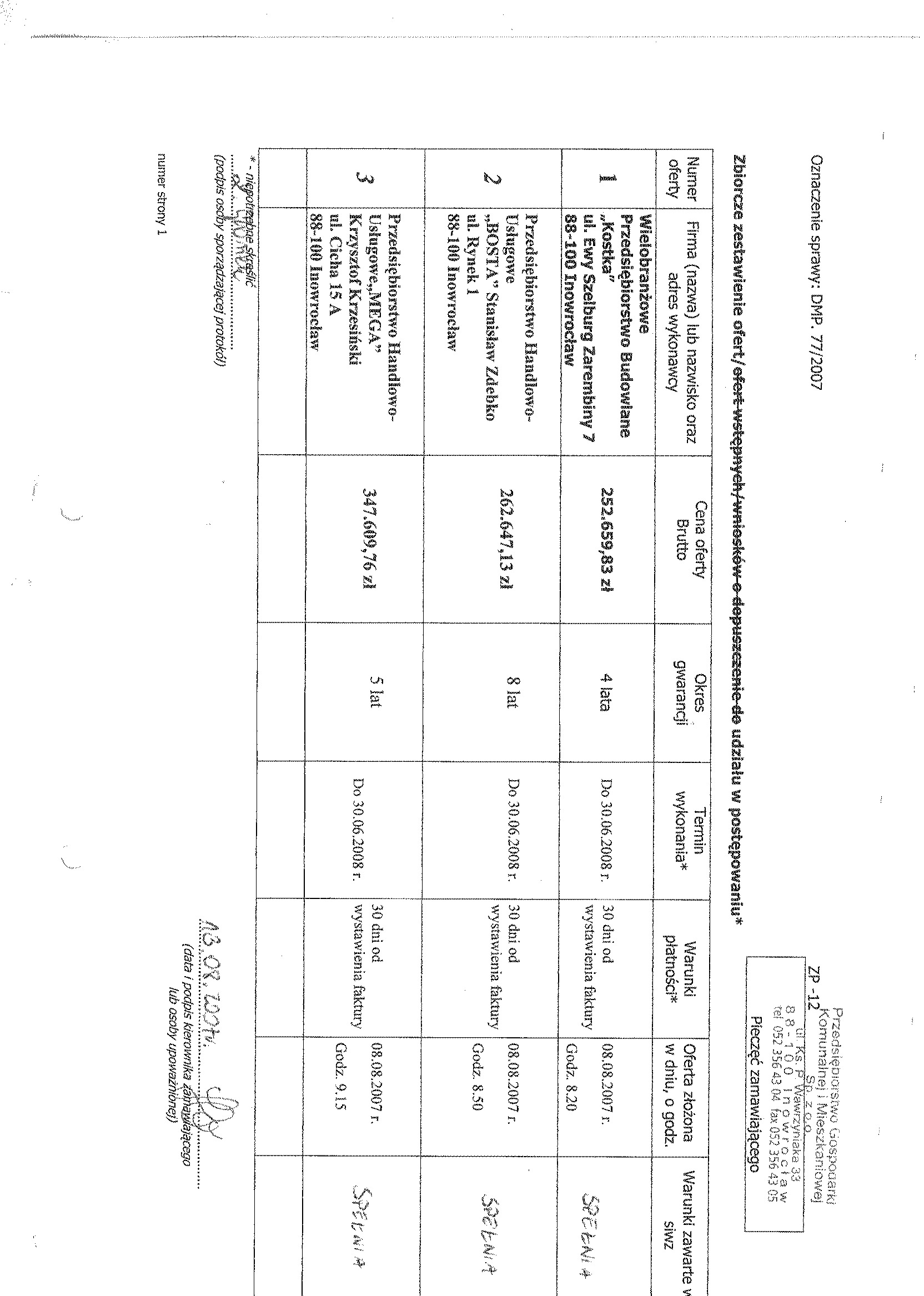 Numer sprawy: DMP. 77/2007聽聽聽聽聽聽聽聽聽聽聽聽聽聽聽聽聽聽聽聽聽聽聽聽聽聽聽聽聽聽聽聽聽聽聽聽聽聽聽聽聽聽Inowroc艂aw, dnia 17 lipca 2007 r.聽聽