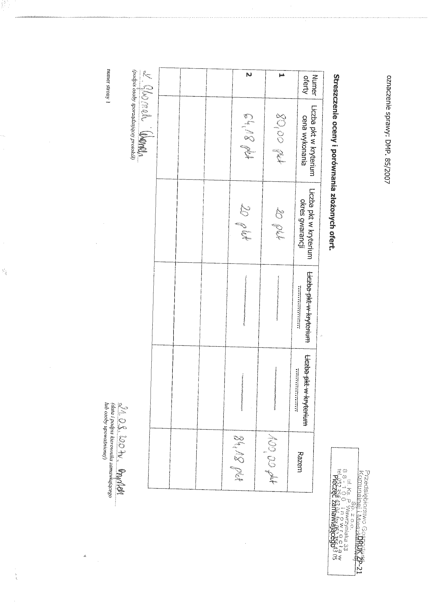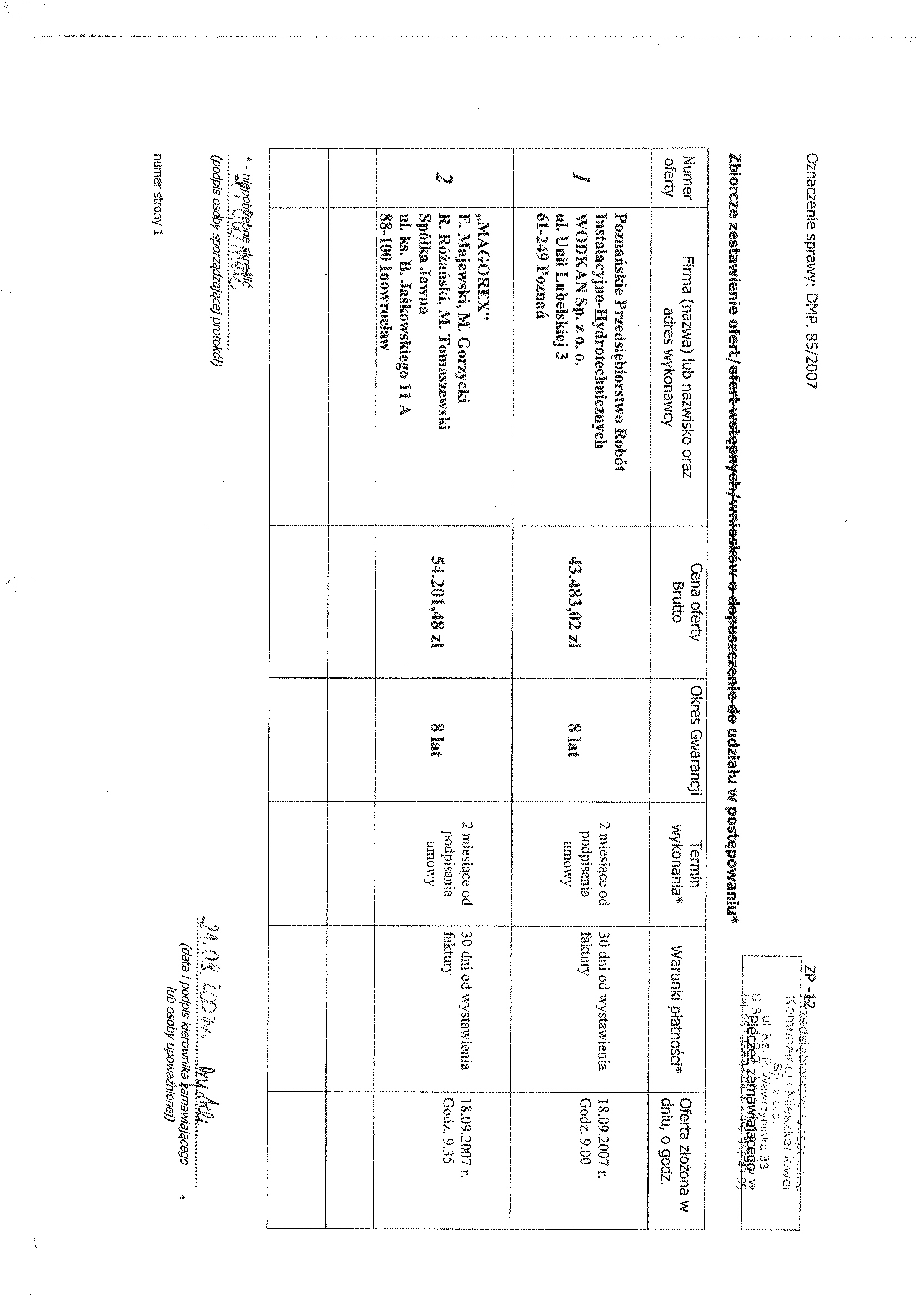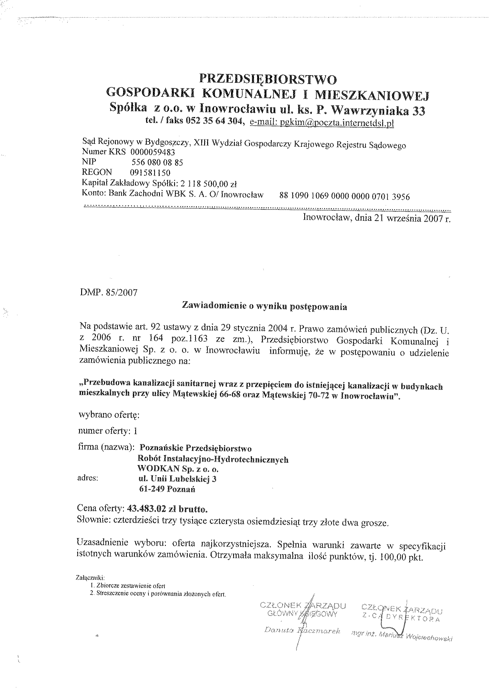 Numer sprawy: DMP. 85/2007聽聽聽聽聽聽聽聽聽聽聽聽聽聽聽聽聽聽聽聽聽聽聽聽聽聽聽聽聽聽聽聽聽聽聽聽聽Inowroc艂aw, dnia 28 sierpnia 2007 r.聽聽 聽聽聽OG艁OSZENIE O WSZCZ臉CIU POST臉POWANIA