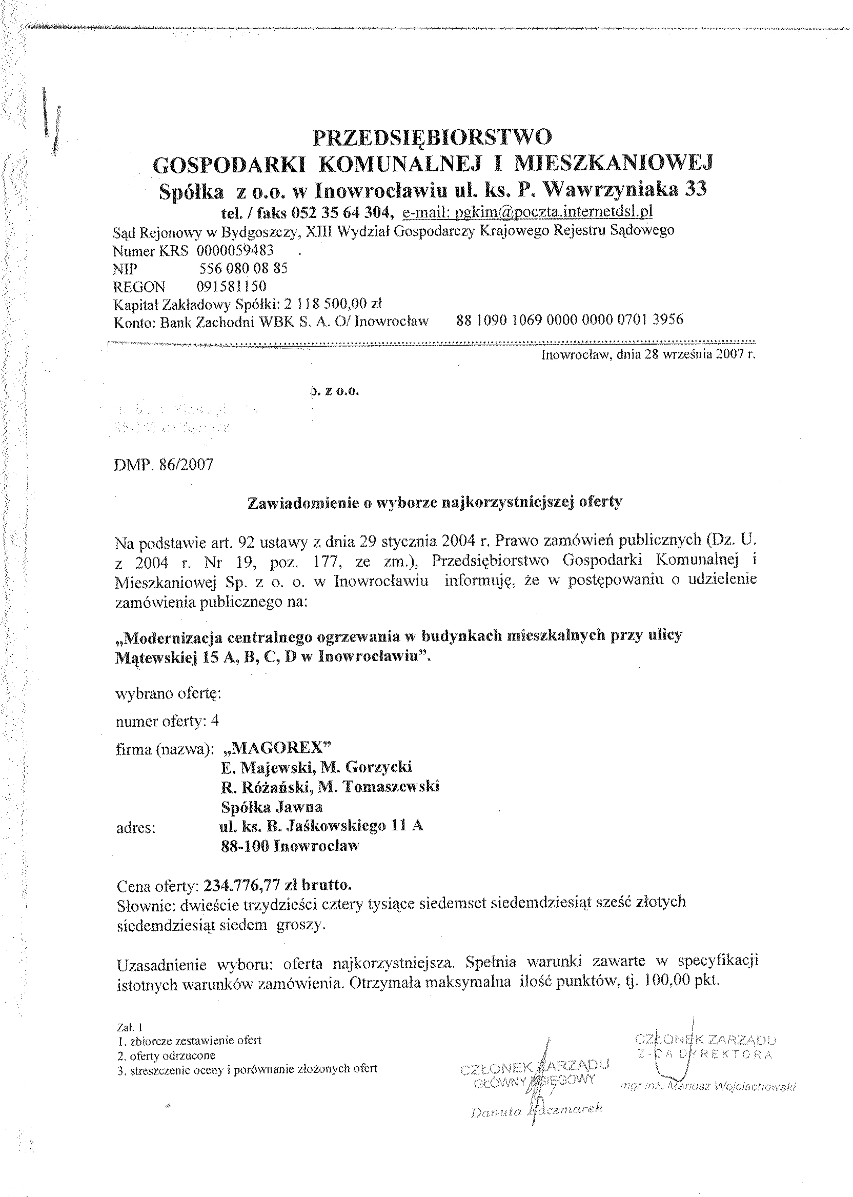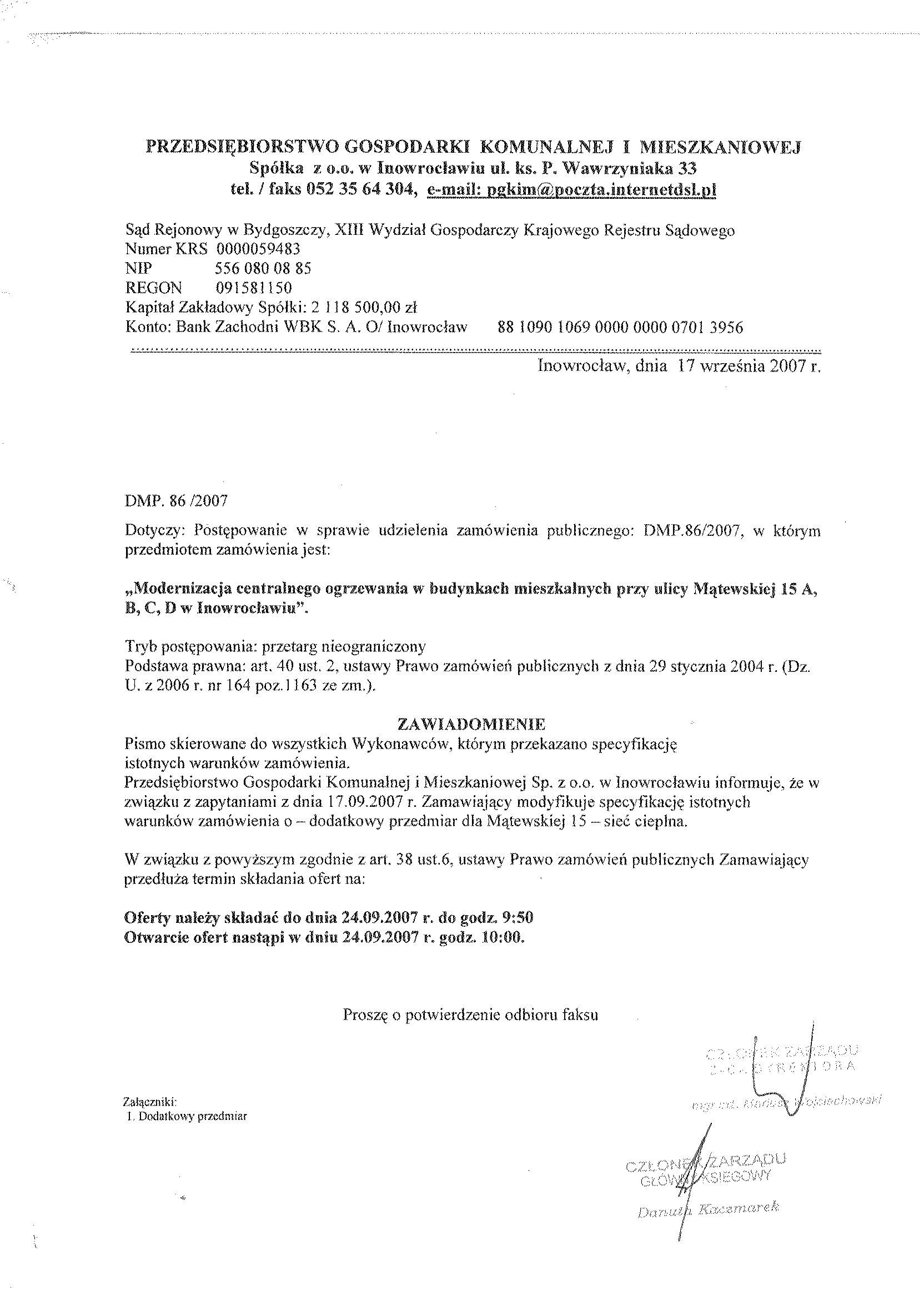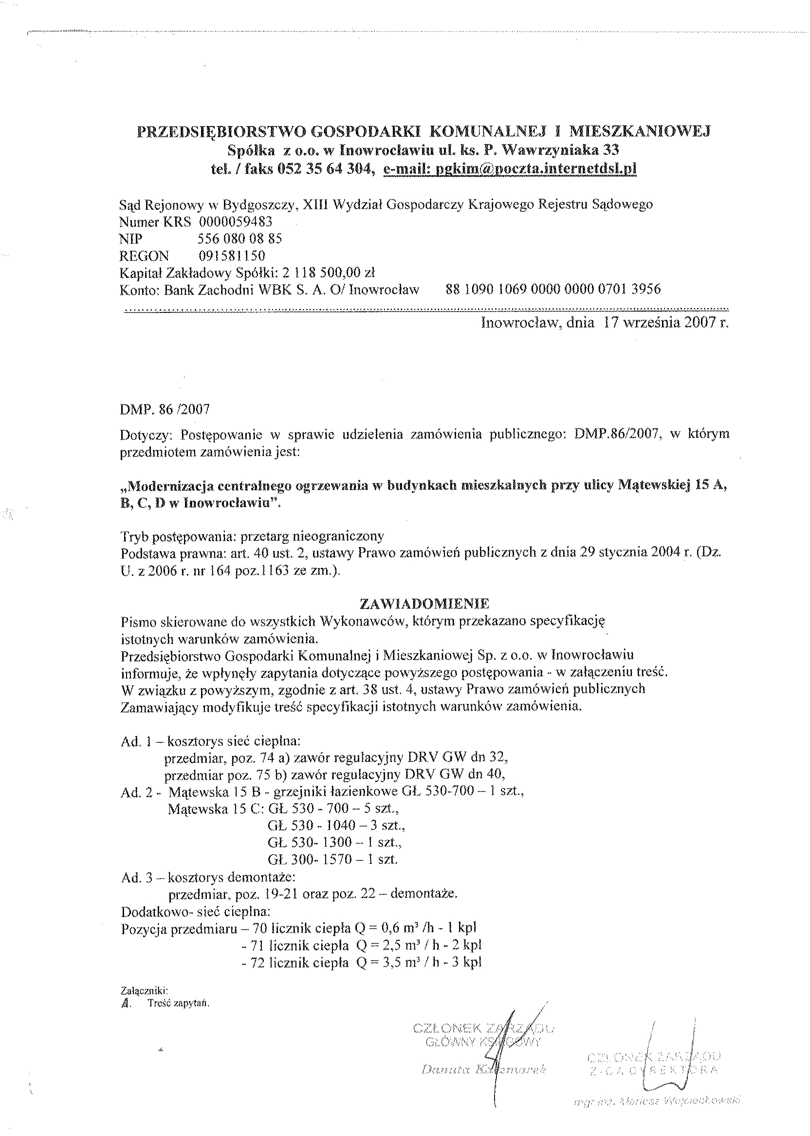 Numer sprawy: DMP. 86/2007聽聽聽聽聽聽聽聽聽聽聽聽聽聽聽聽聽聽聽聽聽聽聽聽聽聽聽聽聽聽聽聽聽聽聽聽聽Inowroc艂aw, dnia 30 sierpnia 2007 r.聽聽