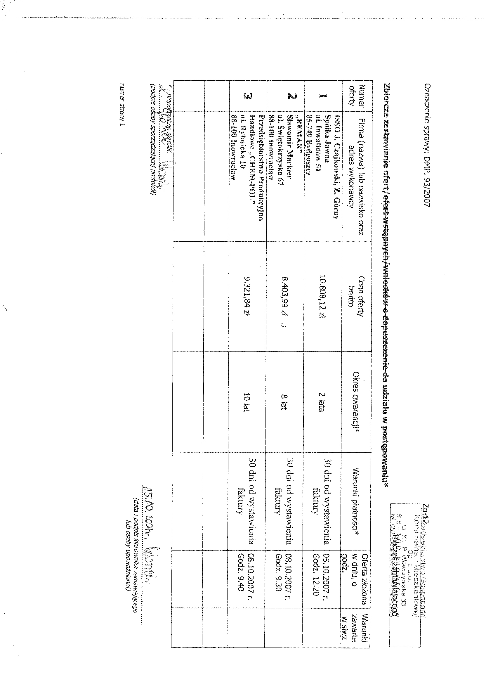 Numer sprawy: DMP. 93/2007聽聽聽聽聽聽聽聽聽聽聽聽聽聽聽聽聽聽聽聽聽聽聽聽聽聽聽聽聽聽聽 Inowroc艂aw, dnia 17 wrze艣nia 2007 r.聽聽 聽