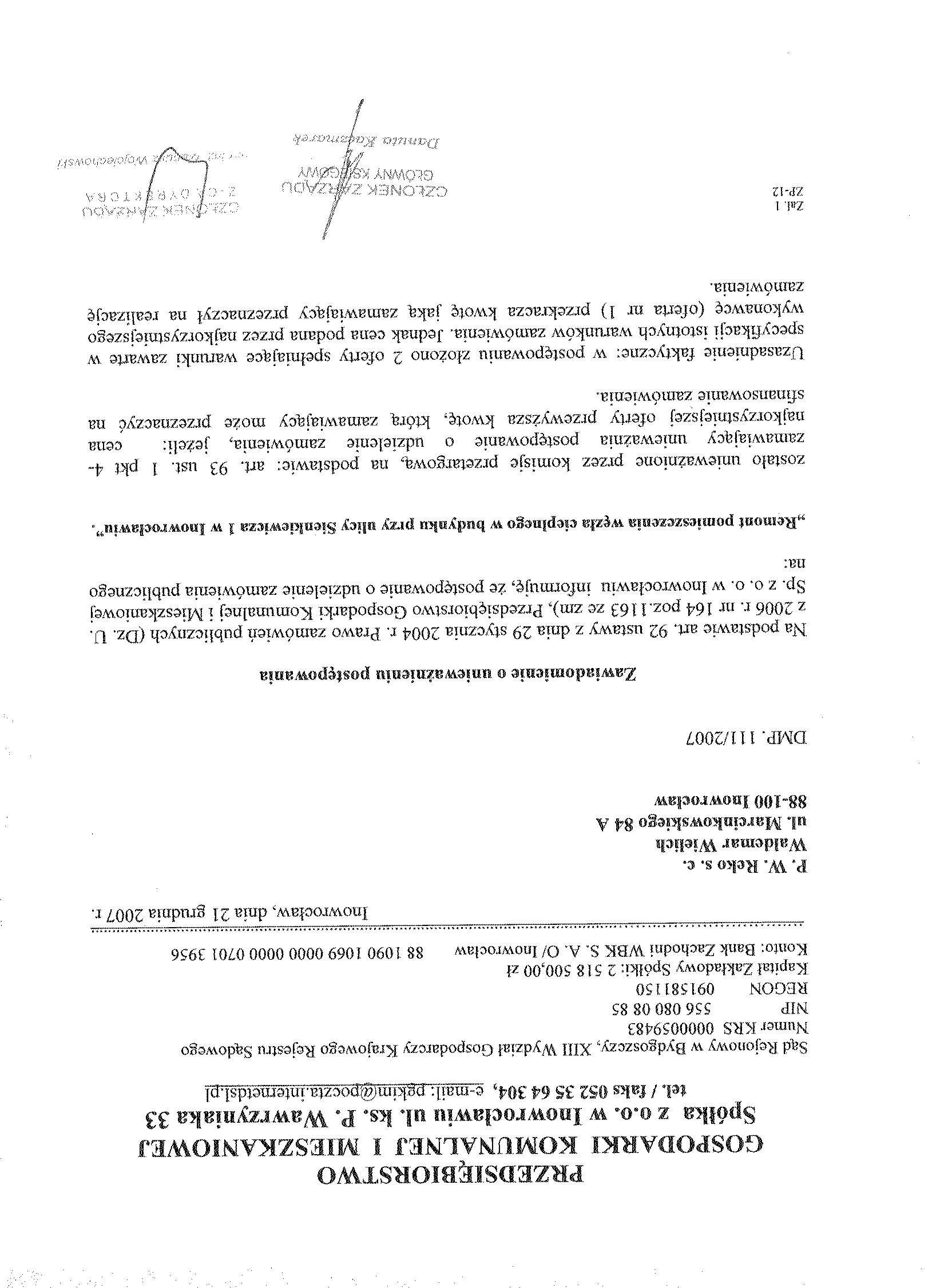 Numer sprawy: DMP. 111/2007聽聽聽聽聽聽聽聽聽聽聽聽聽聽聽聽聽聽聽聽聽聽聽聽聽聽聽聽聽Inowroc艂aw, dnia 26 listopada 2007 r.聽聽 聽