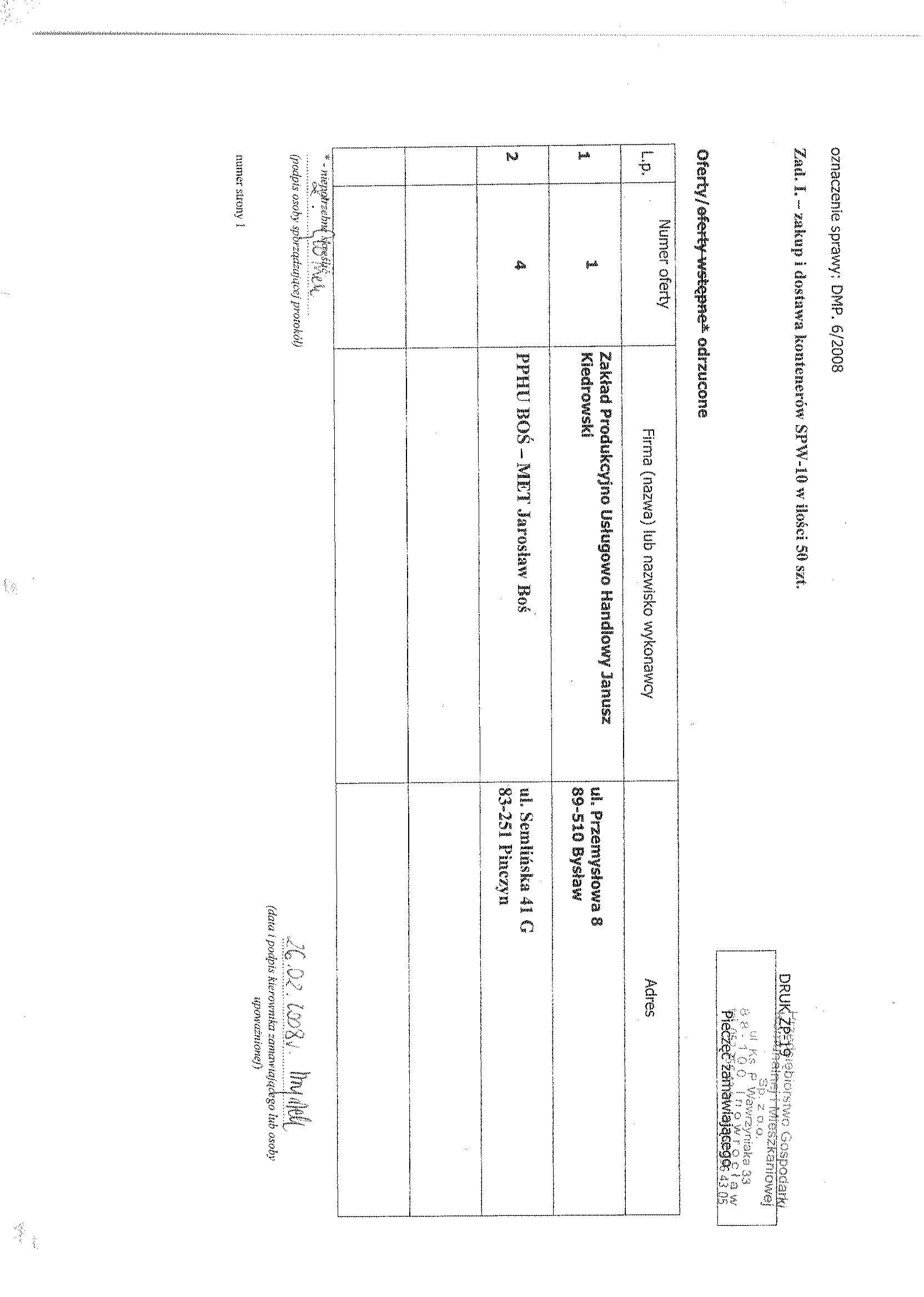 6. Najd艂u偶szy termin realizacji: sukcesywnie do ko艅ca 2008 r. 7. Miejsce dostawy: Przedsi臋biorstwo Gospodarki Komunalnej i Mieszkaniowej Sp. z o.o. w Inowroc艂awiu - 聽Zak艂ad Us艂ug Sanitarnych i Porz膮dkowych - ul. Toru艅ska 165 w Inowroc艂awiu. 聽
