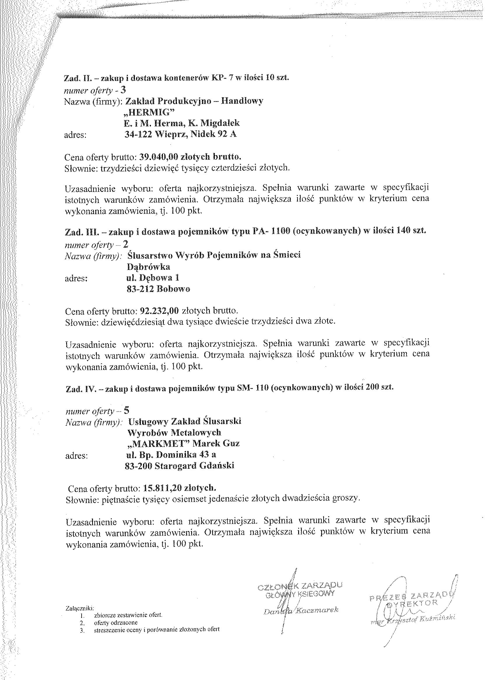 2. Okre艣lenie przedmiotu zam贸wienia: Tytu艂 post臋powania: "Zakup i dostawa kontener贸w oraz pojemnik贸w聽 do gromadzenia odpad贸w komunalnych typu SPW -10, KP- 7, PA-1100, SM - 110". 聽