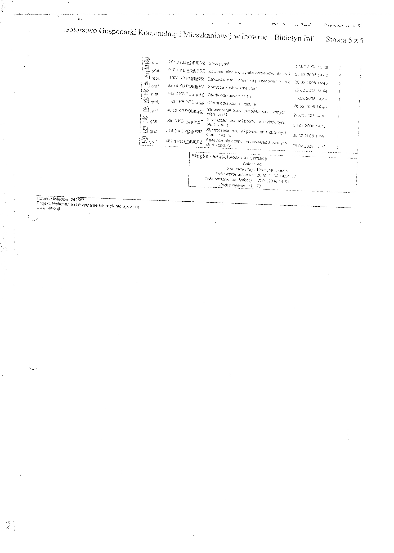 3. Numer og艂oszenia w BZP:聽 20724 - 2008; data zamieszczenia 30.01.2008 r. 4. Nie dopuszcza si臋 sk艂adania ofert wariantowych. 5. Zamawiaj膮cy nie przewiduje zawarcia umowy ramowej, jak r贸wnie偶 nie dokona wyboru oferty najkorzystniejszej z zastosowaniem aukcji elektronicznej. 聽