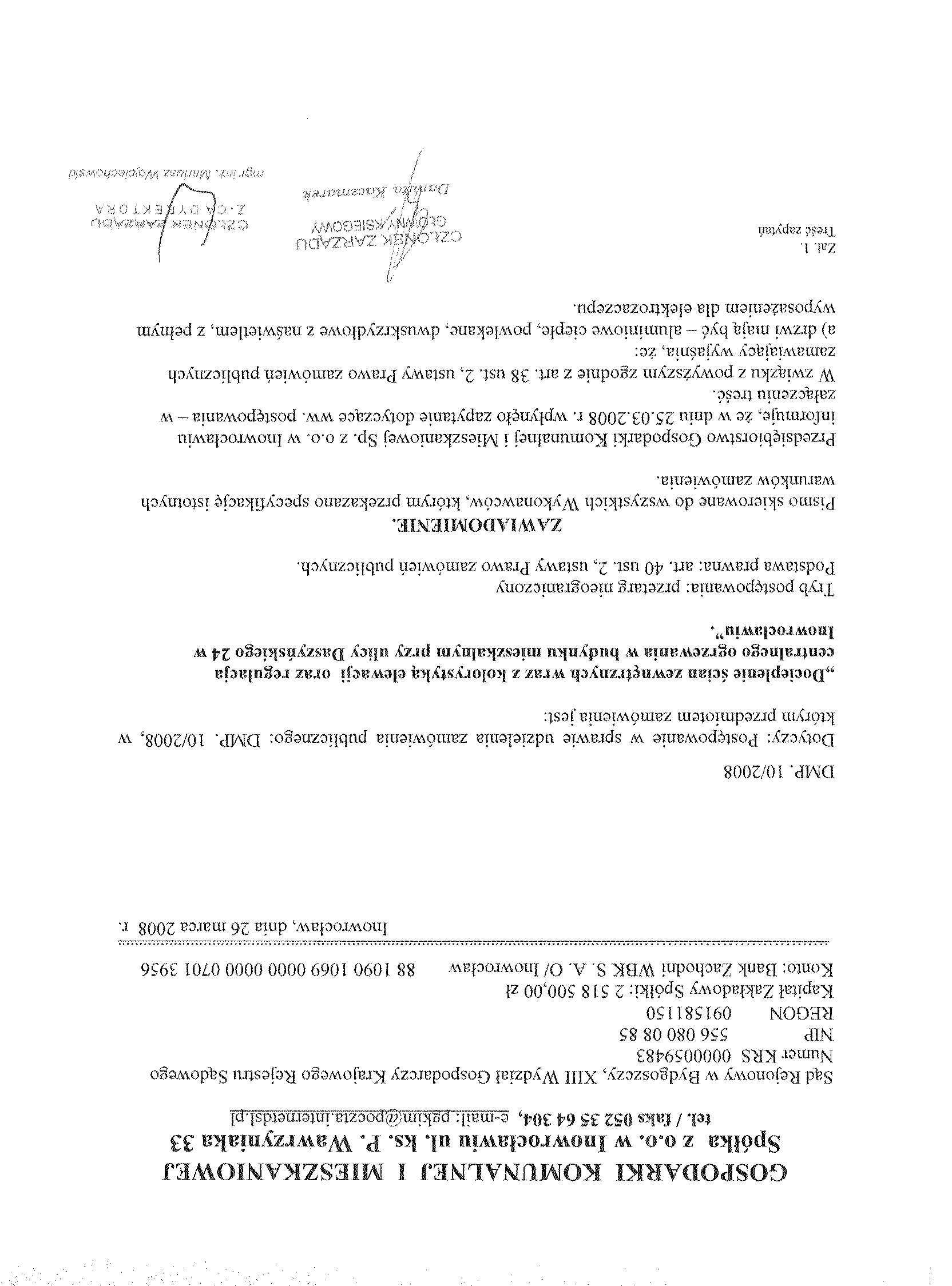 Numer sprawy: DMP. 10/2008聽聽聽聽聽聽聽聽聽聽聽聽聽聽聽聽聽聽聽聽聽聽聽聽聽聽聽聽聽聽聽聽聽聽聽Inowroc艂aw, dnia 10 marca 2008 r.聽聽 聽