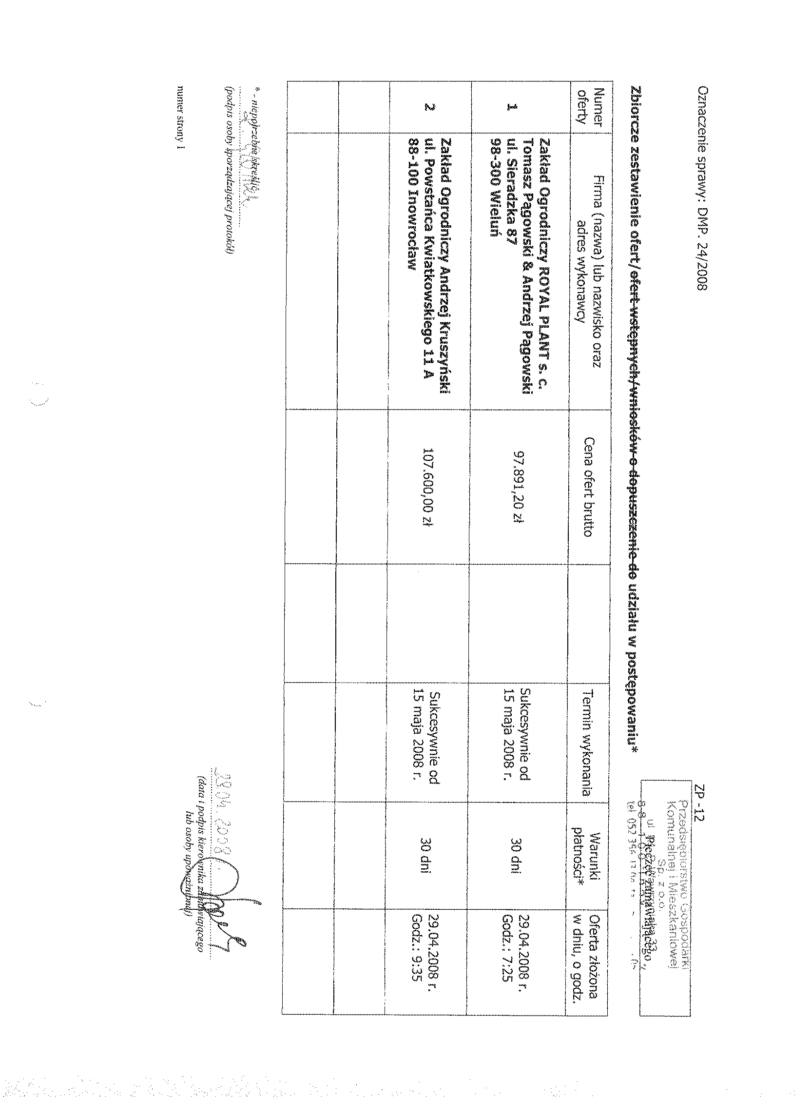 Numer sprawy: DMP. 24/2008聽聽聽聽聽聽聽聽聽聽聽聽聽聽聽聽聽聽聽聽聽聽聽聽聽聽聽聽聽聽聽聽聽聽Inowroc艂aw, dnia 18 kwietnia 2008 r.聽聽 聽