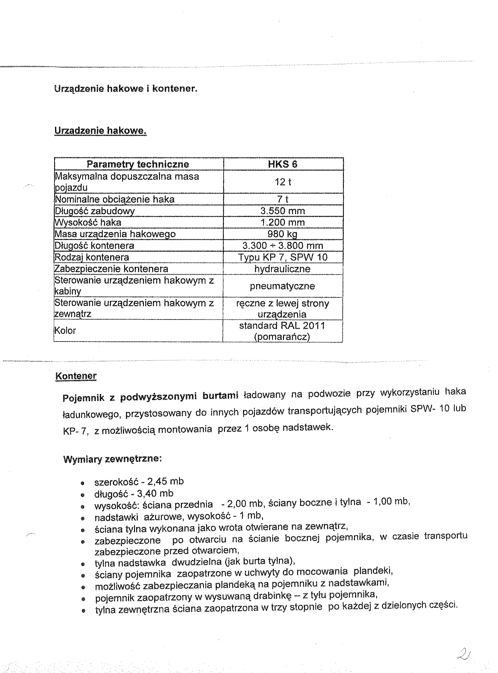 2. Przedmiot zam贸wienia: "Leasing聽 samochodu ci臋偶arowego z zabudow膮 hakow膮 przeznaczonego聽 do transportu kontener贸w typu KP-7 oraz聽 SPW -10 |