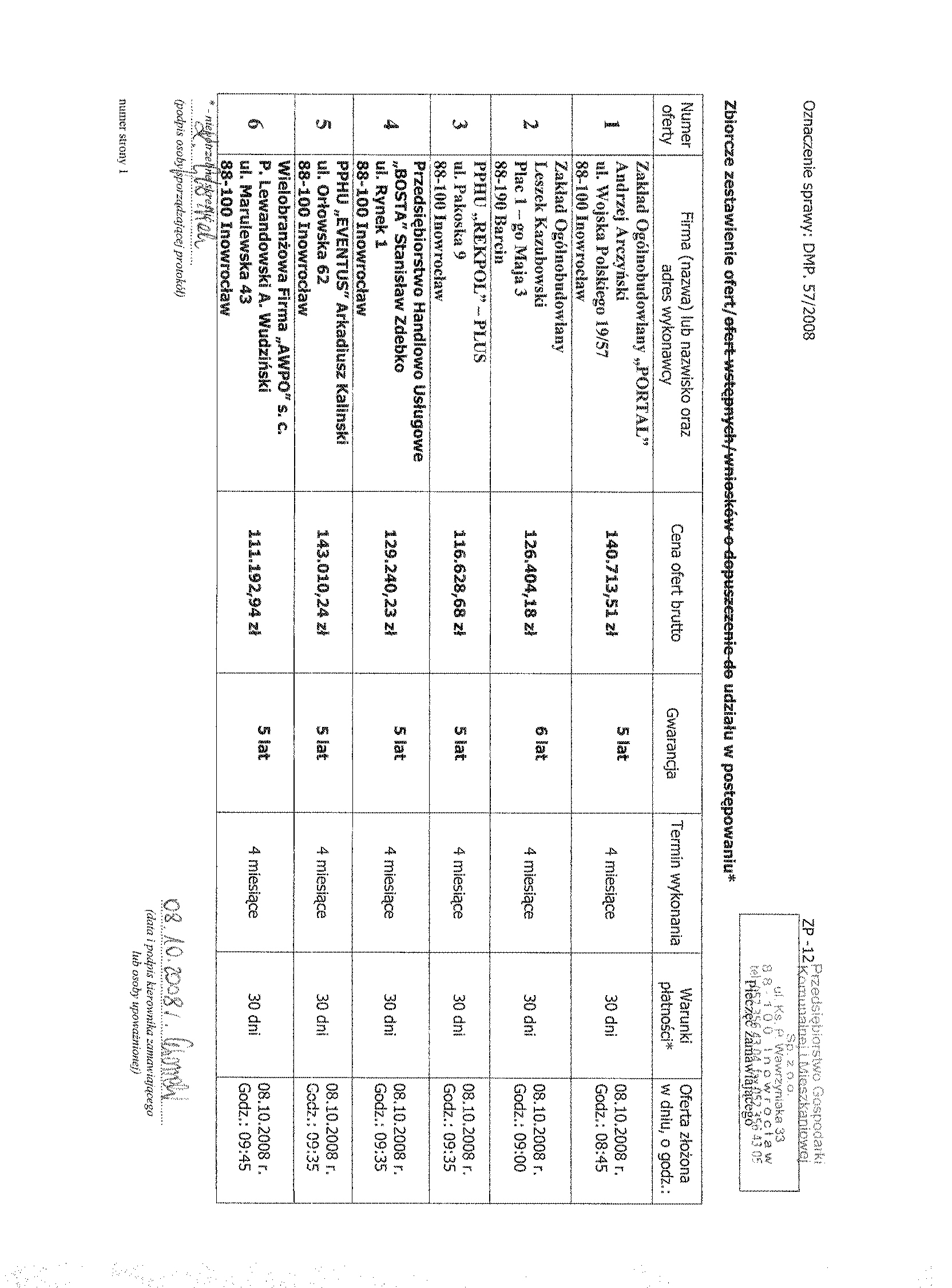 Numer sprawy: DMP. 57/2008聽聽聽聽聽聽聽聽聽聽聽聽聽聽聽聽聽聽聽聽聽聽聽聽聽聽聽聽聽聽聽聽聽聽聽Inowroc艂aw, dnia 16 wrze艣nia 2008 r.聽聽 聽