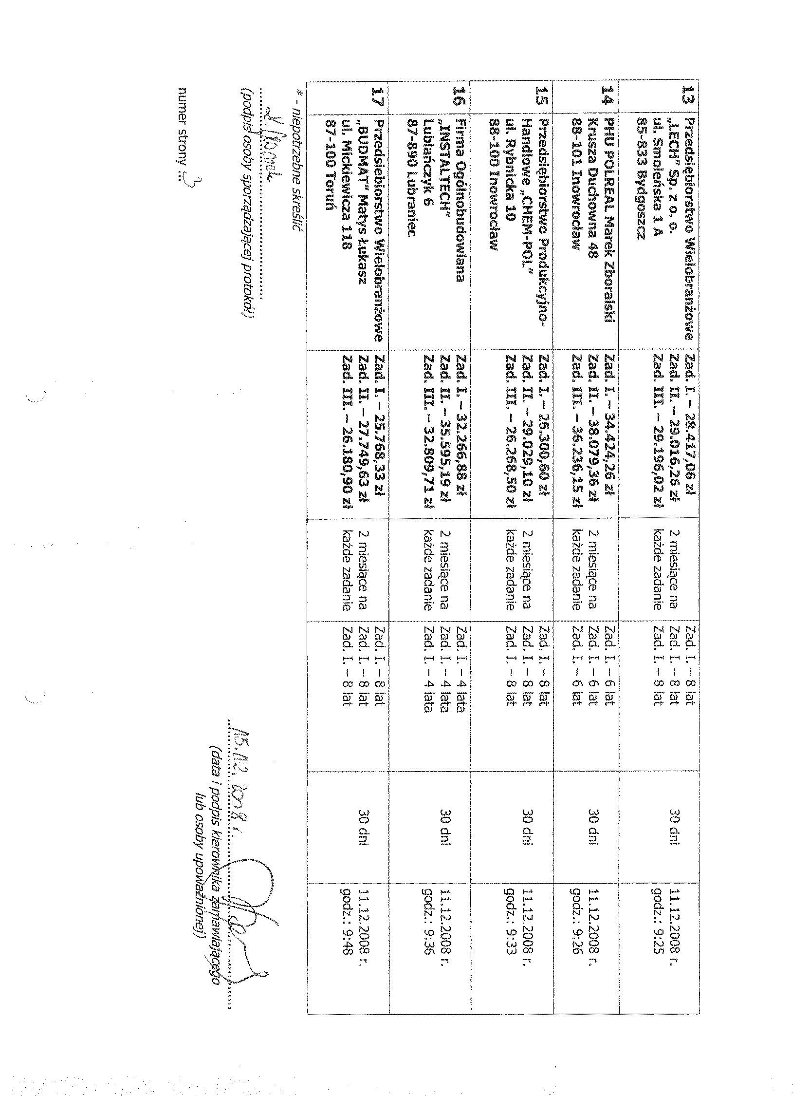 13.Miejsce i termin otwarcia ofert: Przedsi臋biorstwo Gospodarki Komunalnej i Mieszkaniowej Sp. z o.o., ul. ks. Piotra Wawrzyniaka 33, 88-100 Inowroc艂aw dnia 11 grudnia 2008 r. o godz. 10:00 (salka konferencyjna).