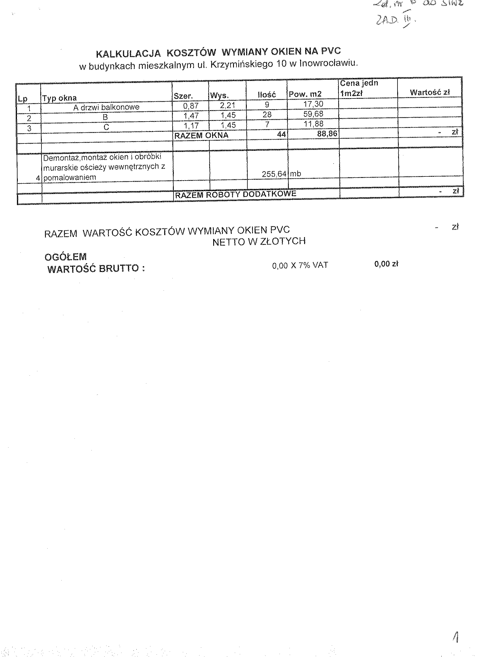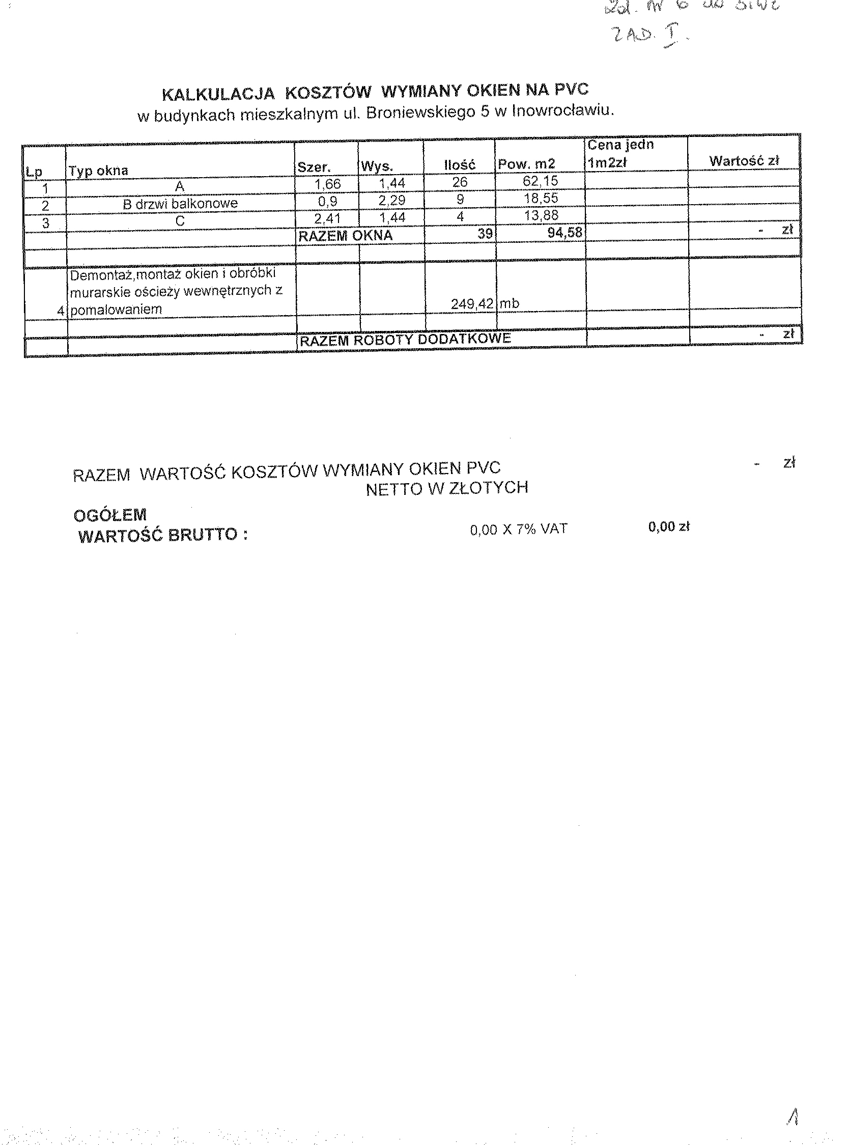 2. Nazwa nadana zam贸wieniu: "Wymiana stolarki okiennej drewnianej na PCV w mieszkaniach komunalnych".