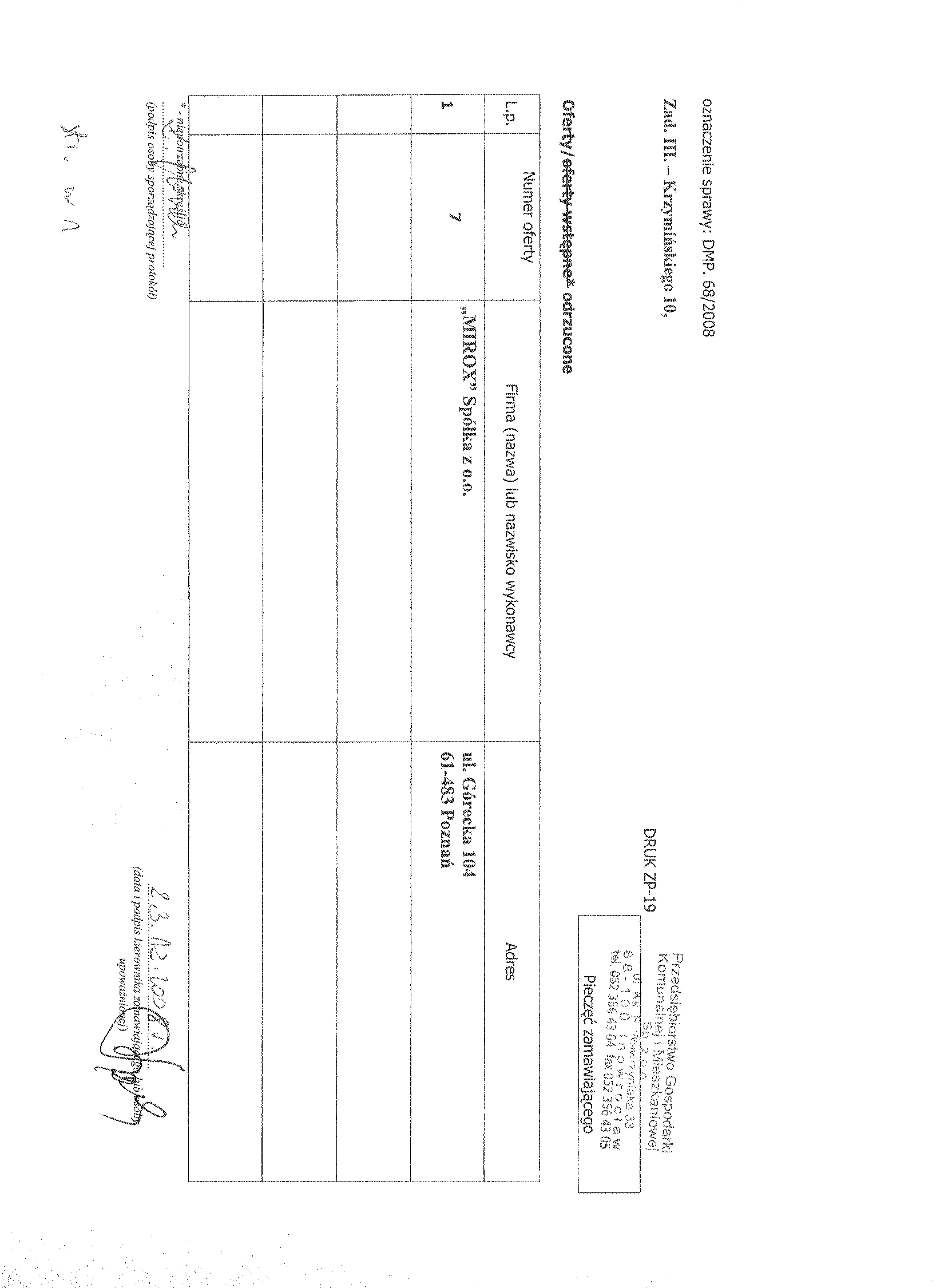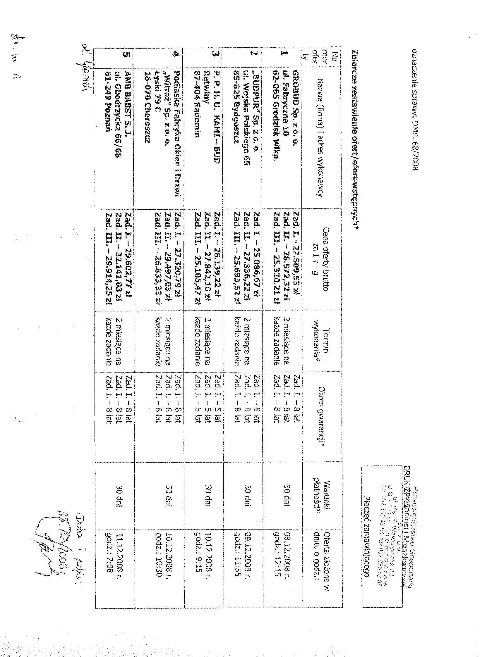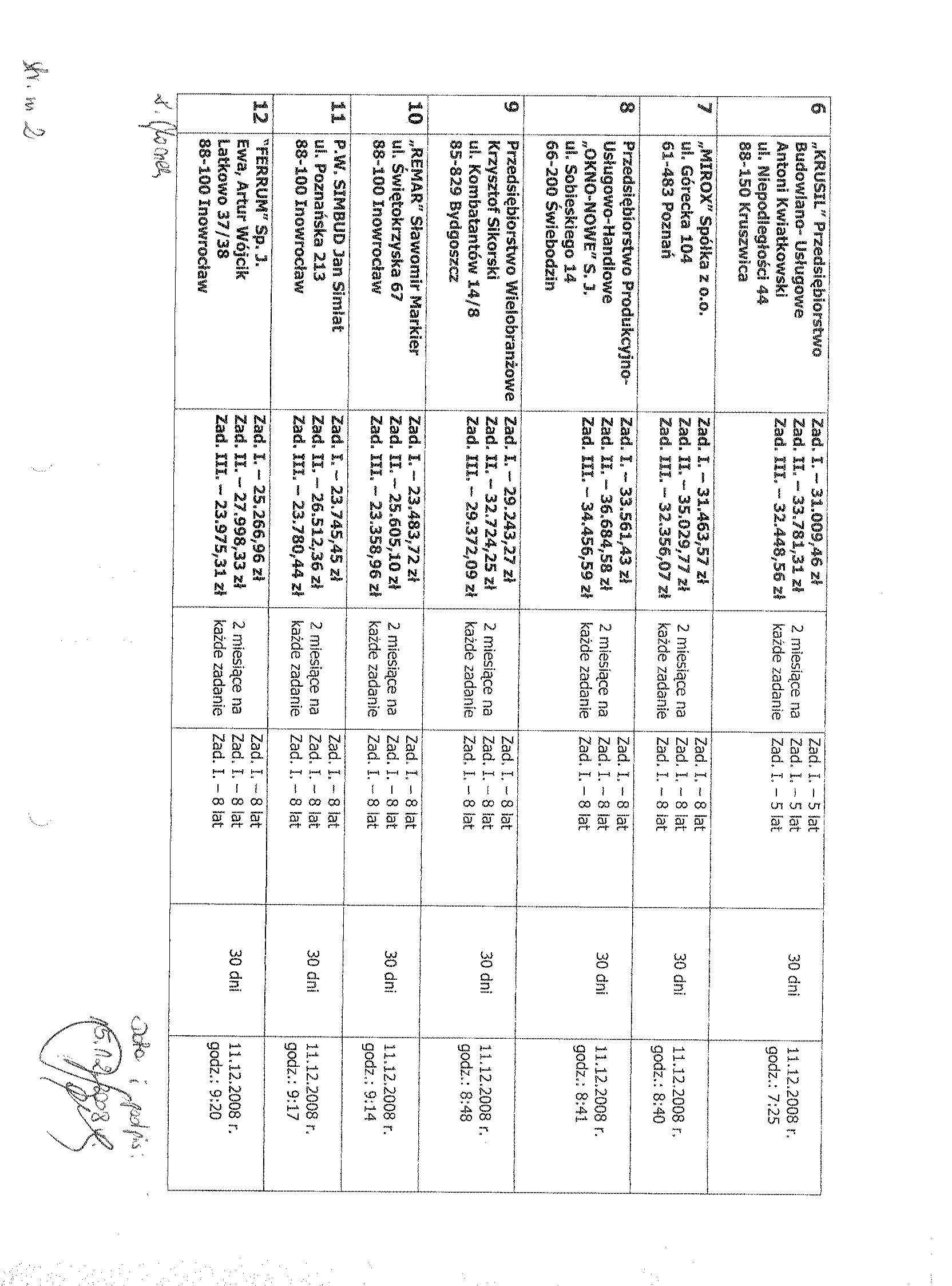 10. Miejsce i termin sk艂adania ofert: sekretariat Przedsi臋biorstwa Gospodarki Komunalnej i Mieszkaniowej Sp. z o.o., ul. ks. Piotra Wawrzyniaka 33, 88-100 Inowroc艂aw, do dnia 11 grudnia 2008 r. do godz. 9:50.