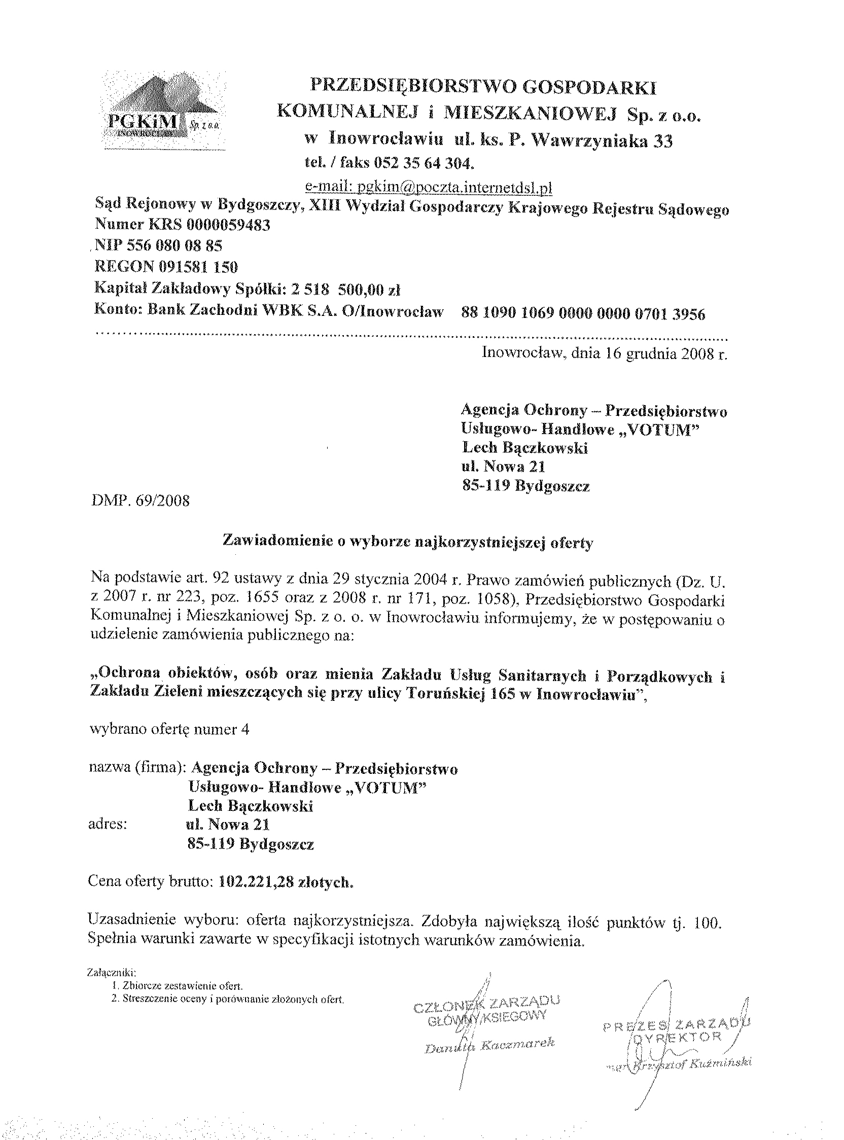 Numer sprawy: DMP. 69/2008聽聽聽聽聽聽聽聽聽聽聽聽聽聽聽聽聽聽聽聽聽聽聽聽聽聽聽聽聽聽聽聽聽Inowroc艂aw, dnia 25 listopada 2008 r.聽聽 聽
