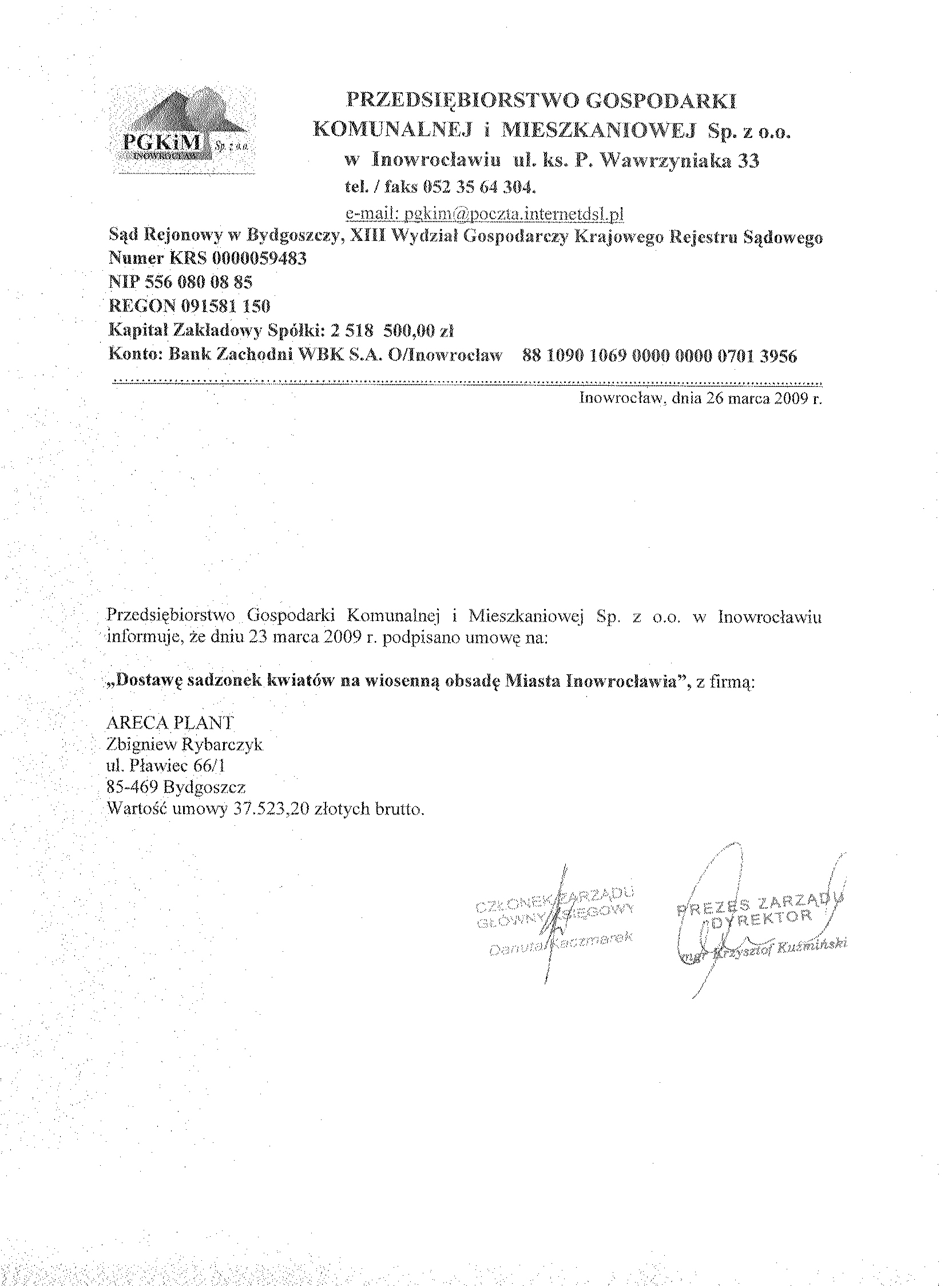KOMUNALNEJ i MIESZKANIOWEJ Sp. z o.o.      w Inowrocławiu ul. ks. P. Wawrzyniaka 33                 tel. / faks 052 35 64 304                e-mail: pgkim@poczta.internetdsl.pl