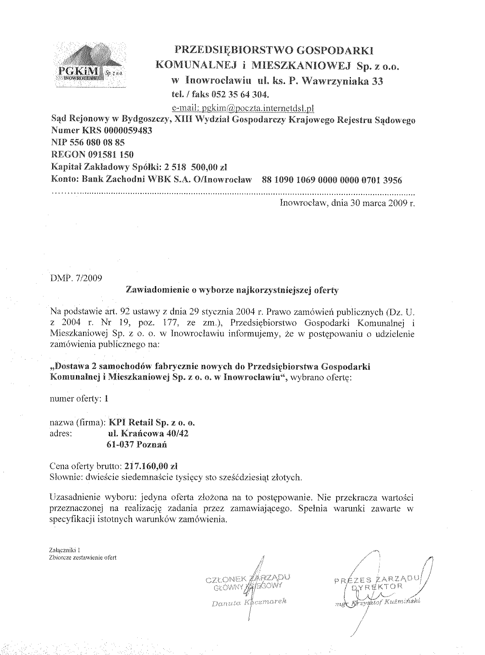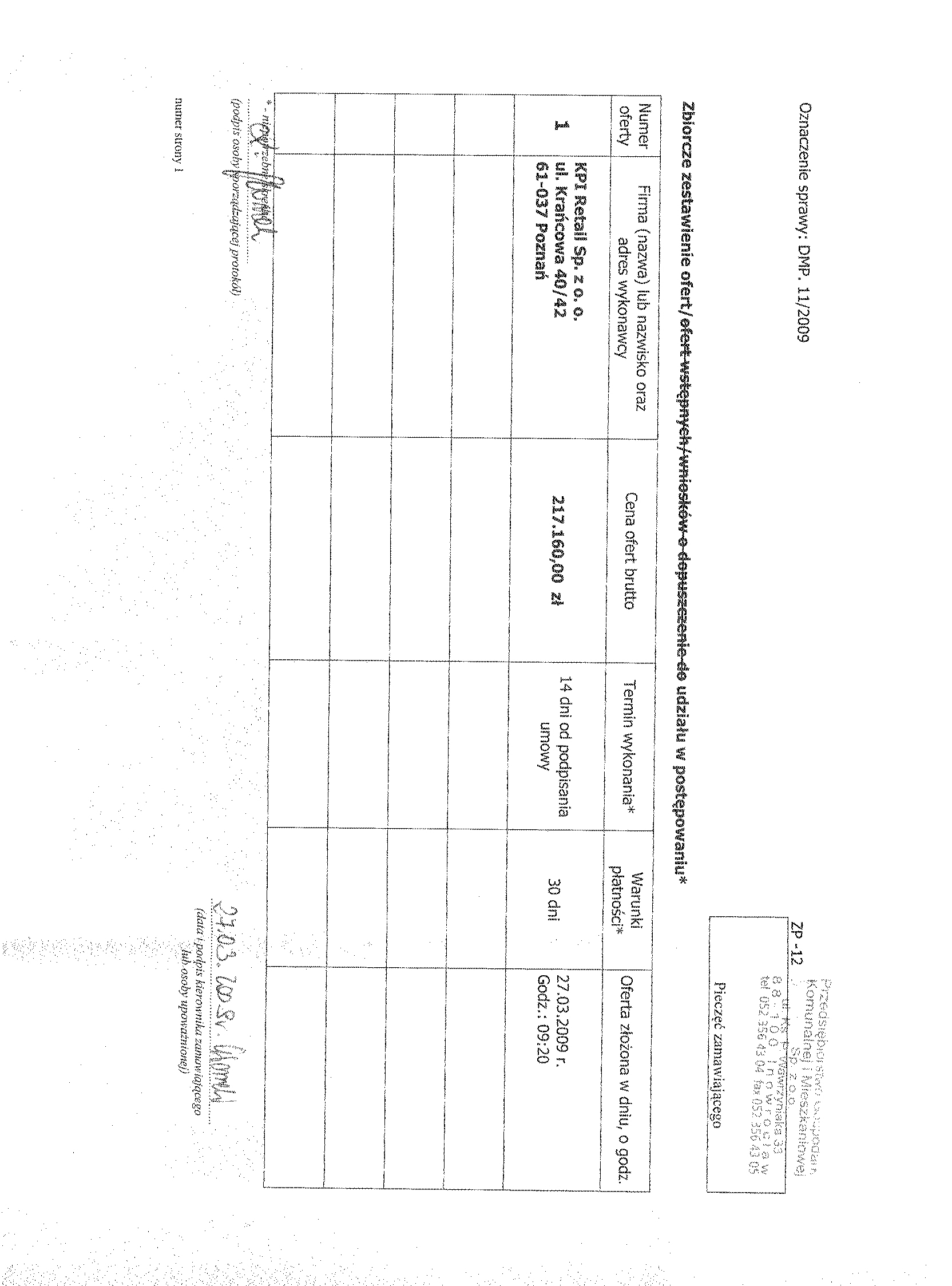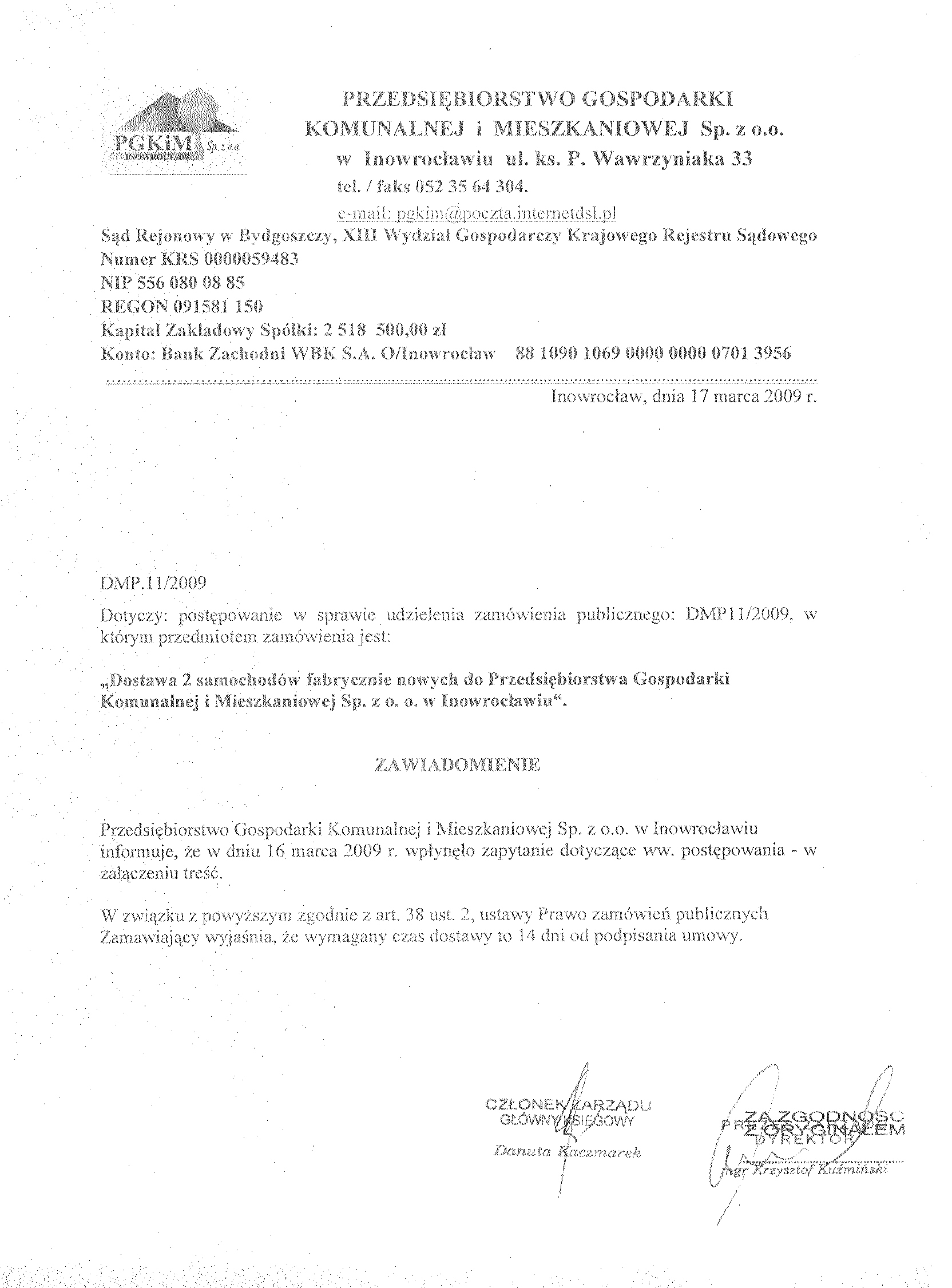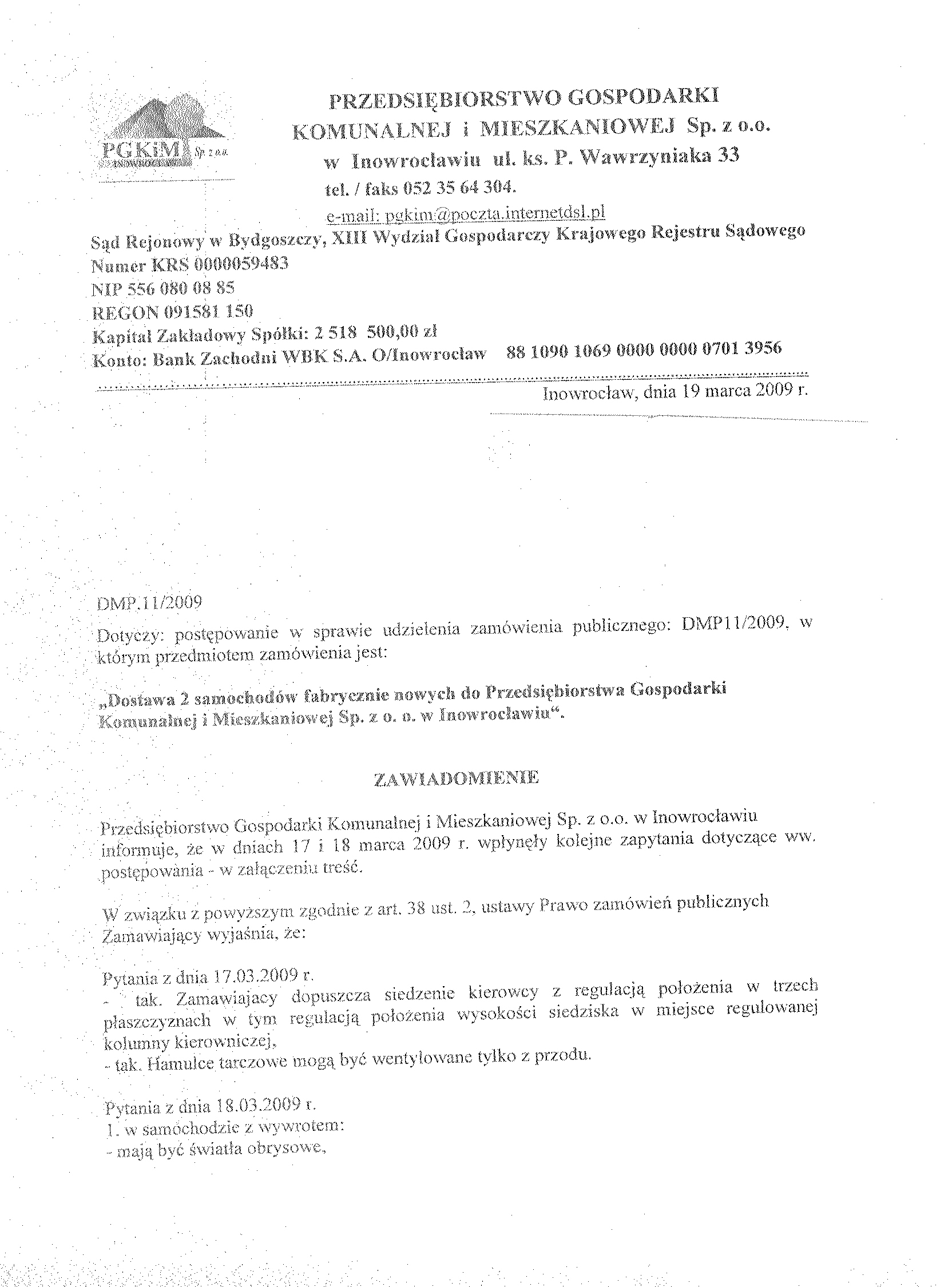 Numer sprawy: DMP.11/2009聽聽聽聽聽聽聽聽聽聽聽聽Inowroc艂aw, dnia 13 marca 2009 r.聽聽 聽