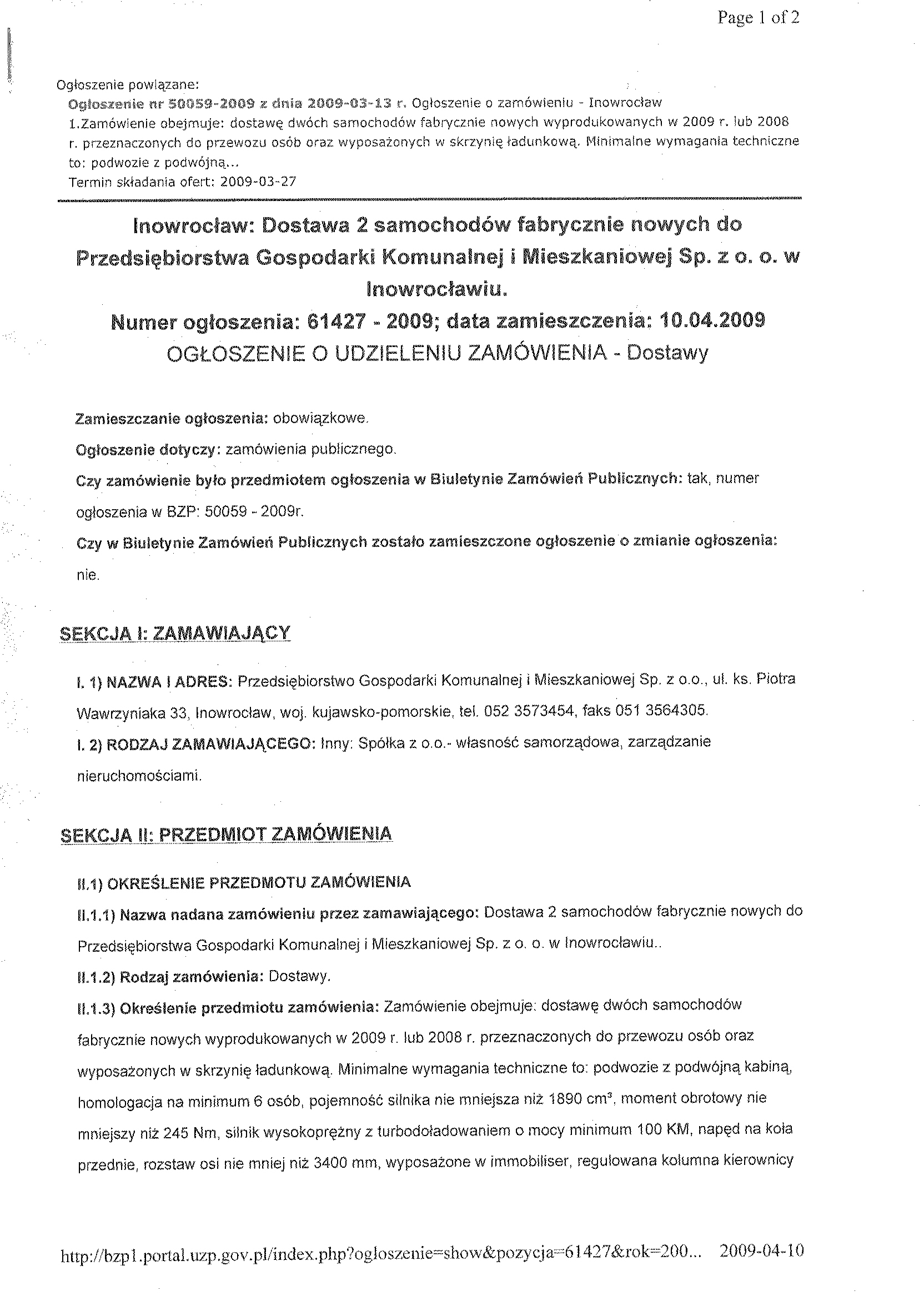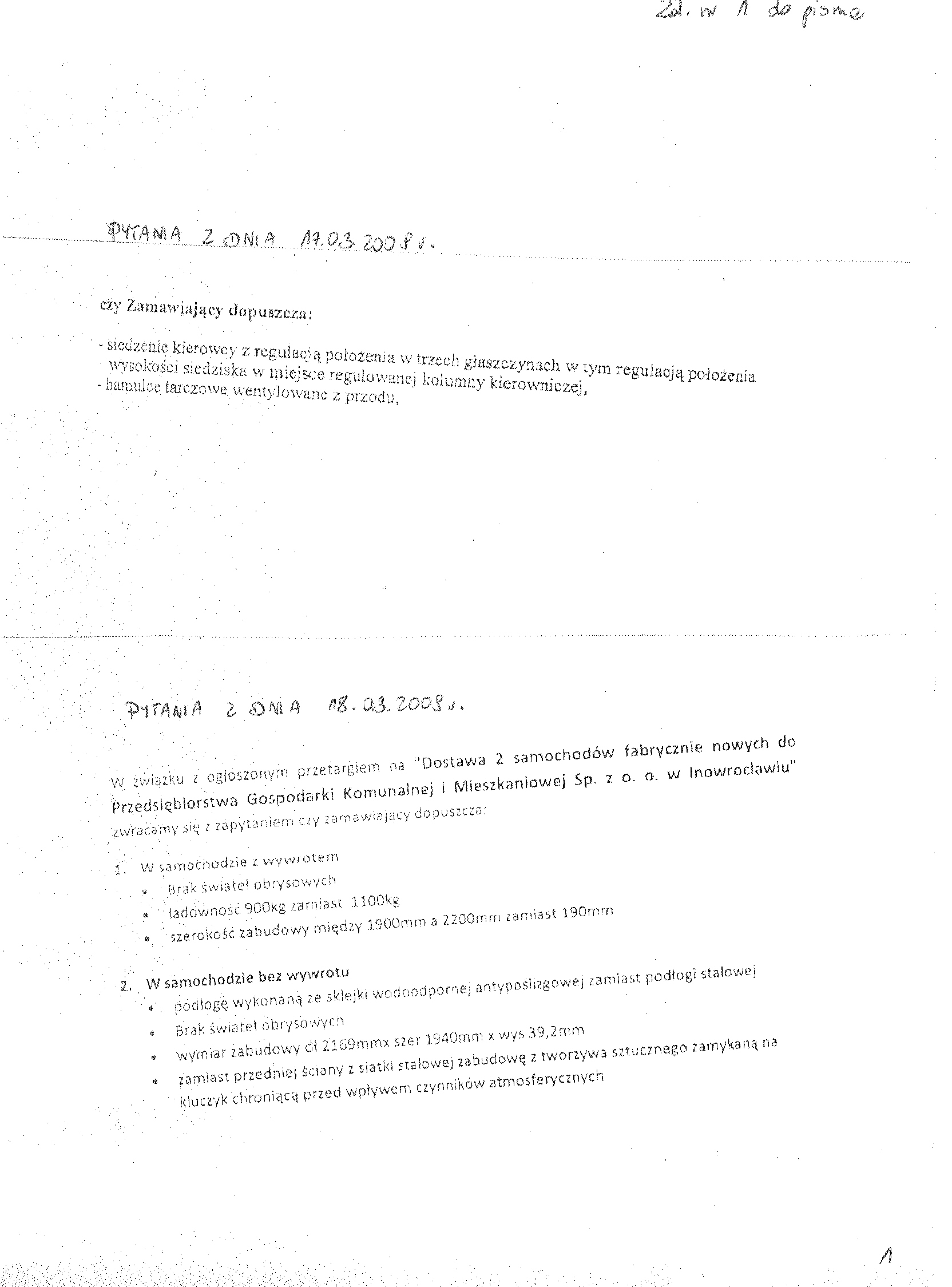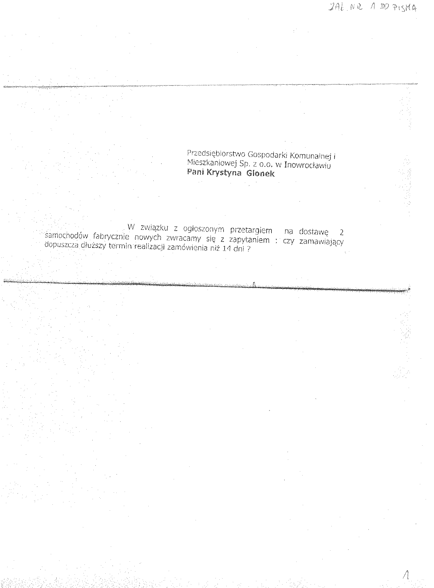 Tytu艂 post臋powania: "Dostawa 2 samochod贸w fabrycznie nowych do Przedsi臋biorstwa Gospodarki Komunalnej i Mieszkaniowej Sp. z o. o. w Inowroc艂awiu |