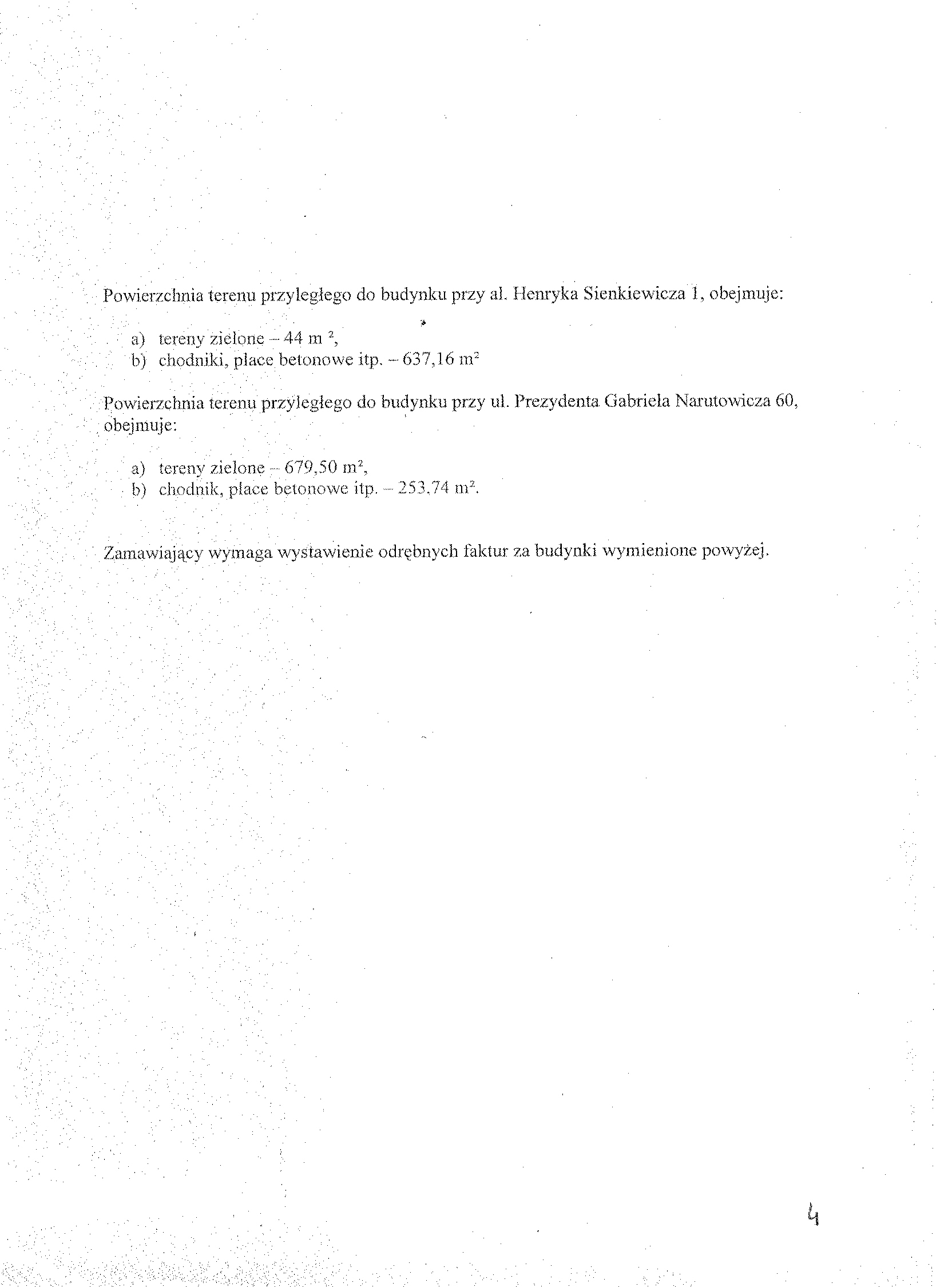Rodzaj zam贸wienia: us艂uga 2.1. Przedmiotem zam贸wienia jest: sprz膮tanie powierzchni wewn臋trznych budynk贸w: tj. klatek schodowych, piwnic, strych贸w - z pomieszcze艅 i urz膮dze艅 budynk贸w wielolokalowych przeznaczonych do wsp贸lnego u偶ytku. Sprz膮tanie powierzchni zewn臋trznych: tj. chodnik贸w, wjazd贸w, podw贸rek, piel臋gnacja ziele艅c贸w na terenie nieruchomo艣ci, sprz膮tanie podjazd贸w dla os贸b niepe艂nosprawnych, sprz膮tanie miejsc wok贸艂 urz膮dze艅 do zbierania odpad贸w lub os艂on 艣mietnikowych. Sprz膮tanie biur.聽Sprz膮tanie (wygrabienie) wiosenne teren贸w z li艣ci, a tak偶e w okresie jesiennym usuwanie na bie偶膮co opad艂ych li艣ci. Od艣nie偶anie w okresie zimowym: chodnik贸w wzd艂u偶 budynk贸w, wjazd贸w, dojazd贸w i doj艣膰 do 艣mietnik贸w, podjazd贸w dla os贸b niepe艂nosprawnych, na posesjach i nieruchomo艣ciach, usuwanie nawis贸w (sopli) z okap贸w, rynien i innych cz臋艣ci elewacji budynku.聽Powierzchnie obj臋te zam贸wieniem to ok. 150.000 m 聽 聽 聽 聽 聽 |