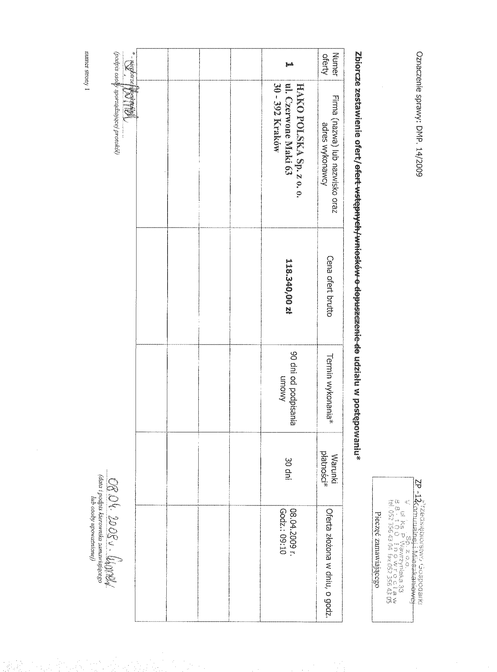 Numer sprawy: DMP.14/2009聽聽聽聽聽聽聽聽聽聽聽聽Inowroc艂aw, dnia 26 marca 2009 r.聽聽 聽