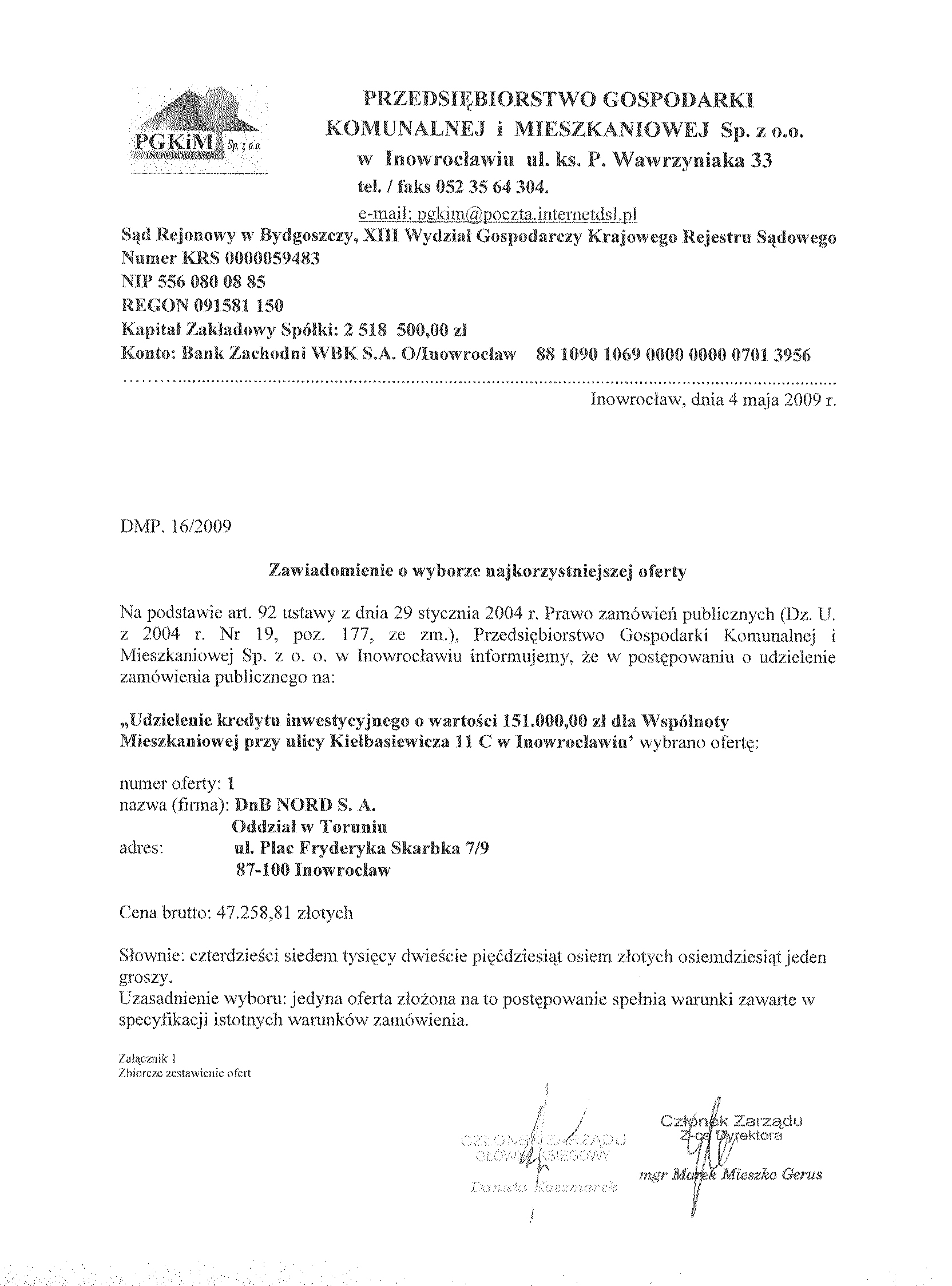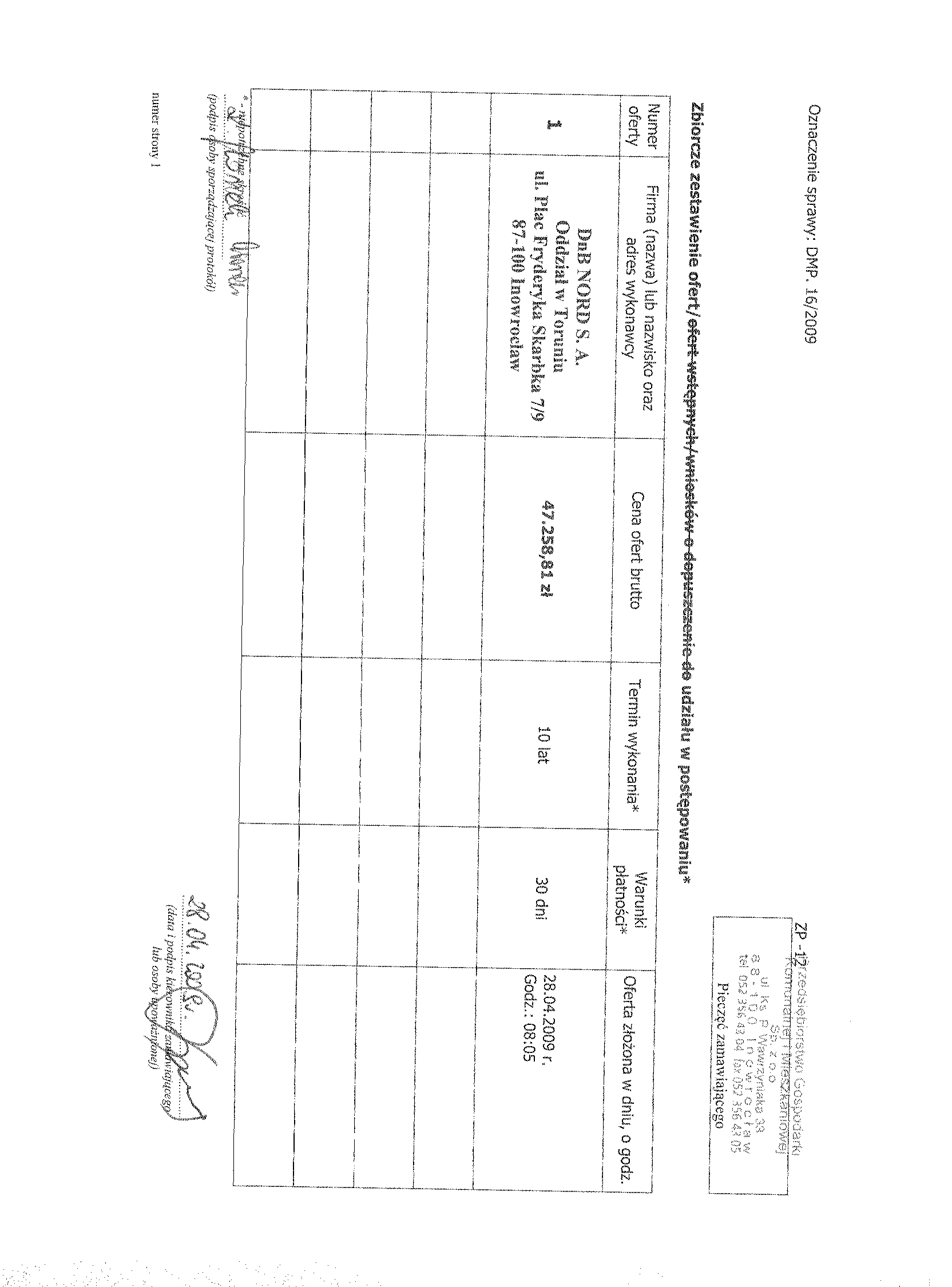 Znak sprawy: DMP. 16/2009聽聽聽聽聽聽聽聽聽聽聽聽聽聽聽聽聽聽聽聽聽聽聽聽聽聽聽聽聽聽聽聽聽聽聽聽聽聽Inowroc艂aw, dnia 9 kwietnia 2009 r.聽聽聽 聽 Og艂oszenie o wszcz臋ciu post臋powania