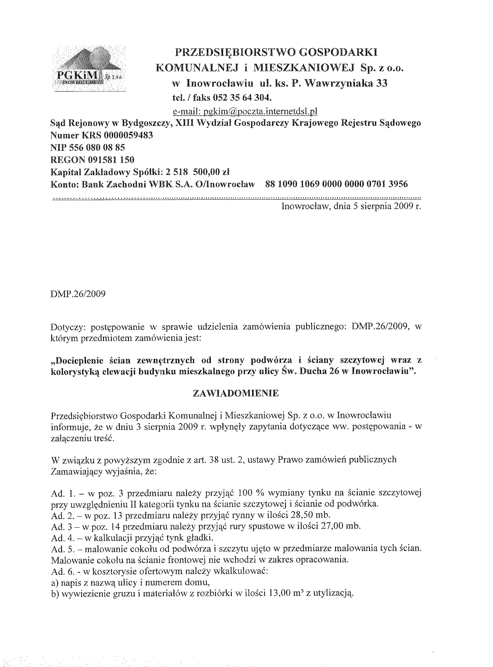 Numer sprawy: DMP. 26/2009聽聽聽聽聽聽聽聽聽聽聽聽聽聽聽聽聽聽聽聽聽聽聽聽聽聽聽聽聽聽聽聽聽聽聽聽聽聽聽聽聽聽Inowroc艂aw, dnia 22 lipca 2009 r.聽聽 聽