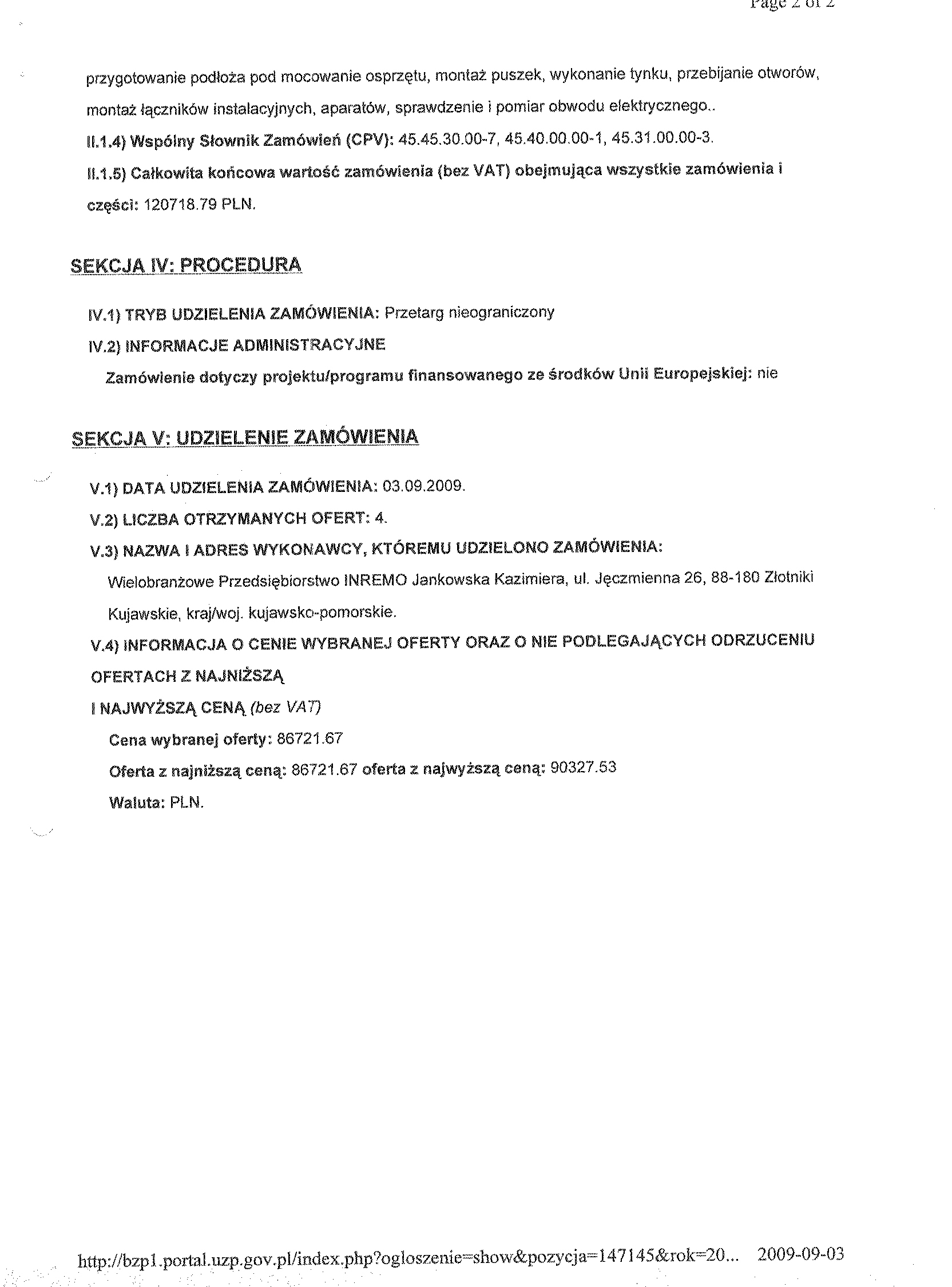 Numer og艂oszenia w BZP: 117159 - 2009; data zamieszczenia 22/07//2009 r. 聽