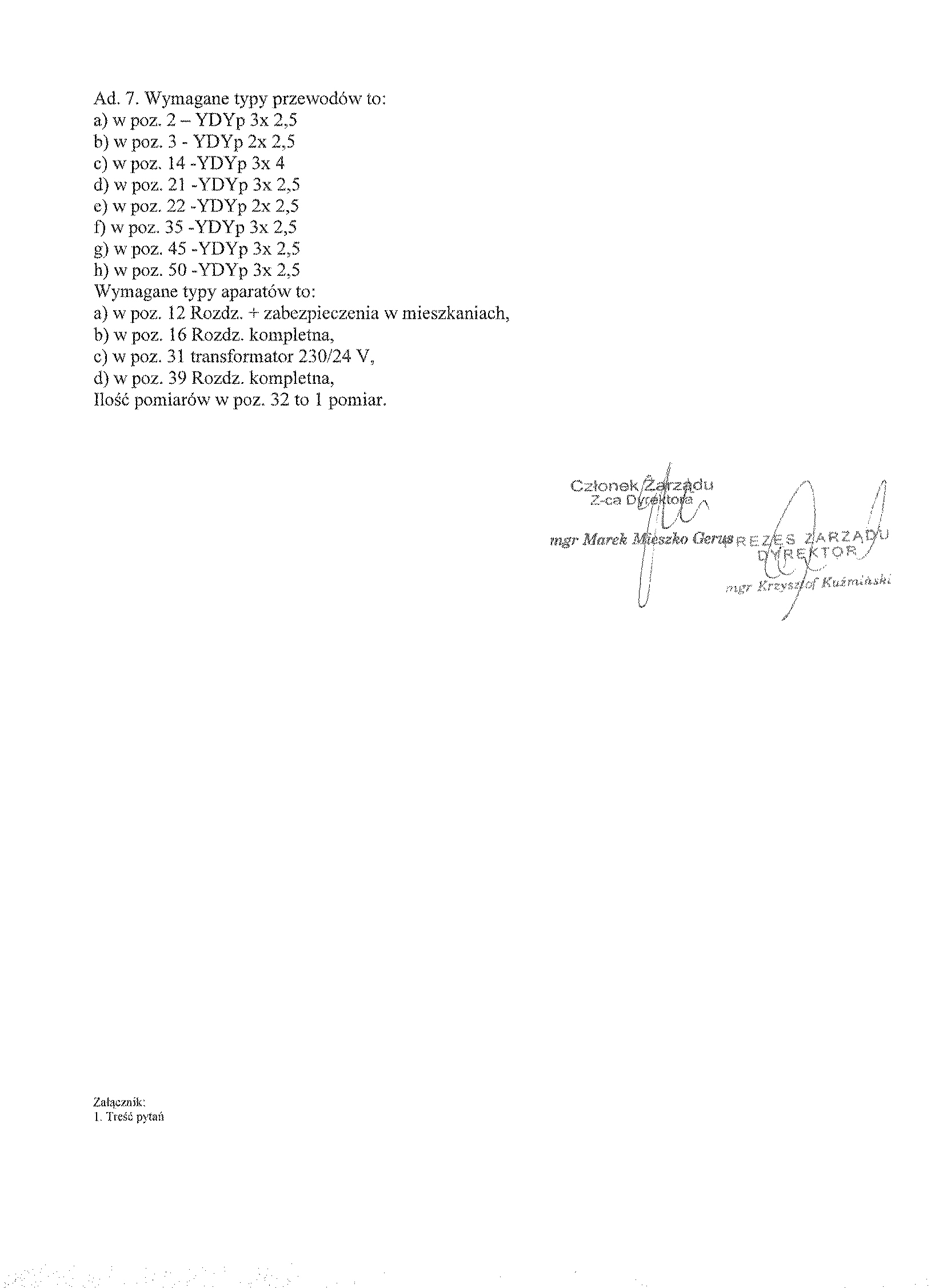 12. W celu potwierdzenia, 偶e Wykonawca posiada uprawnienie do wykonywania okre艣lonej dzia艂alno艣ci lub czynno艣ci oraz nie podlega wykluczeniu na podstawie art. 24 ustawy z dnia 29 stycznia 2004 r. - Prawo zam贸wie艅 publicznych, zamawiaj膮cy 偶膮da, nast臋puj膮cych dokument贸w: a) aktualnego odpisu z w艂a艣ciwego rejestru albo aktualnego za艣wiadczenia o wpisie do ewidencji dzia艂alno艣ci gospodarczej, je偶eli odr臋bne przepisy wymagaj膮 wpisu do rejestru lub zg艂oszenia do ewidencji dzia艂alno艣ci gospodarczej, wystawionego nie wcze艣niej ni偶 6 miesi臋cy przed up艂ywem terminu sk艂adania ofert: b) o艣wiadczenie wykonawcy, 偶e nie posiada zaleg艂o艣ci podatkowej wobec Naczelnika Urz臋du Skarbowego, c) o艣wiadczenie wykonawcy, 偶e nie posiada zaleg艂o艣ci wobec Zak艂adu Ubezpiecze艅 Spo艂ecznych w op艂acaniu sk艂adek na ubezpieczenie spo艂eczne, zdrowotne oraz Fundusz Pracy. 12.1.W celu potwierdzenia posiadania przez wykonawc臋 niezb臋dnej wiedzy i do艣wiadczenia oraz os贸b zdolnych do wykonania zam贸wienia, zamawiaj膮cy 偶膮da nast臋puj膮cych dokument贸w: a) wykazu wykonanych rob贸t budowlanych w okresie ostatniego 1 roku, przed dniem wszcz臋cia post臋powania o udzielenie zam贸wienia, z podaniem ich warto艣ci oraz daty i miejsca wykonania oraz za艂膮czeniem dokument贸w potwierdzaj膮cych, 偶e roboty te zosta艂y wykonane nale偶ycie, z艂. nr 2 do siwz (minimum 2 referencje). Z wykazu musi wynika膰, 偶e Wykonawca opr贸cz remont贸w wykonywa艂 r贸wnie偶 roboty elektryczne, b) zamawiaj膮cy 偶膮da za艂膮czenia kserokopii uprawnie艅 budowlanych w specjalno艣ciach obj臋tych przedmiotem zam贸wienia, w zakresie rob贸t budowlanych i instalacji elektrycznych, c) 艣wiadectwa kwalifikacyjnego "E"- eksp instalacji elektrycznej do 1 kV, d) aktualnego wpisu do w艂a艣ciwych Izb Zawodowych. 12.2. W celu potwierdzenia, 偶e wykonawca znajduje si臋 w sytuacji ekonomicznej i finansowej zapewniaj膮cej wykonanie zam贸wienia zamawiaj膮cy 偶膮da nast臋puj膮cych dokument贸w: a) polisy, a w przypadku jej braku innego dokumentu potwierdzaj膮cego, 偶e wykonawca jest ubezpieczony od odpowiedzialno艣ci cywilnej w zakresie prowadzonej dzia艂alno艣ci. 12.3.Wype艂nione nast臋puj膮ce za艂膮czniki: a) formularz ofertowy wykonawcy (za艂. nr 1 do swiz). b) wykaz podobnych rob贸t (za艂. nr 2 do siwz), d) o艣wiadczenie w trybie art.22 ust.1 pkt.1-4 ustawy Pzp (za艂. nr 3 do siwz). 12.4. Kosztorys ofertowy, kt贸ry musi by膰 integraln膮 cz臋艣ci膮 z艂o偶onej oferty. Podstaw膮 do opracowania przez Wykonawc臋 kosztorysu ofertowego jest przedmiar rob贸t, b臋d膮cy za艂膮cznikiem do siwz. Wykonawca mo偶e przyj膮膰 dowoln膮 form臋 i podstaw臋 wyceny rob贸t. W kosztorysie ofertowym Wykonawca musi poda膰, w jakim systemie wykonane b臋dzie docieplenie. 聽